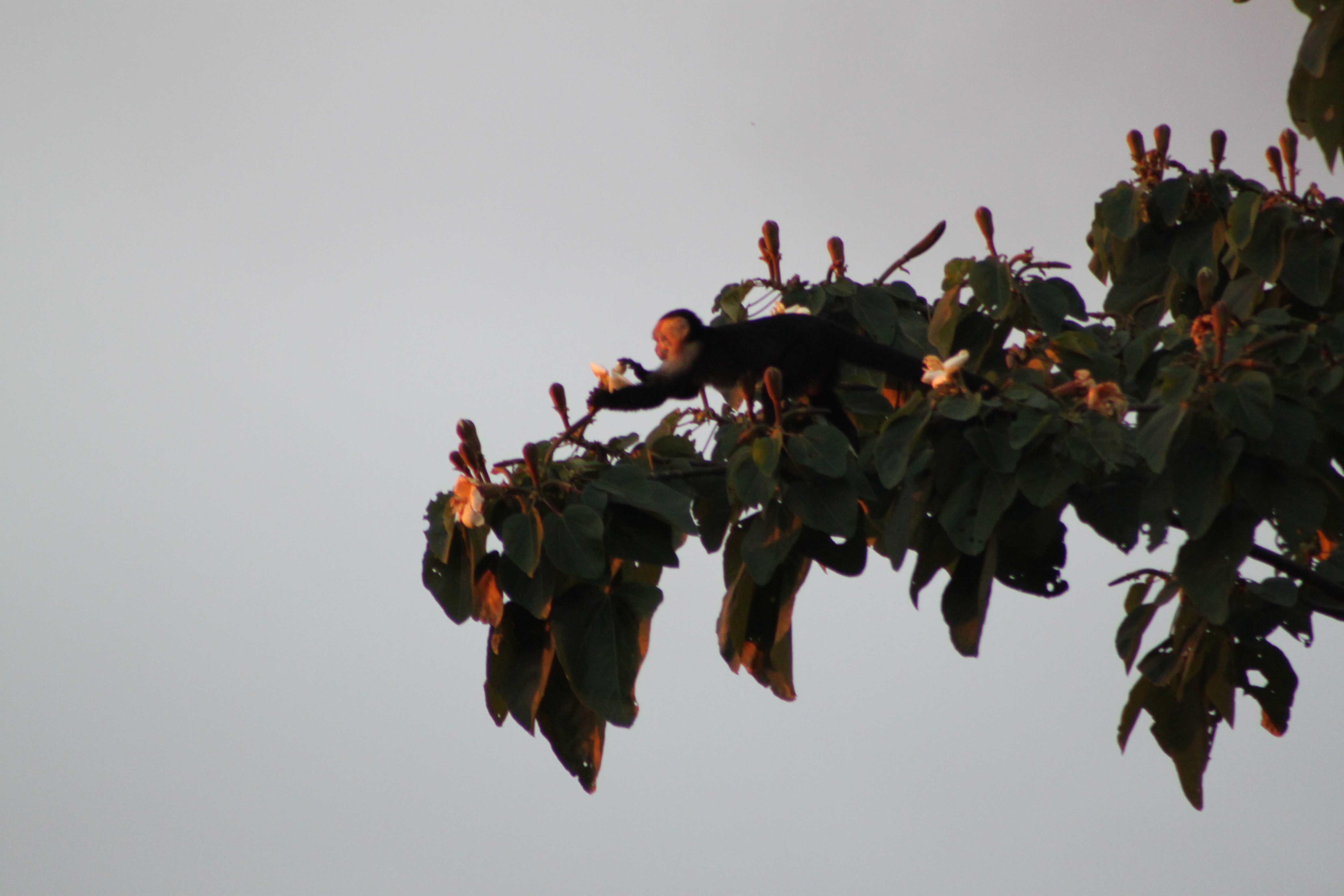 Big tree 50 yards from our villa with large white flowers that the rain filled up each day. Obviously a happening monkey drinking establishment
