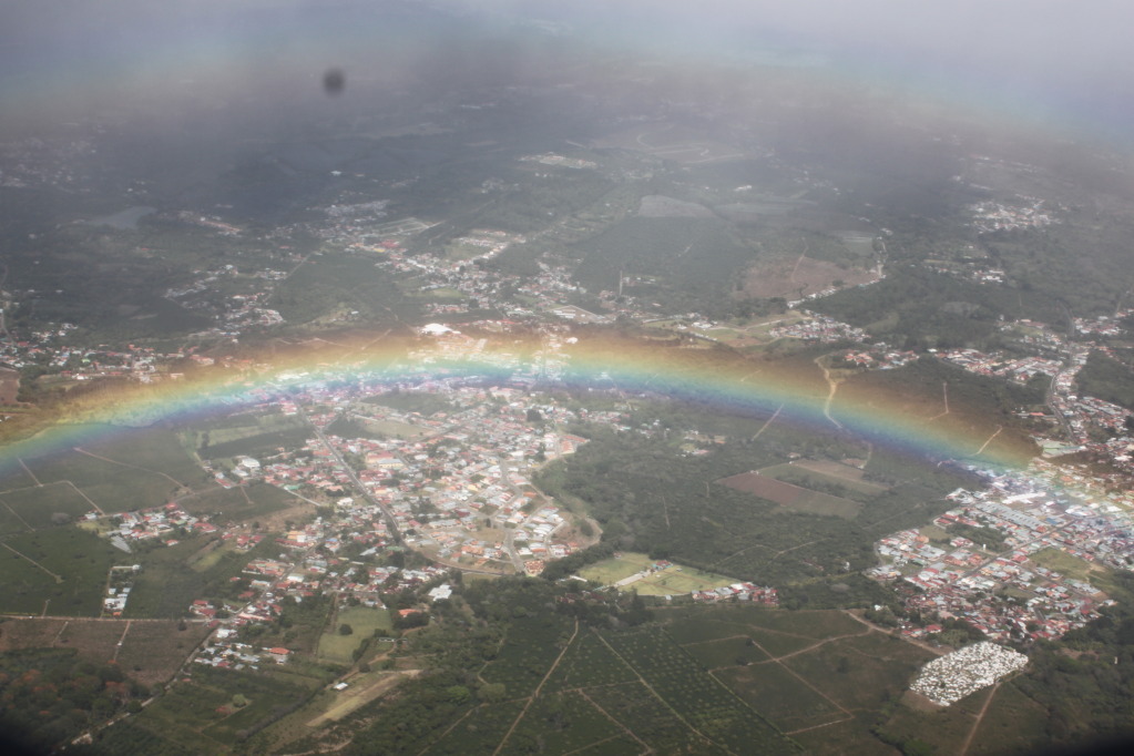 Saw a rainbow and a volcano on the way out of the country