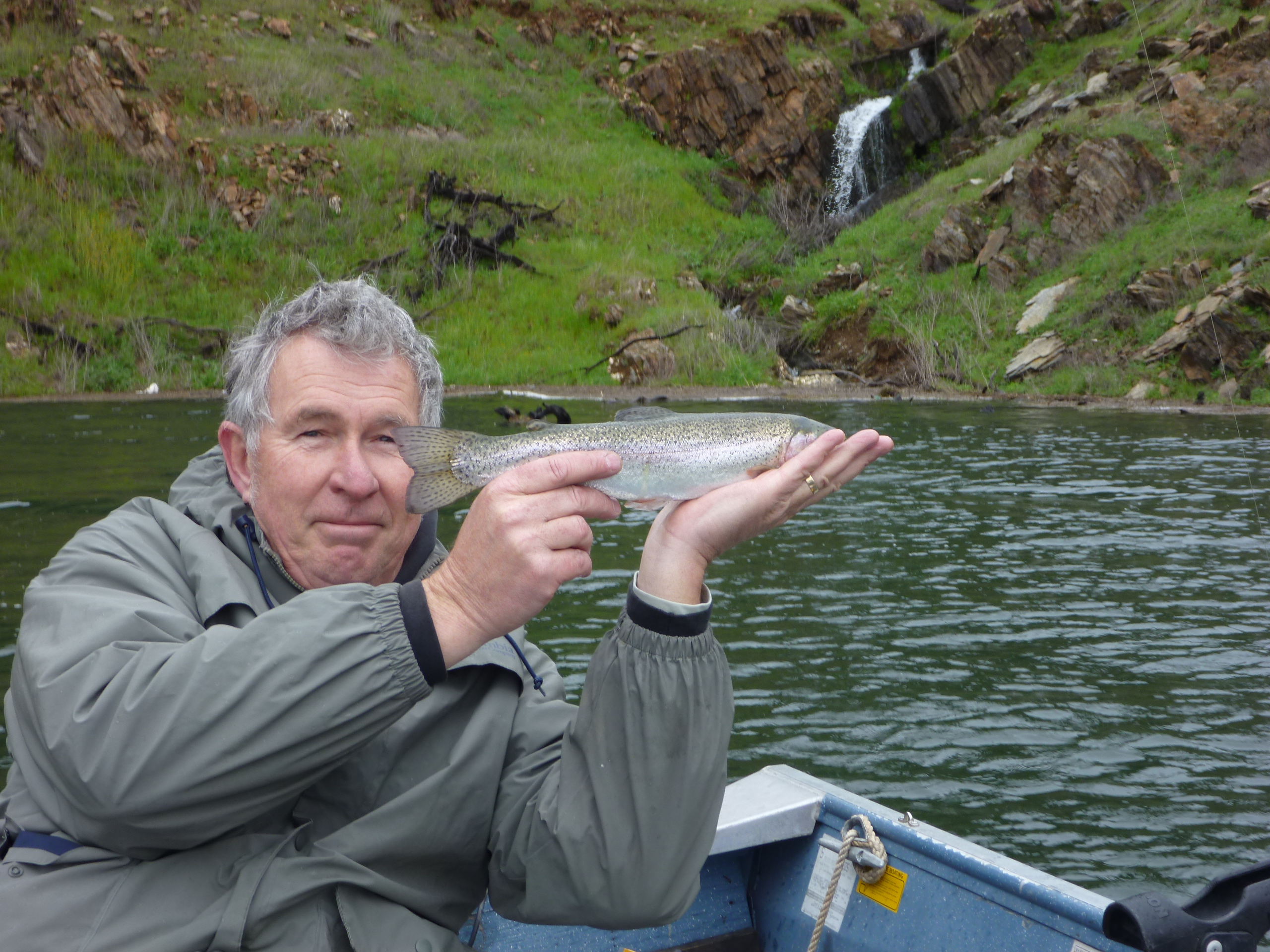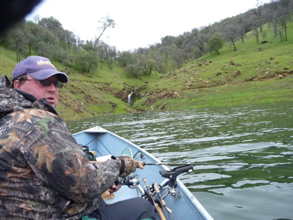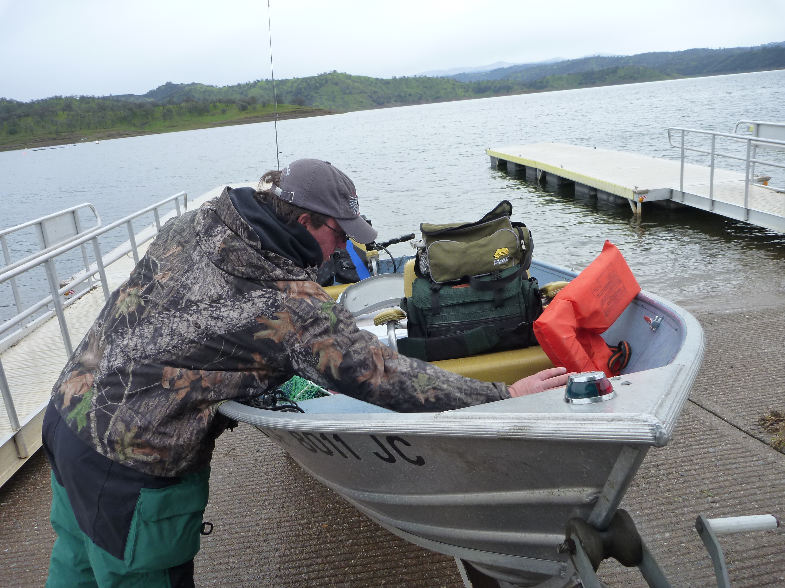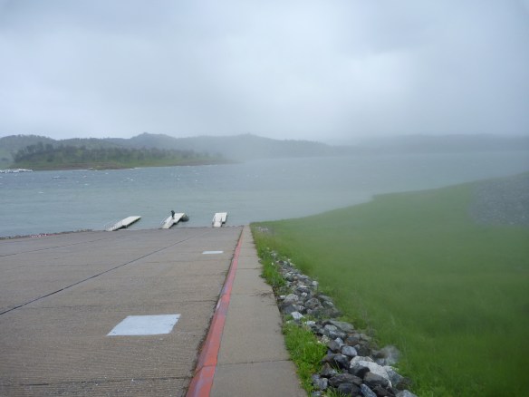 We fished for another 2 hrs for zip and pounded the last mile to the ramp in a freshening squall that we watched march from the dam towards us. It beat us unfortunately. Wild ride it was. I put my lifejacket on.
