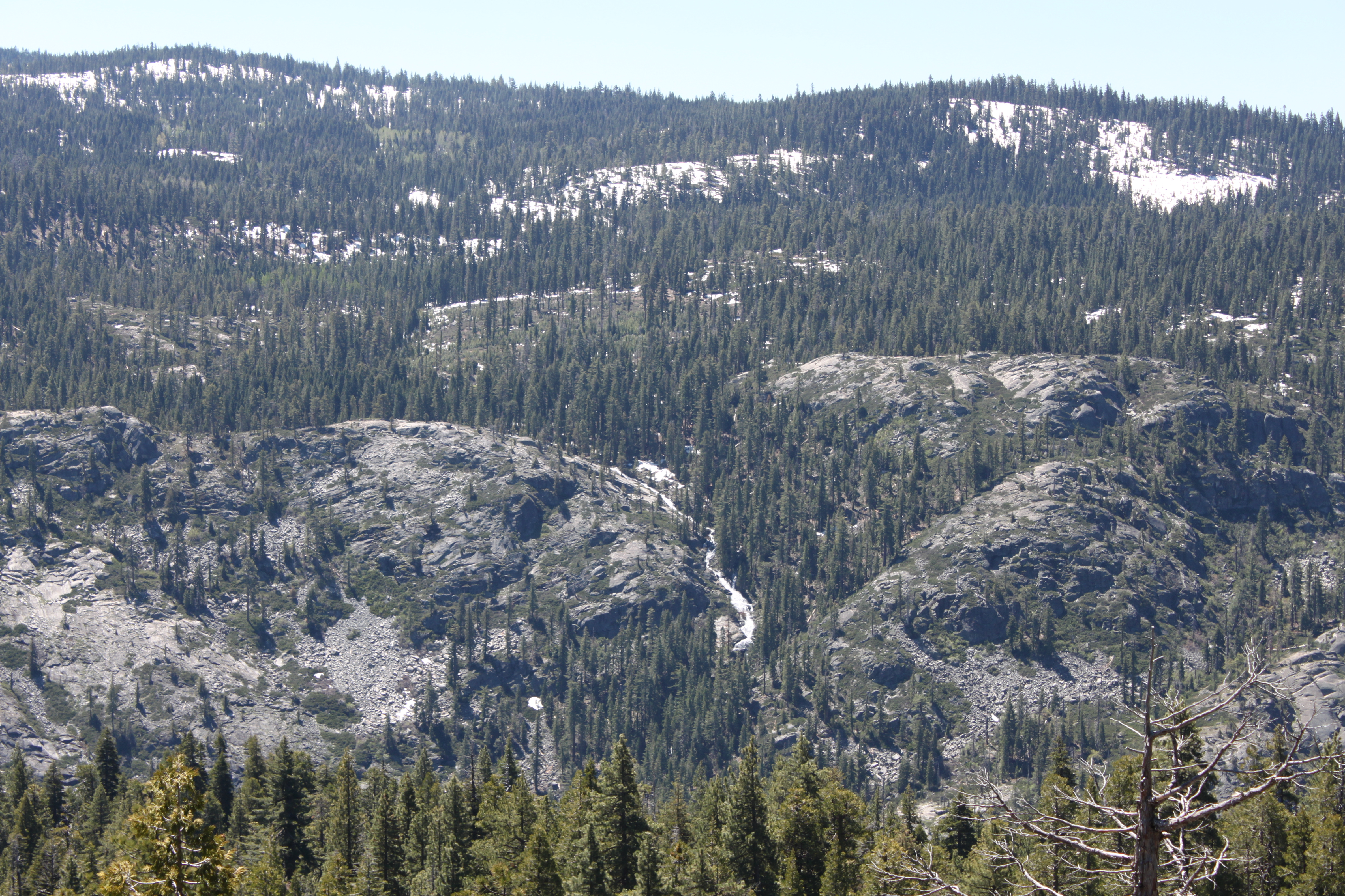 Kaster and I ran up the hwy 88-4 area Fathers day on a hunt for black helicopters and a rare Bird. After a brief sighting we drove Sheep Ranch road to Avery and headed up 4. Kept hearing banjo music in the distance. Up 4 past big trees. Snow level was around 6000 ft. Made a stop at Boards Crossing.