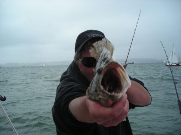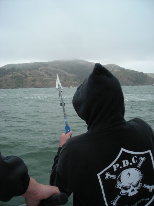 Great weather, 4 party boats and no action. Off to the B flats for windy boredom. I see a crowd at Alcatraz and we drift the SE corner for an hour seeing quite a few fish caught in 40-50 feet. We only saw halibut netted today no stripers. 8 party boats here with 20 plus skiffs in pretty close quarters. Pulled the plug around 3:30. Fun first live bait trip of the season.