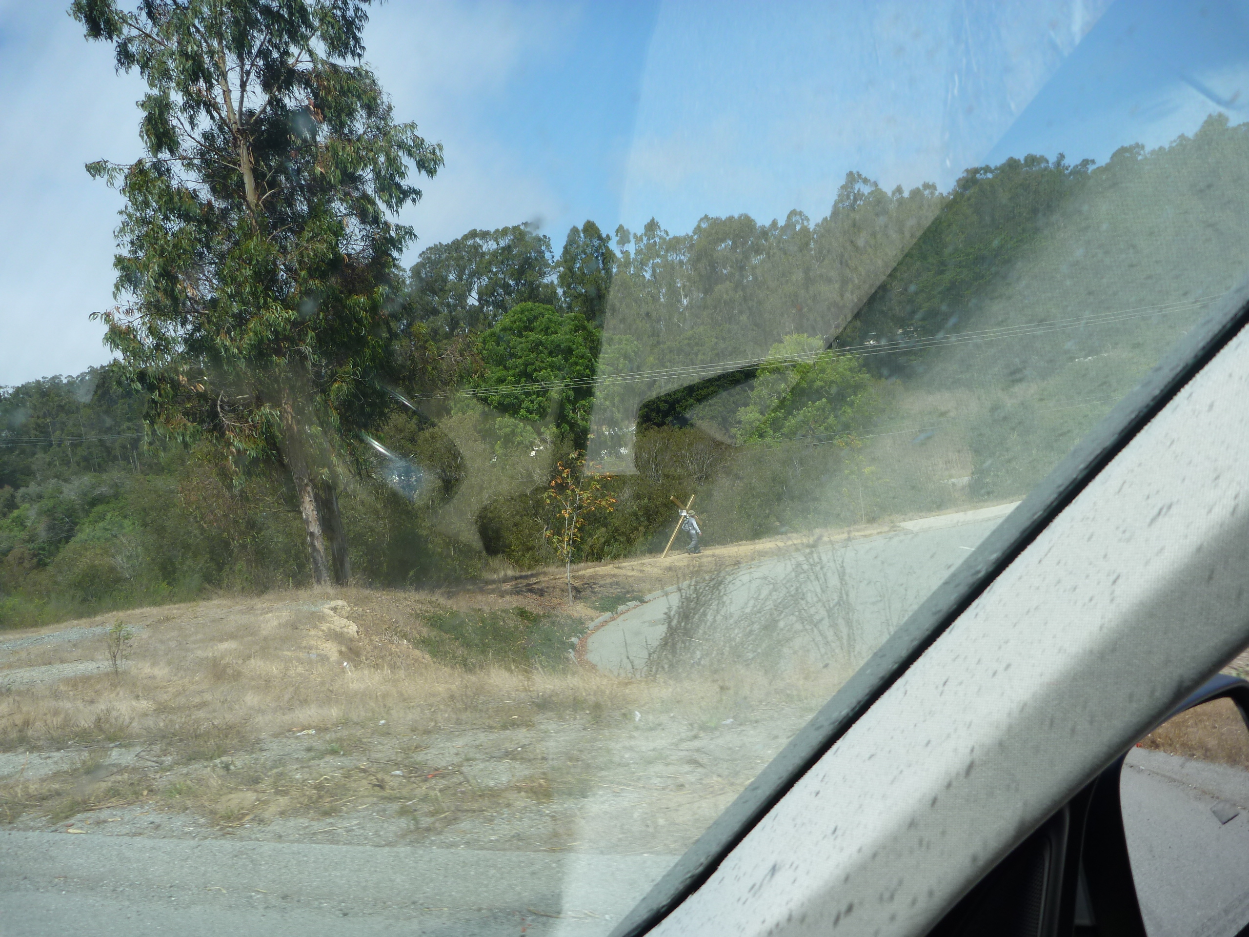 Debra and I took the road bikes down to Monterey for a cruise of the waterfront. We saw Jesus on the way dragging his cross across 2 lanes of very busy traffic.