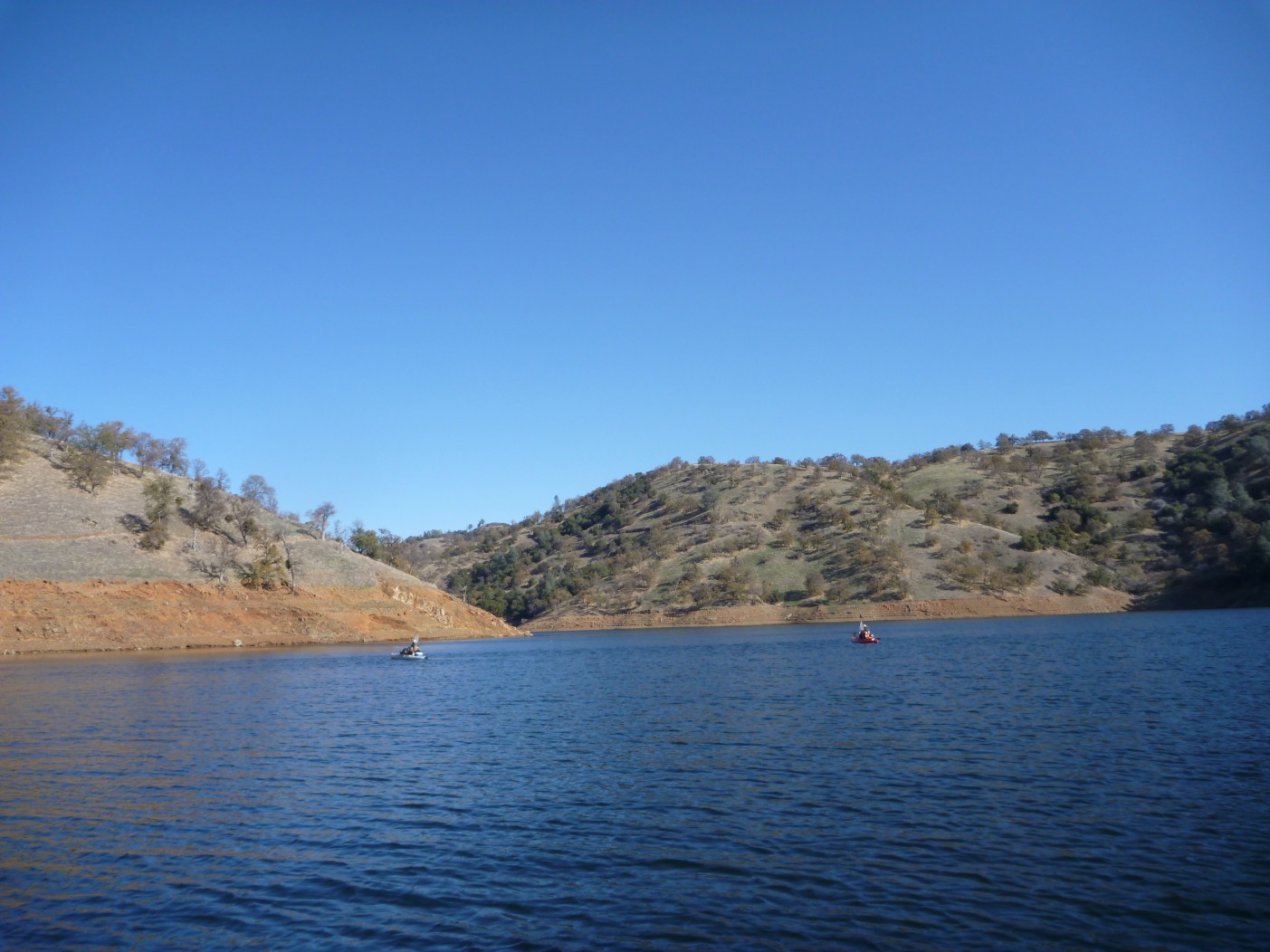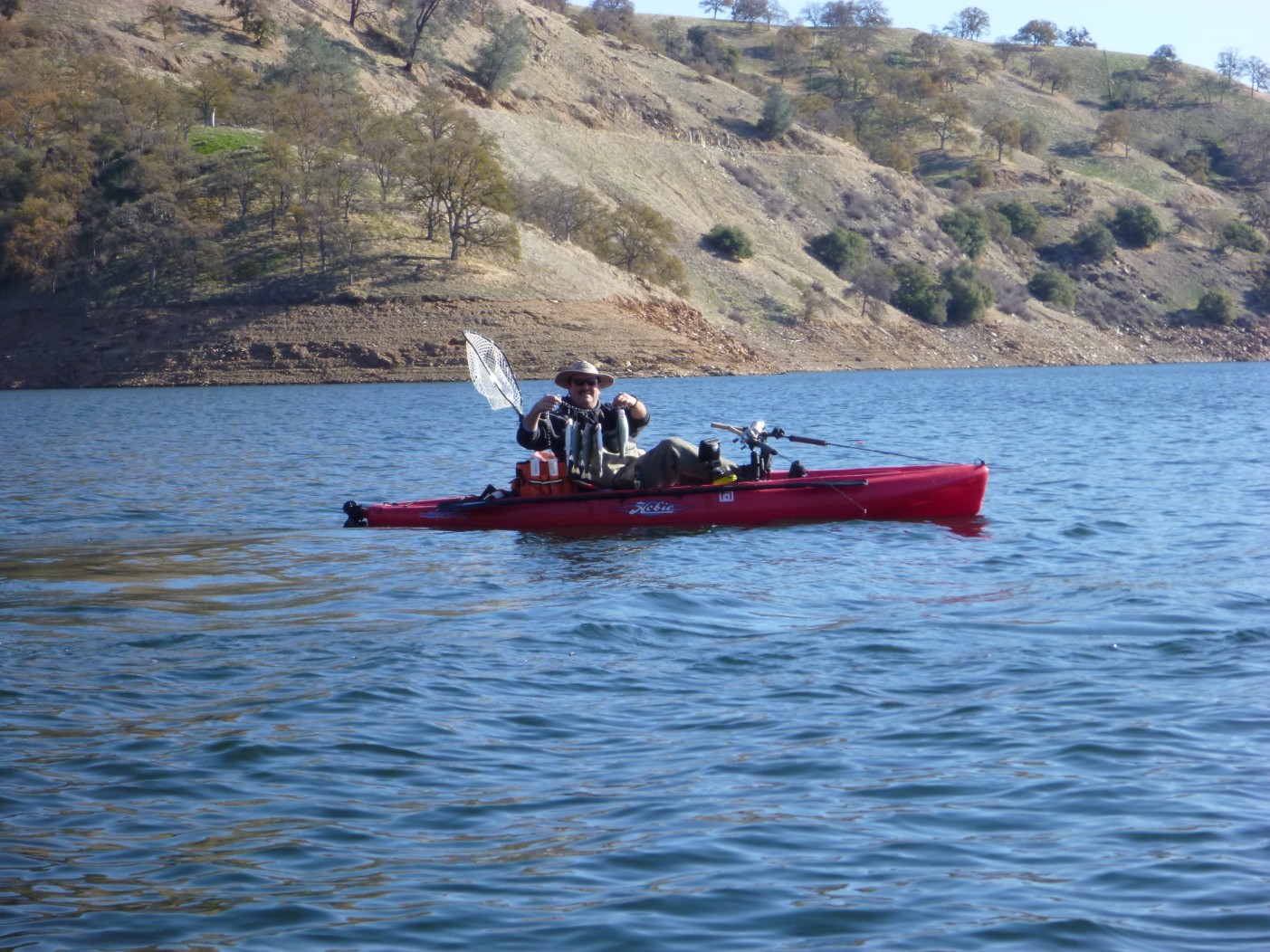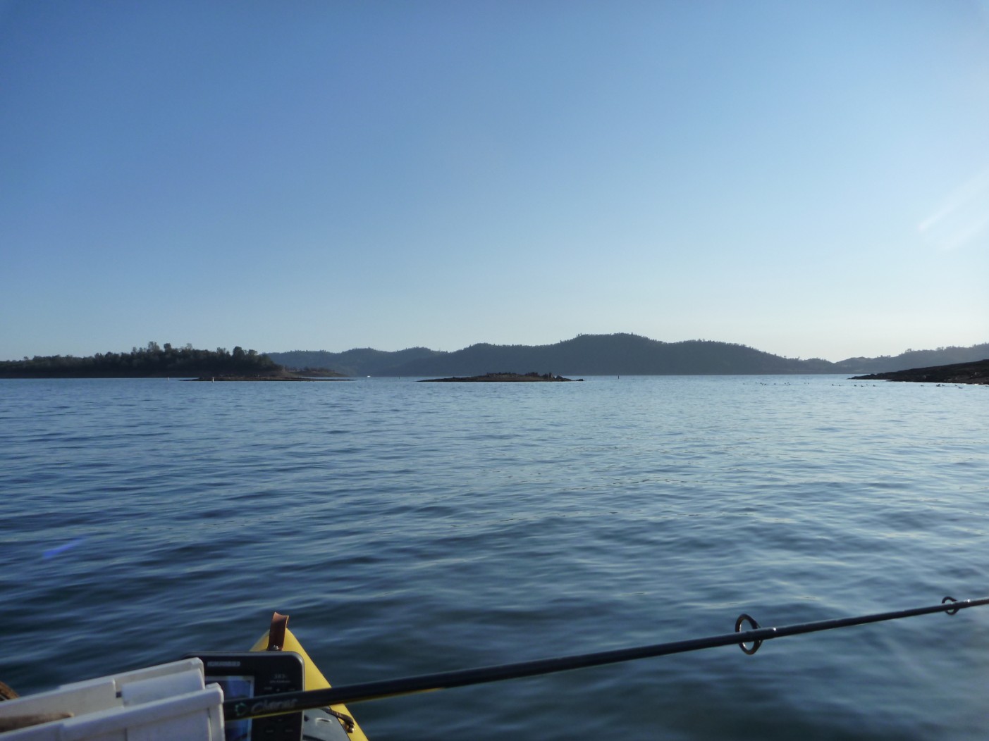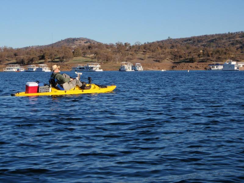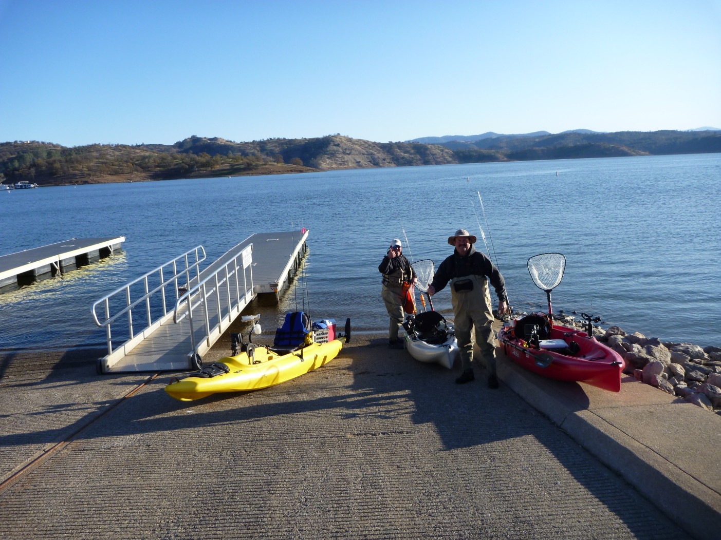 Stellman and Dangerious pulled into my house at 6:00 AM. Two Hobies and the mighty wave walker transferred to my trailer and we were off at 6:05. On the water by 8:15, 48 degrees, bluebird with 5 MPH wind.