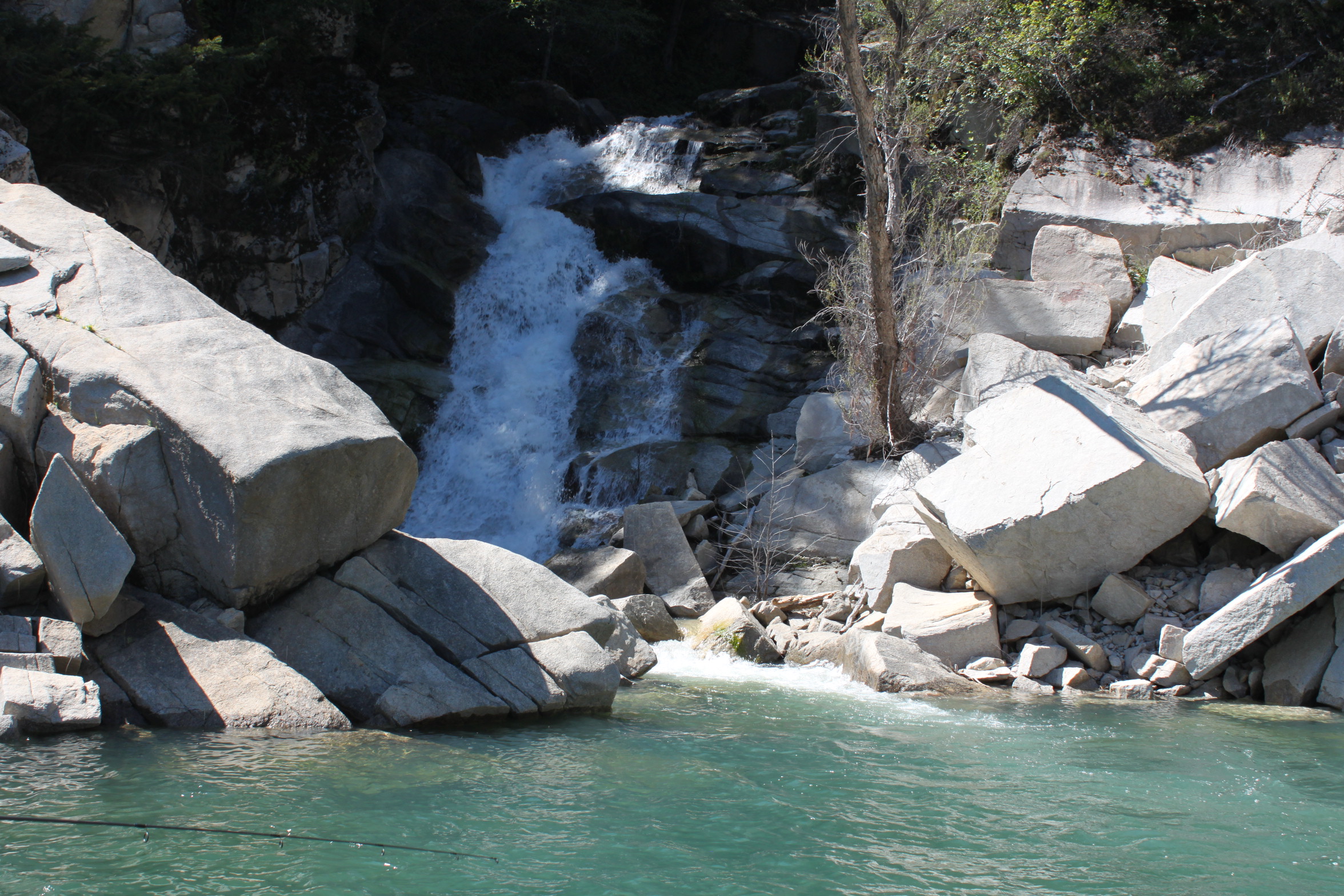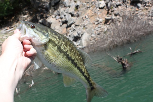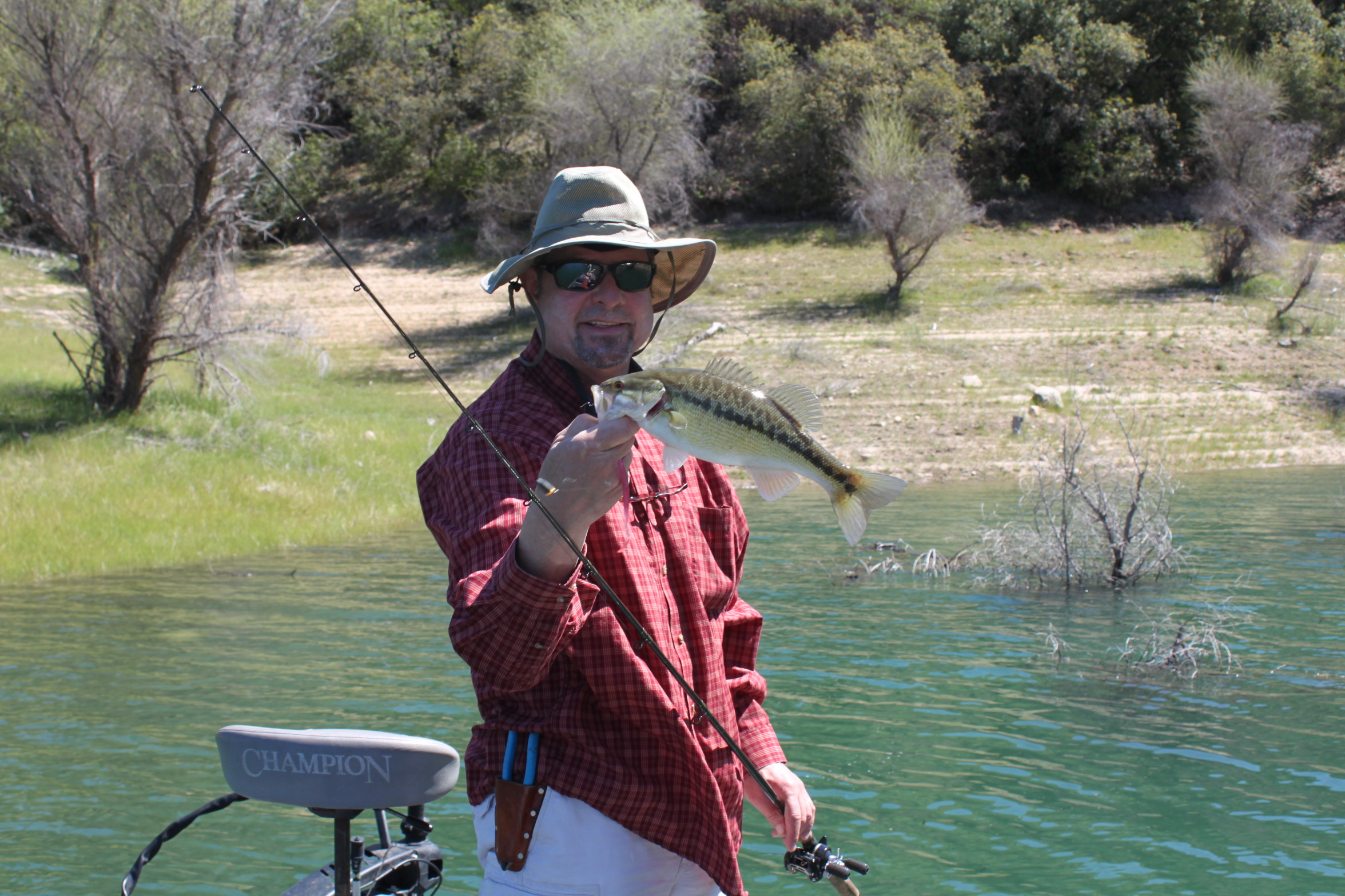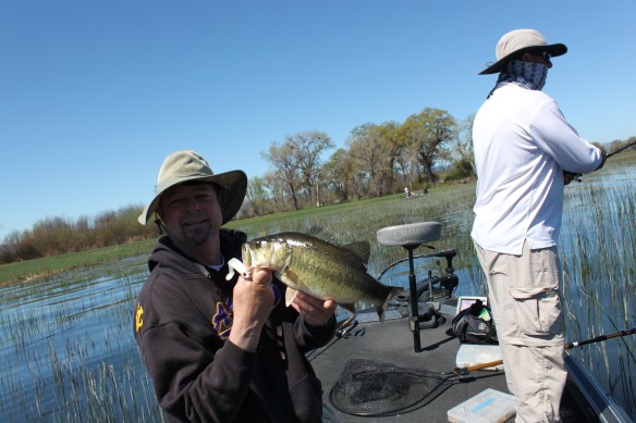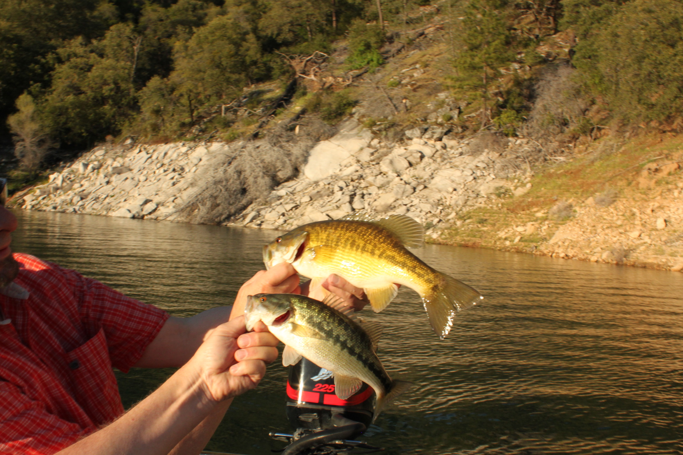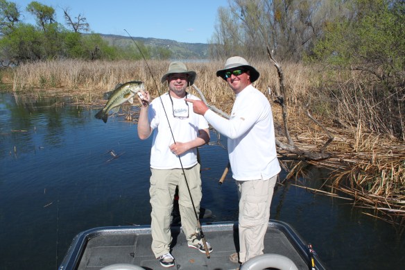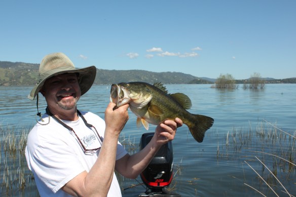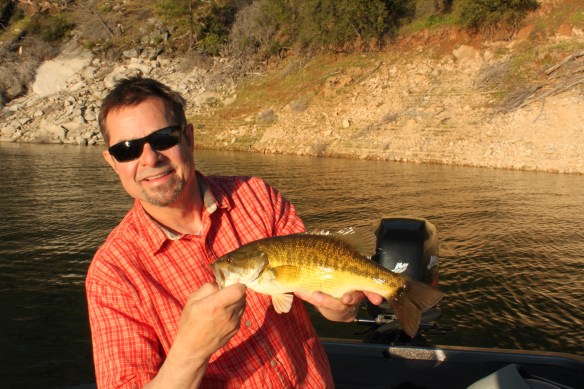 I have had days at Oroville where I landed 70-80 bass in a day most right up tight to the bank in the top 6 ft of water. Light spinning gear is all you need here as a 3# spot will be a big fish. This year Randy and I hit it 4-19 and of course 4-20.