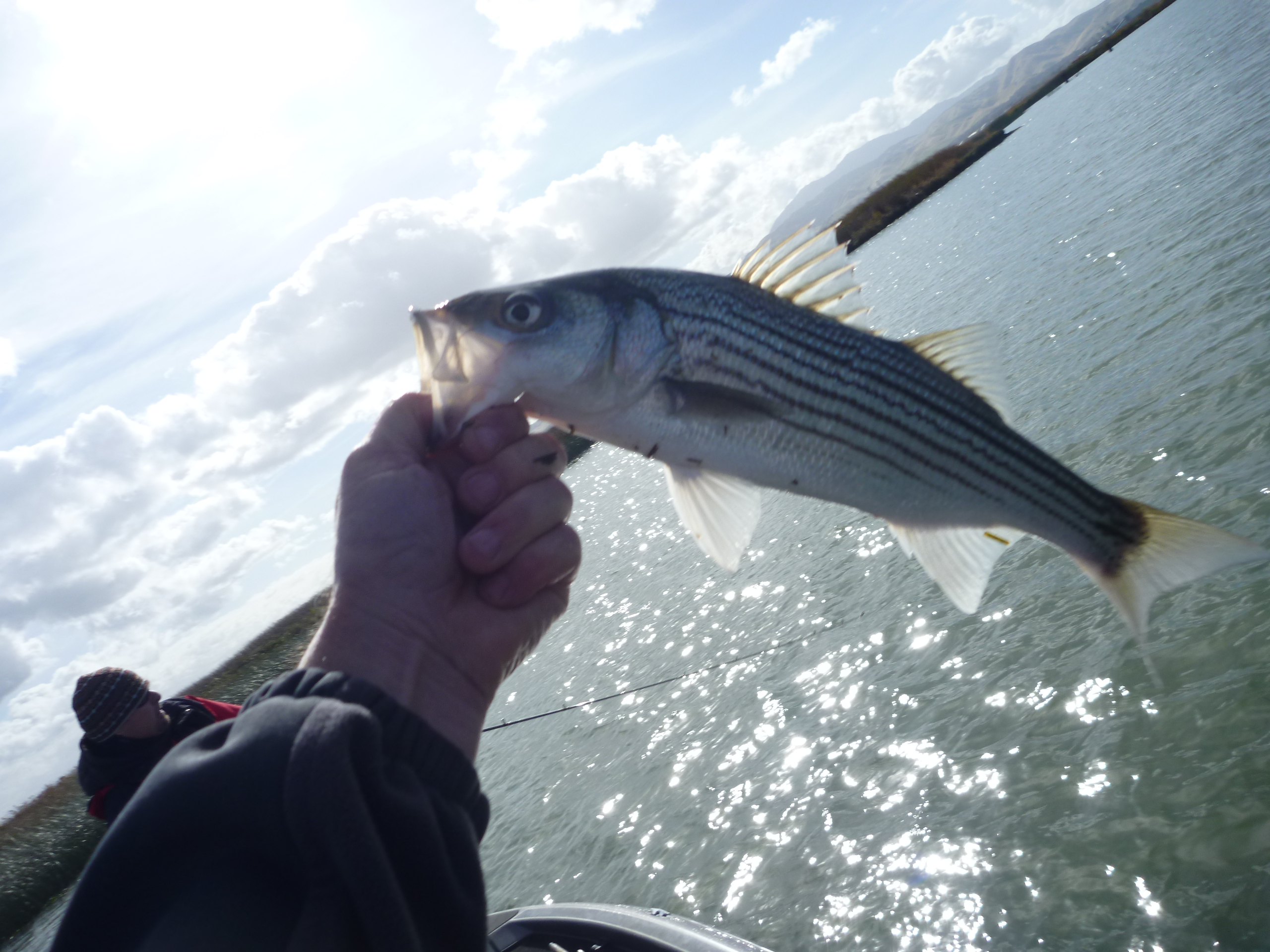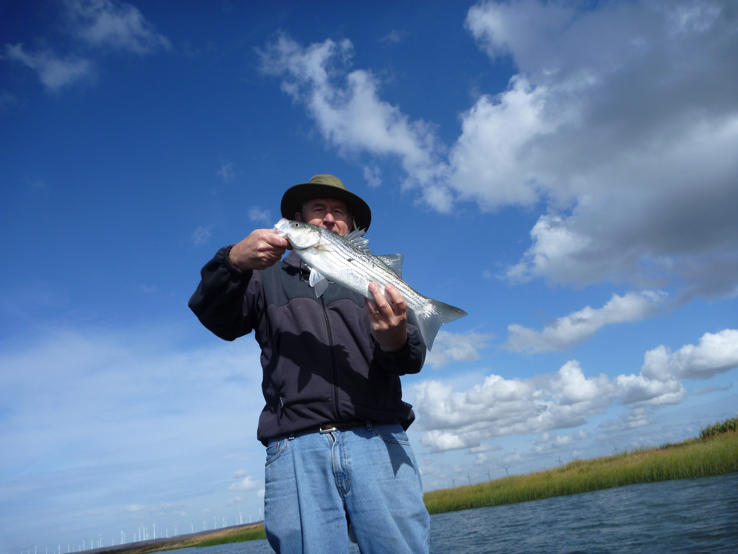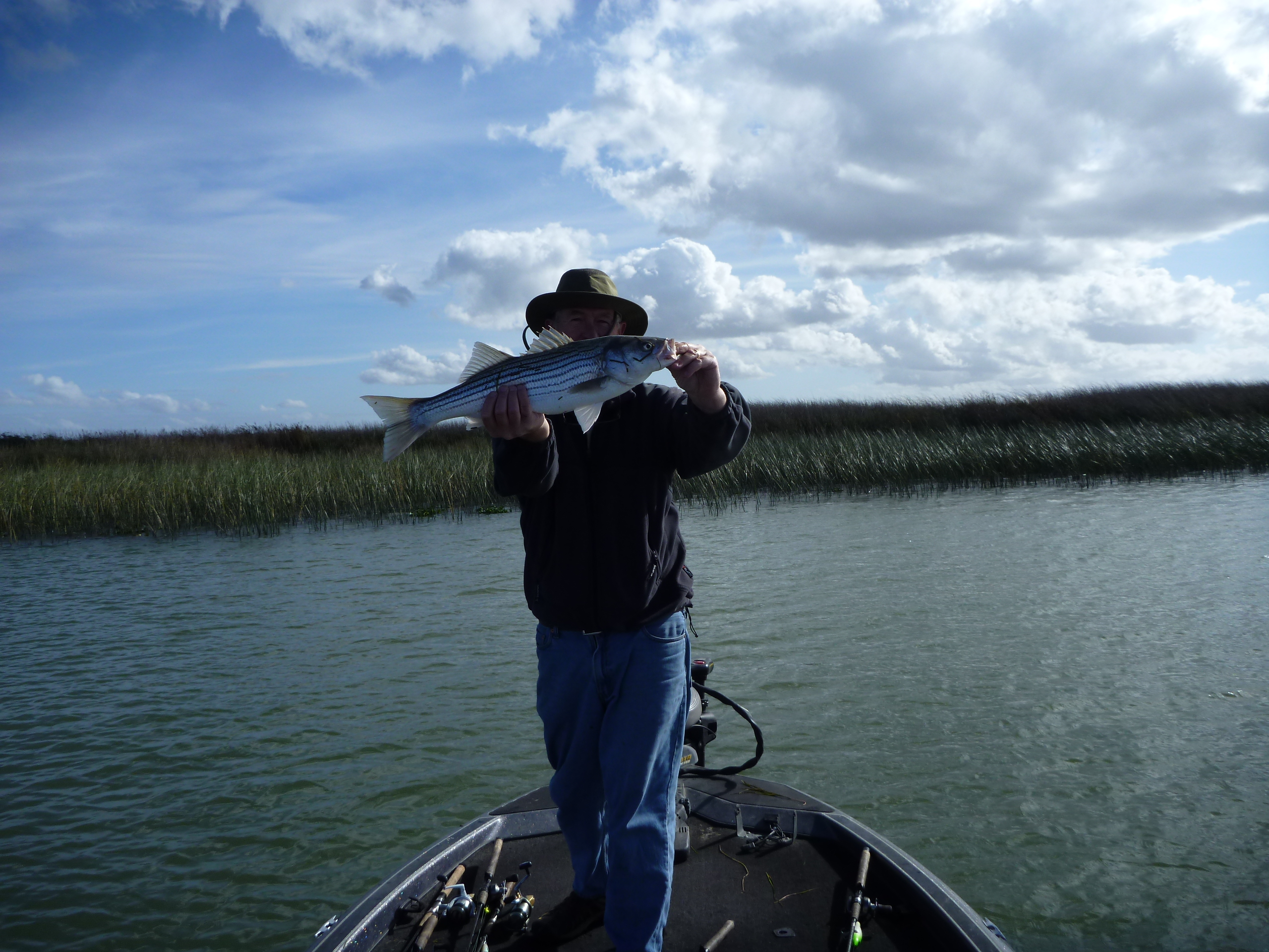 5 ft of water or less was where they wanted it. Hot fish and hard strikes. Around 3 PM we headed into center of Sherman. Several large fish hooked there on the Delta Wood Bombers 8 inch white chartruese but aggressive drag settings freed them. SHerman was holding fish for sure.