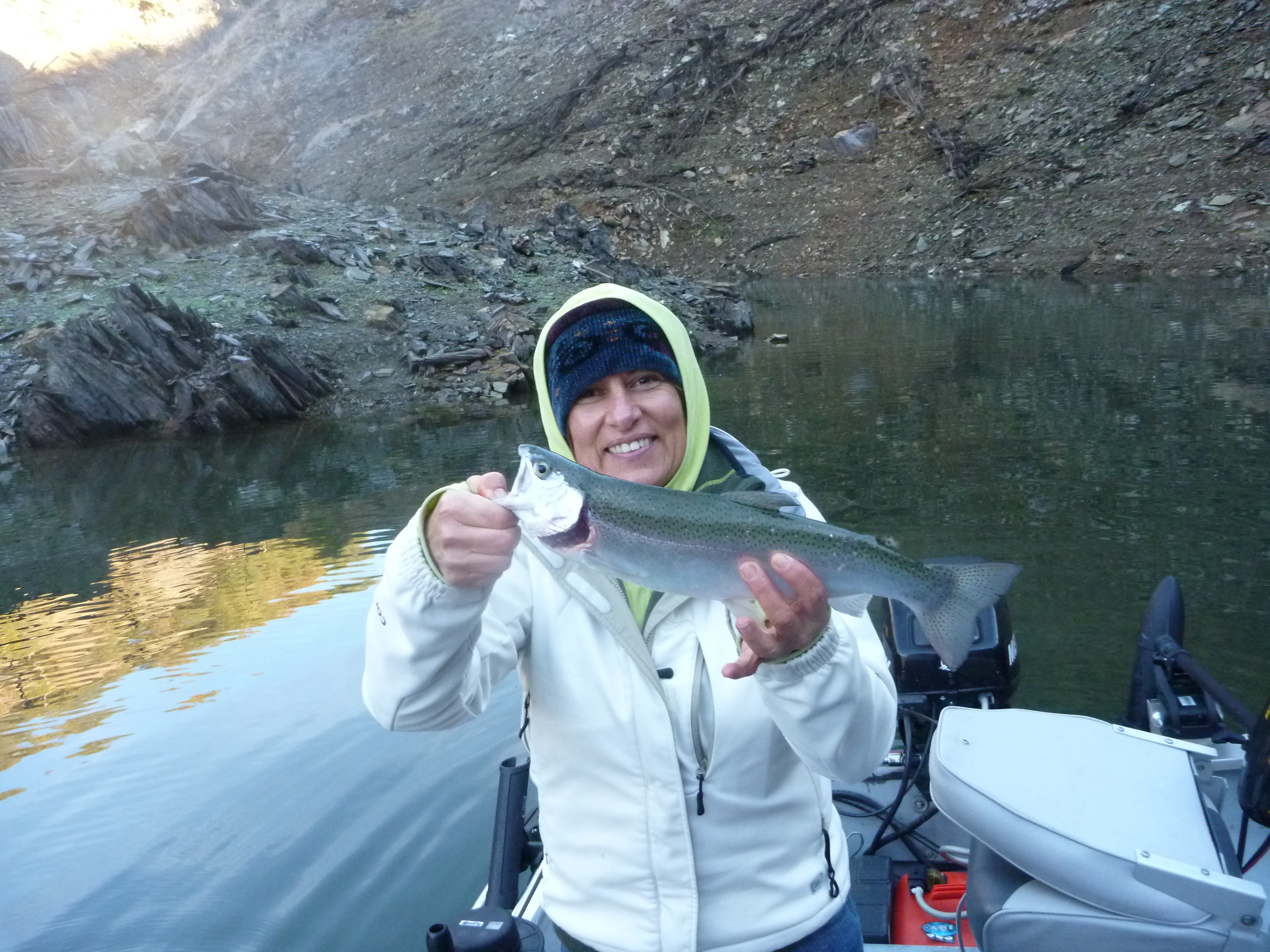 Epic day on Melons. Luz D’Alma, Randy and yours truly absolutely slayed the fish today. They were right where I wanted them. Bait was THICK and fish were slashing and slurping all day. BIG thick Rainbows gorging in plain sight on 100 yards of 3 inch shad. Easy to hook shad were sent back out under a bobber or just left on the lure. It was sick. Kept 11 released 30 easy.