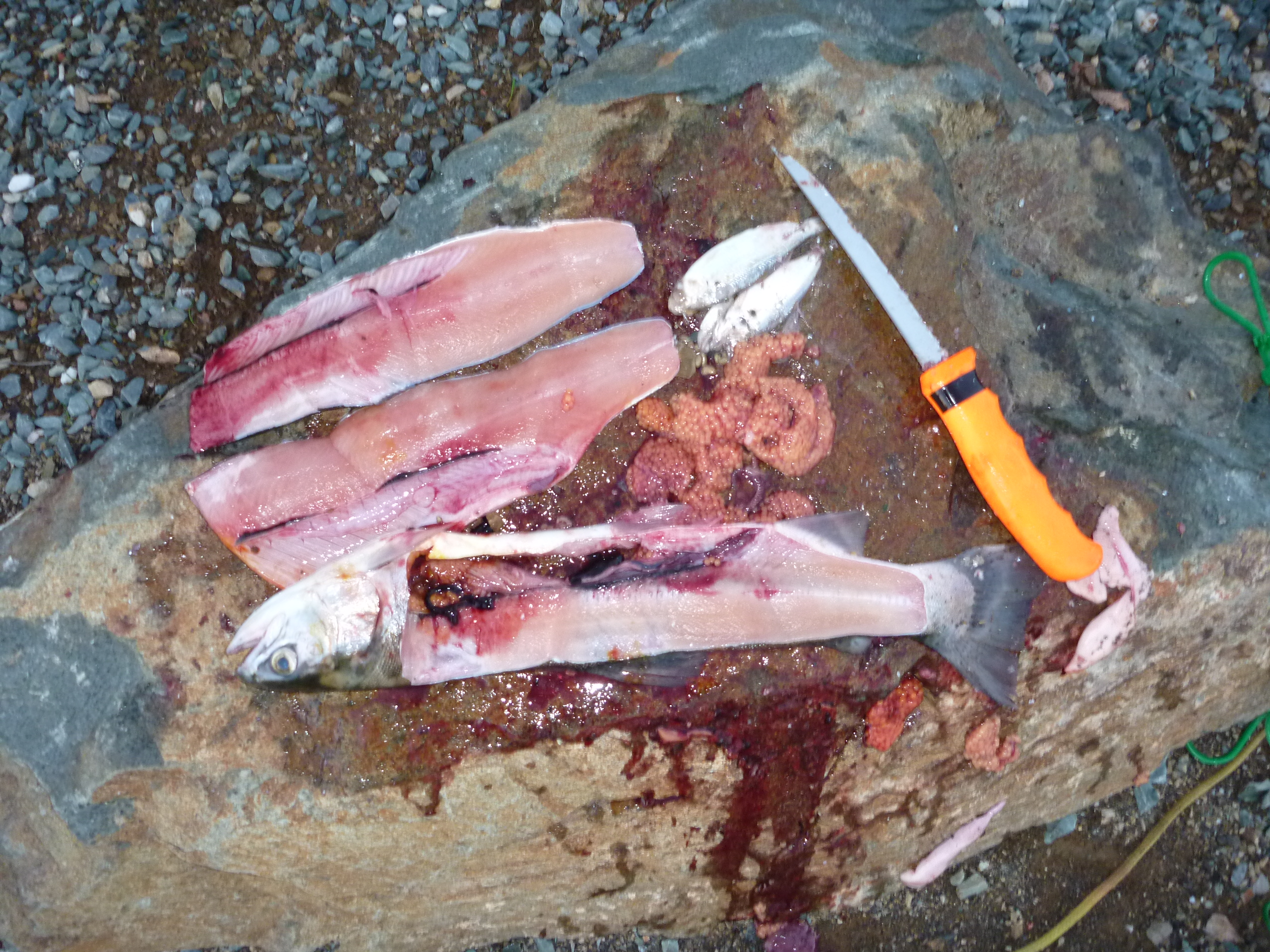 We beached the boat and went to work. Bait coming out of the water in sheets. Fish prowling the bank.