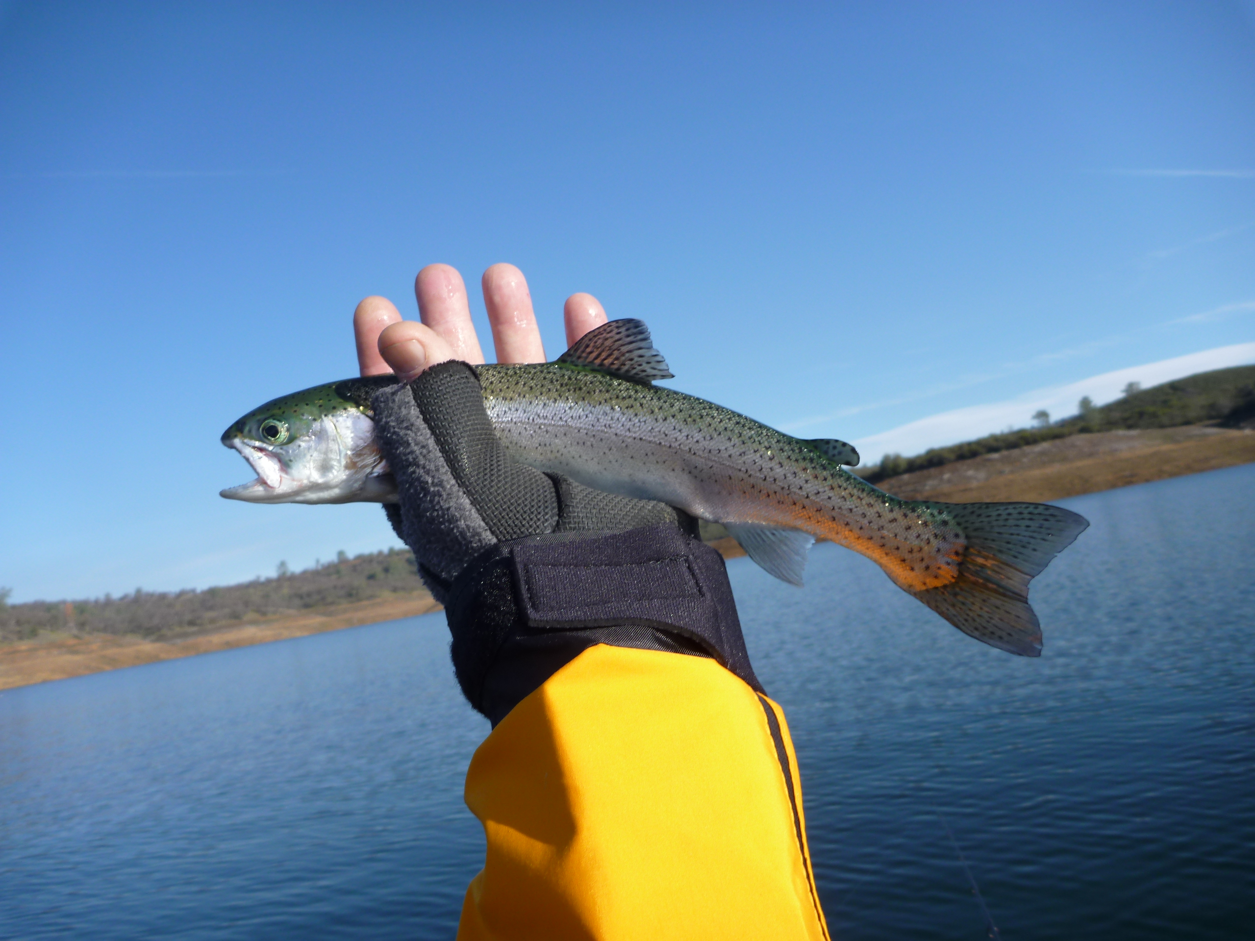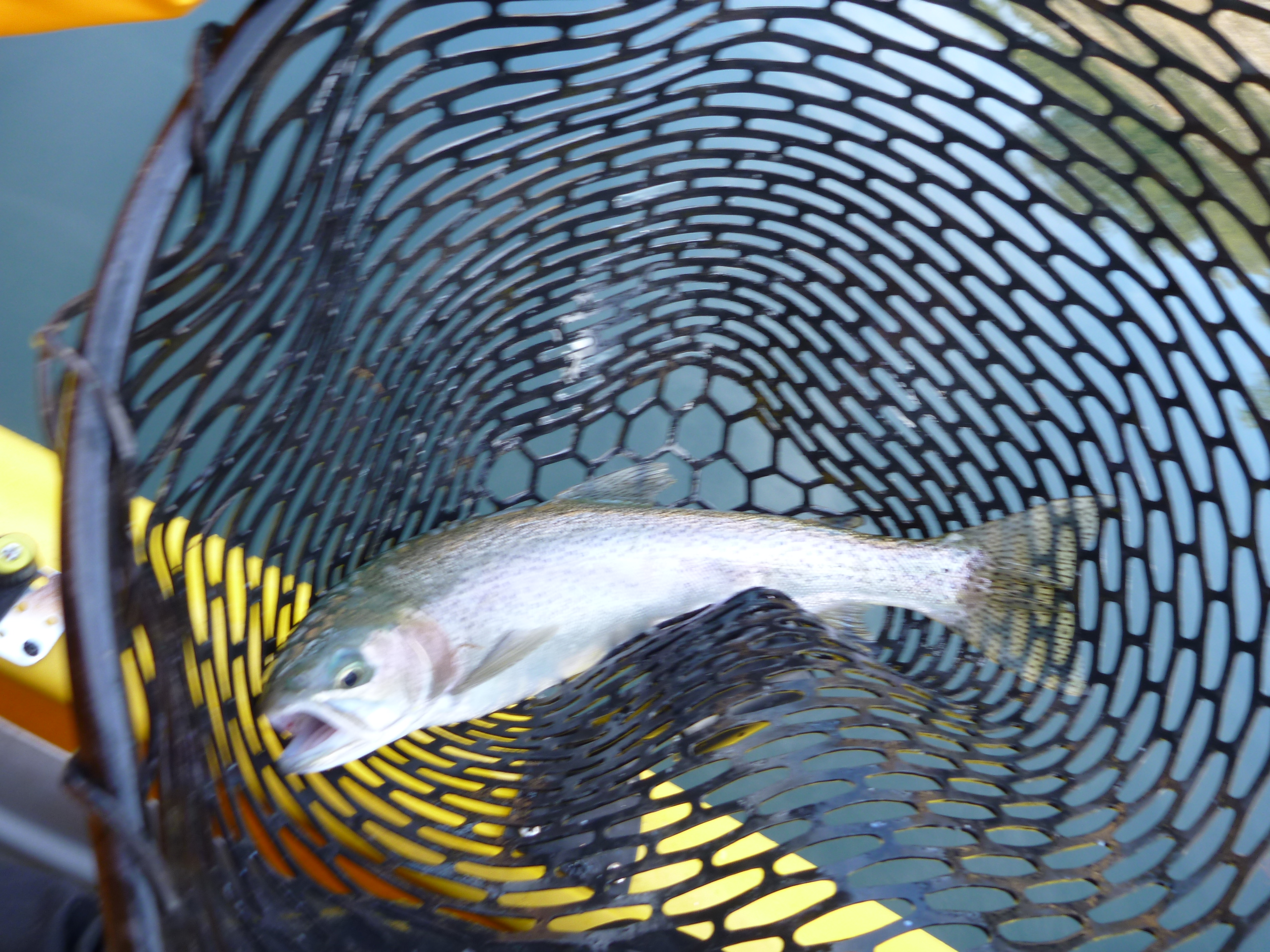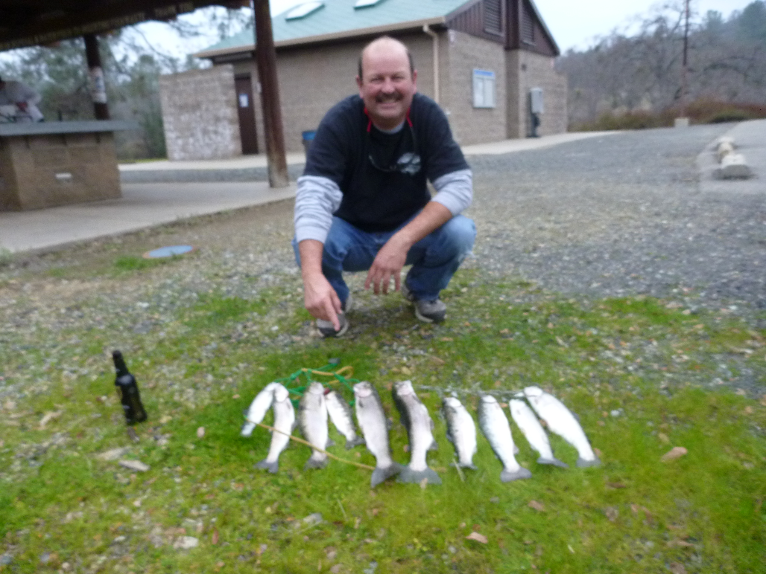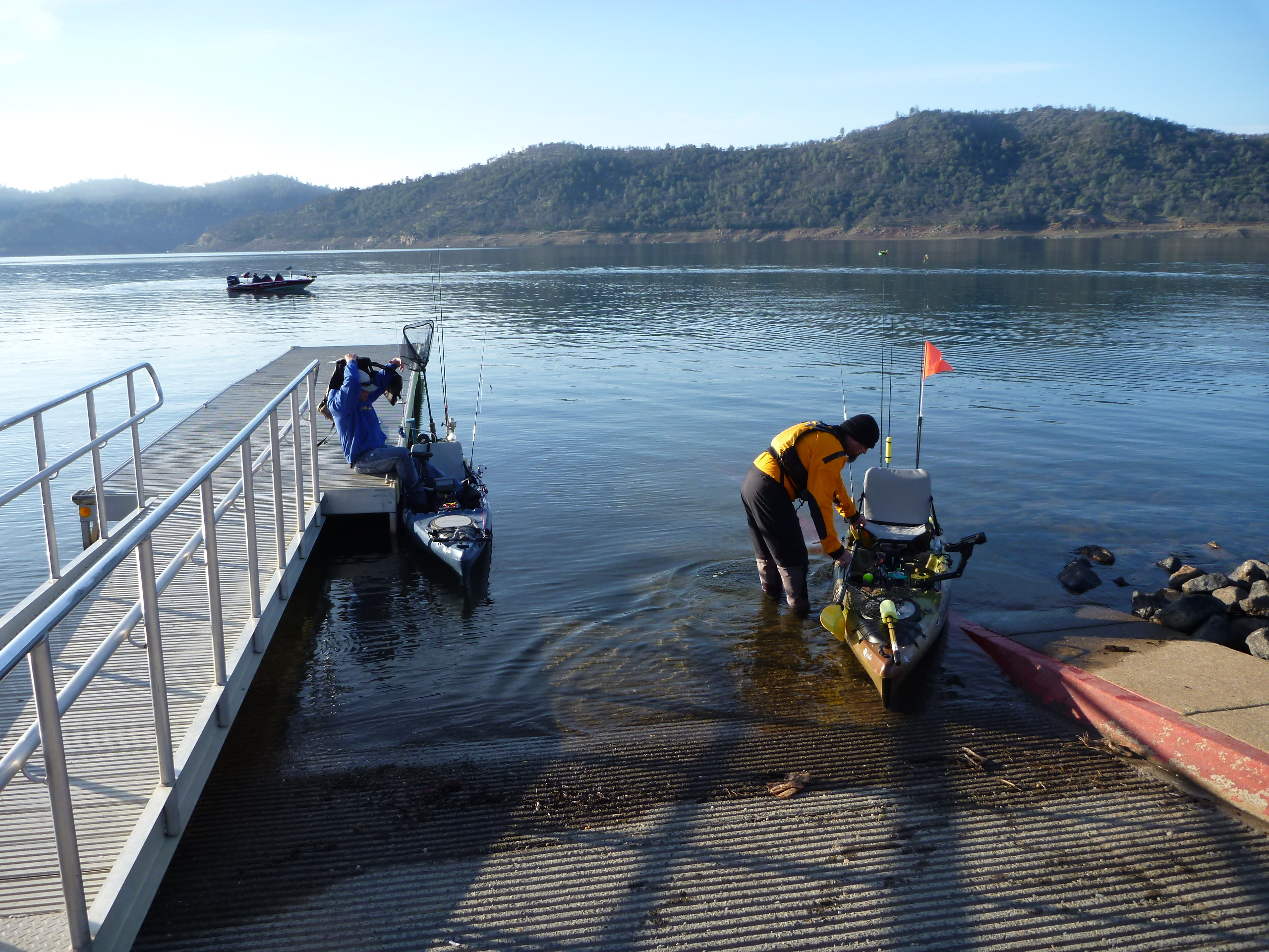 Hit the Tuttletown ramp at a leisurely 9 AM. Saw a couple of NCKA brothers SonoraMIke and Daleshark Tim at the ramp. Stellarman and I ran up the creek without a paddle. Passed Reel Habit Rod and and friend at the environmentally sensitive buoy and they were already sporting near limits. After dallying at the creek mouth we slipped back out to the bouy and commenced to whackin. I got off to a good start but Jerry was en fuego. I landed 4 and he punched 10. Flasher worm worked. Gold kastmaster worked. Rapala worked. Rainbow kastmaster worked. 13 miles pedaled today. Great weather all day with overcast.