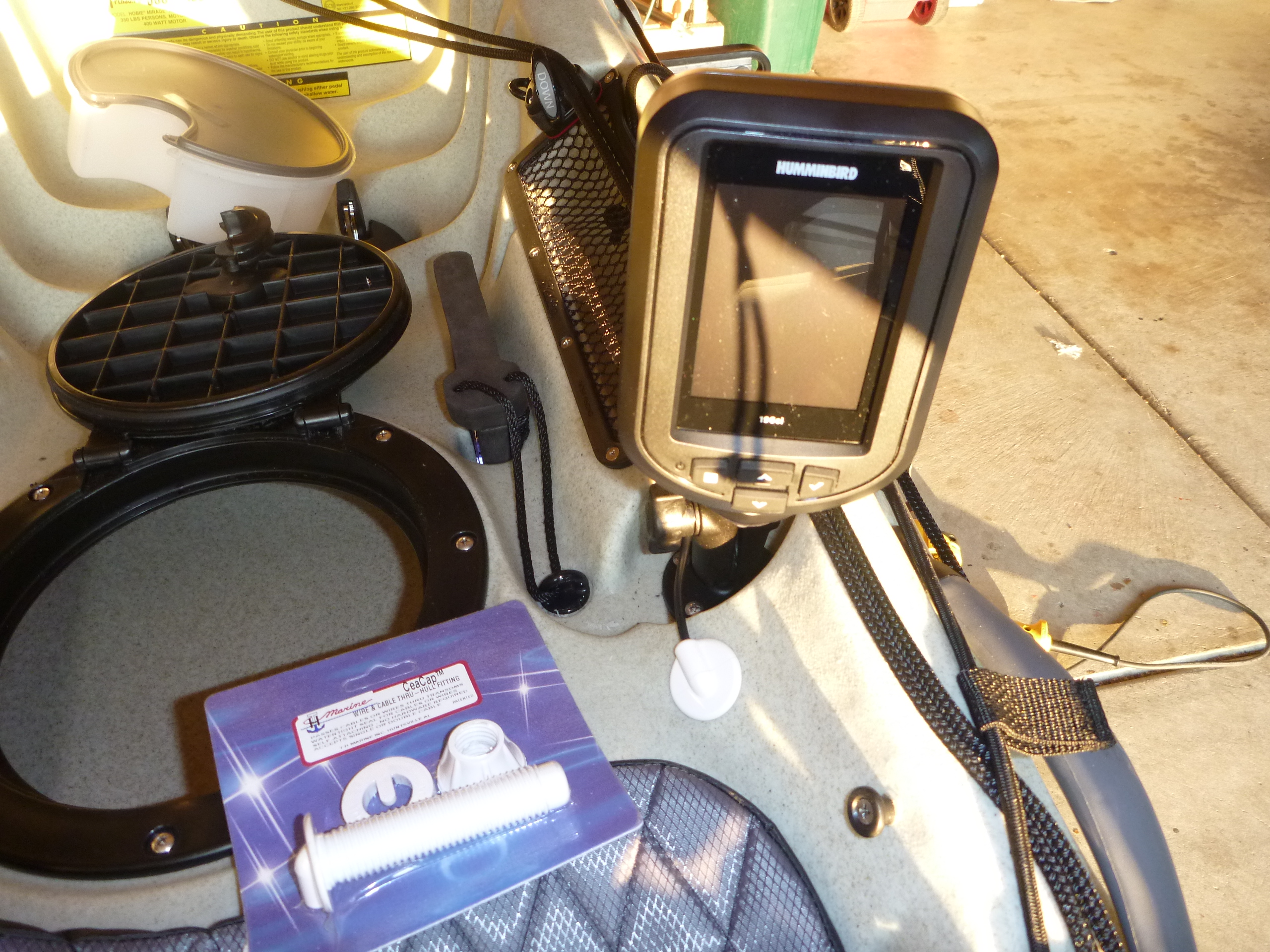 With the new seat and getting the mirage drive pedals maxed out on the last setting I finally felt comfortable in the cockpit. No wind so I put a couple of poles out and pedaled towards the narrows. The AI is a bit of a beast to pedal fully loaded but do-able. The fishfinder placement will not work.