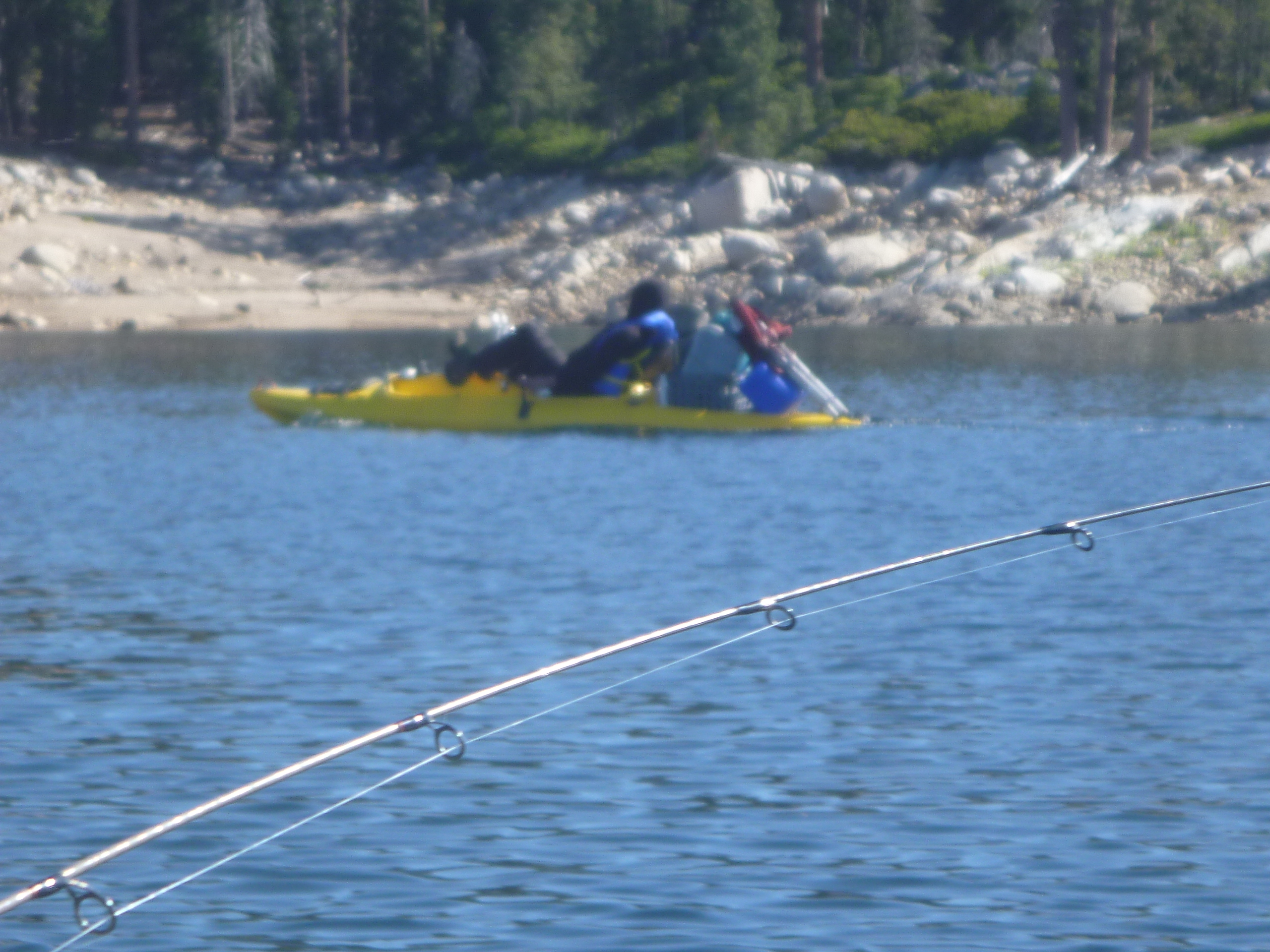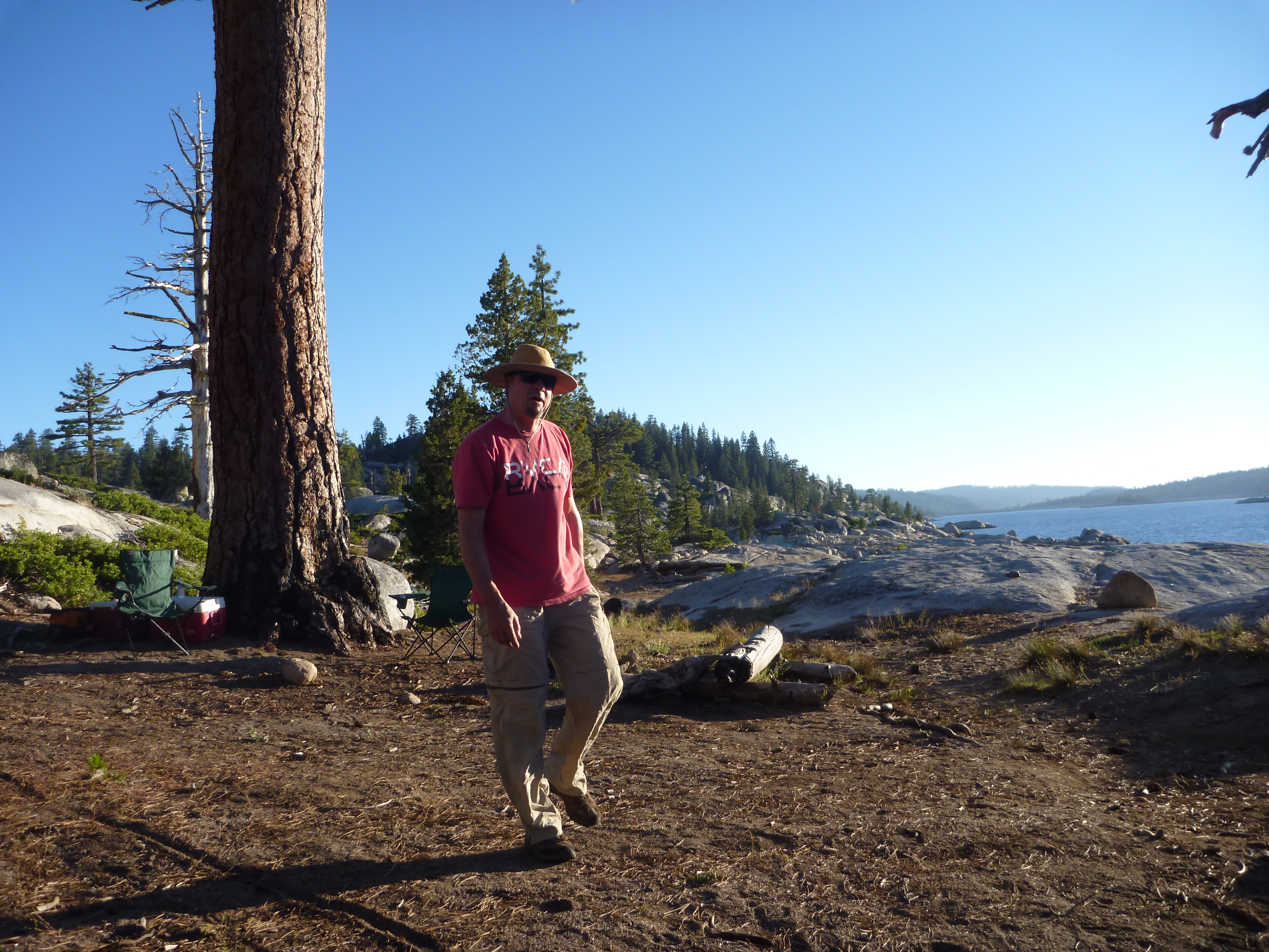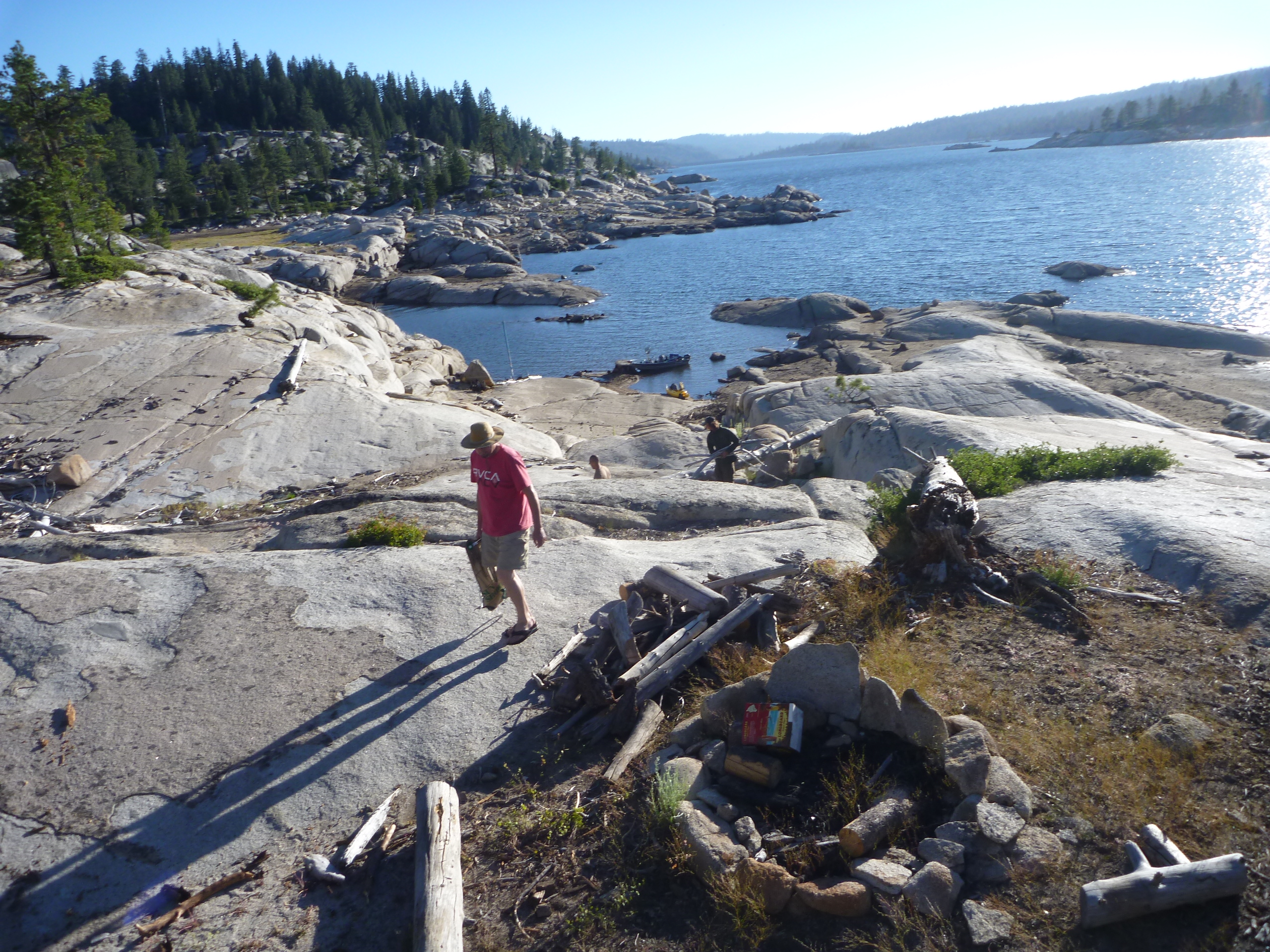 Made our annual trek to Spicer July13th-15. 8 of us rolled down the road to the lake Friday noonish. Lake was stunning as usual but down a fair amount so we knew it would be a trek to carry the beer up to our island camping spot 3 miles up the lake. I Peddled/sailed there with a fair load of gear while my bro ferried three loads from the ramp to our camp in the tin can. This is luxury camping in a jaw dropping setting at 7500 ft surrounded by higher peaks.