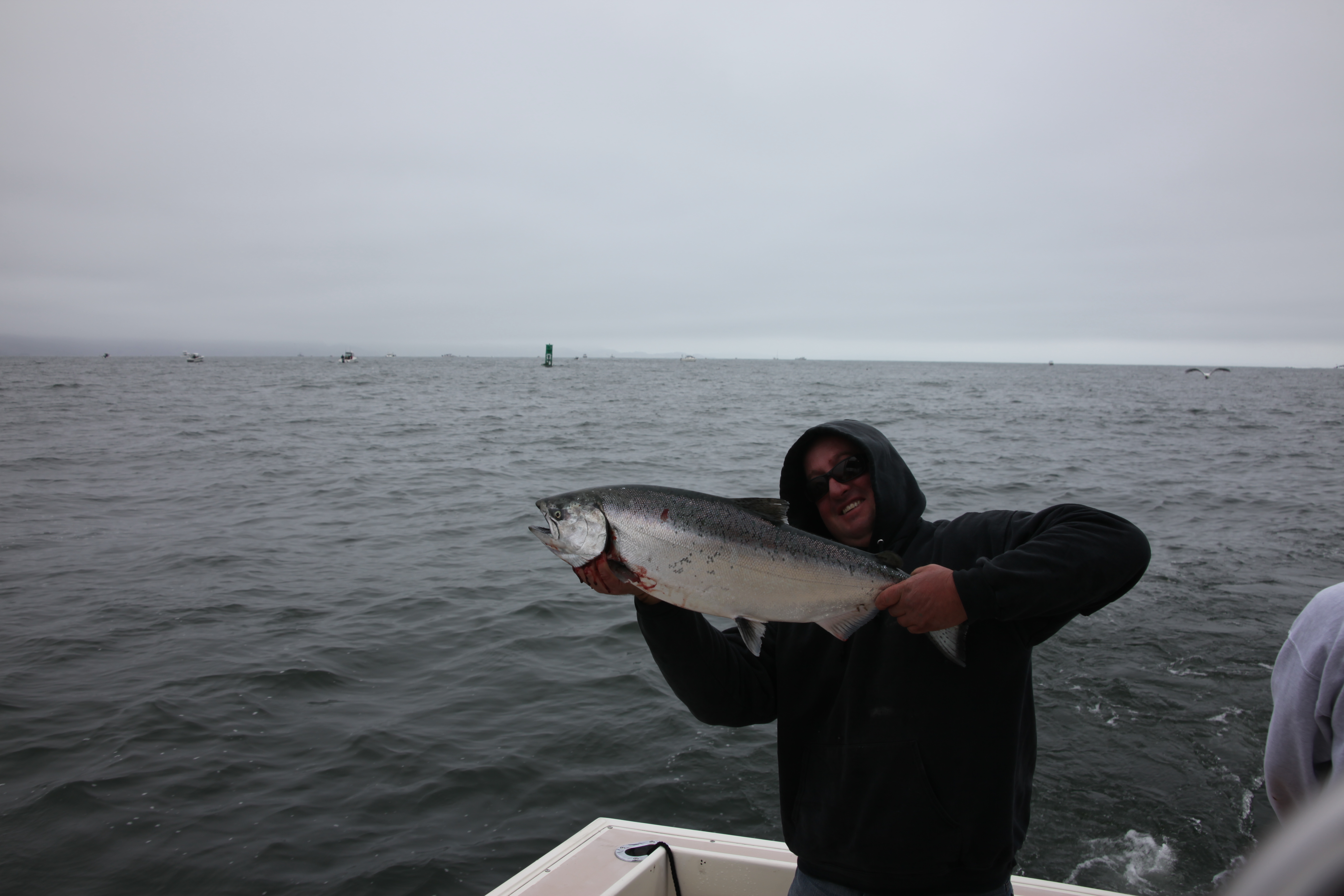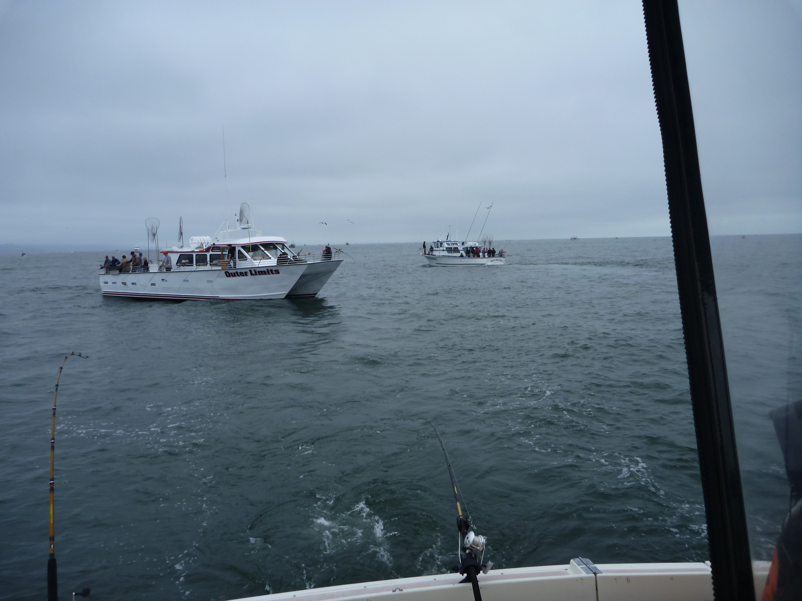 Neo and Stellarman met Dangerous Trebles and yours truly at South Beach harbor at a leisurely 8 AM and flew (in relative terms) out the gate. We took a look at Muir but Jerry makes the call for DR1. Radar lit up and we found the fleet in a stately dance around the green can. I believe Steve was up first and Jerry joined him in a menage a deux.