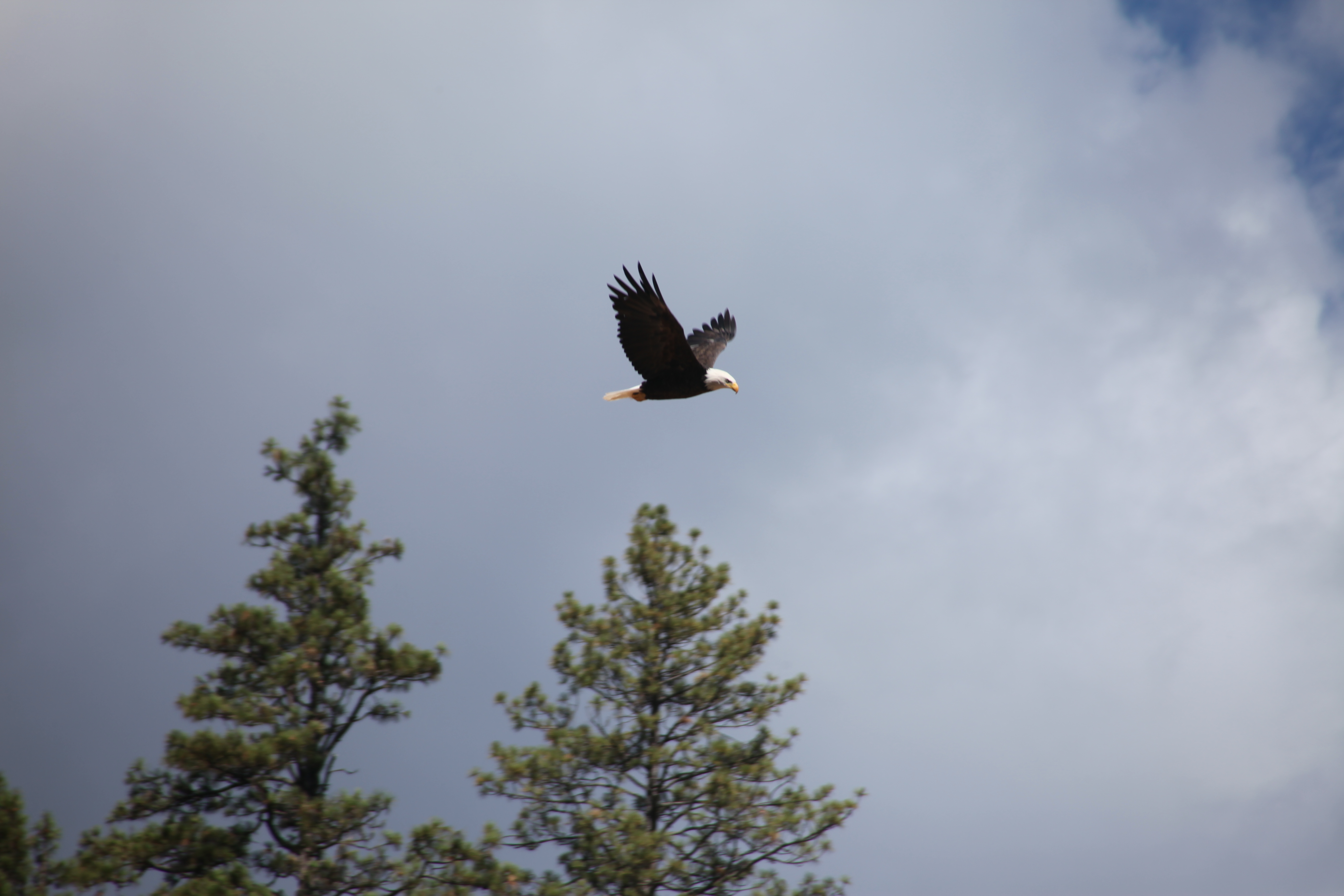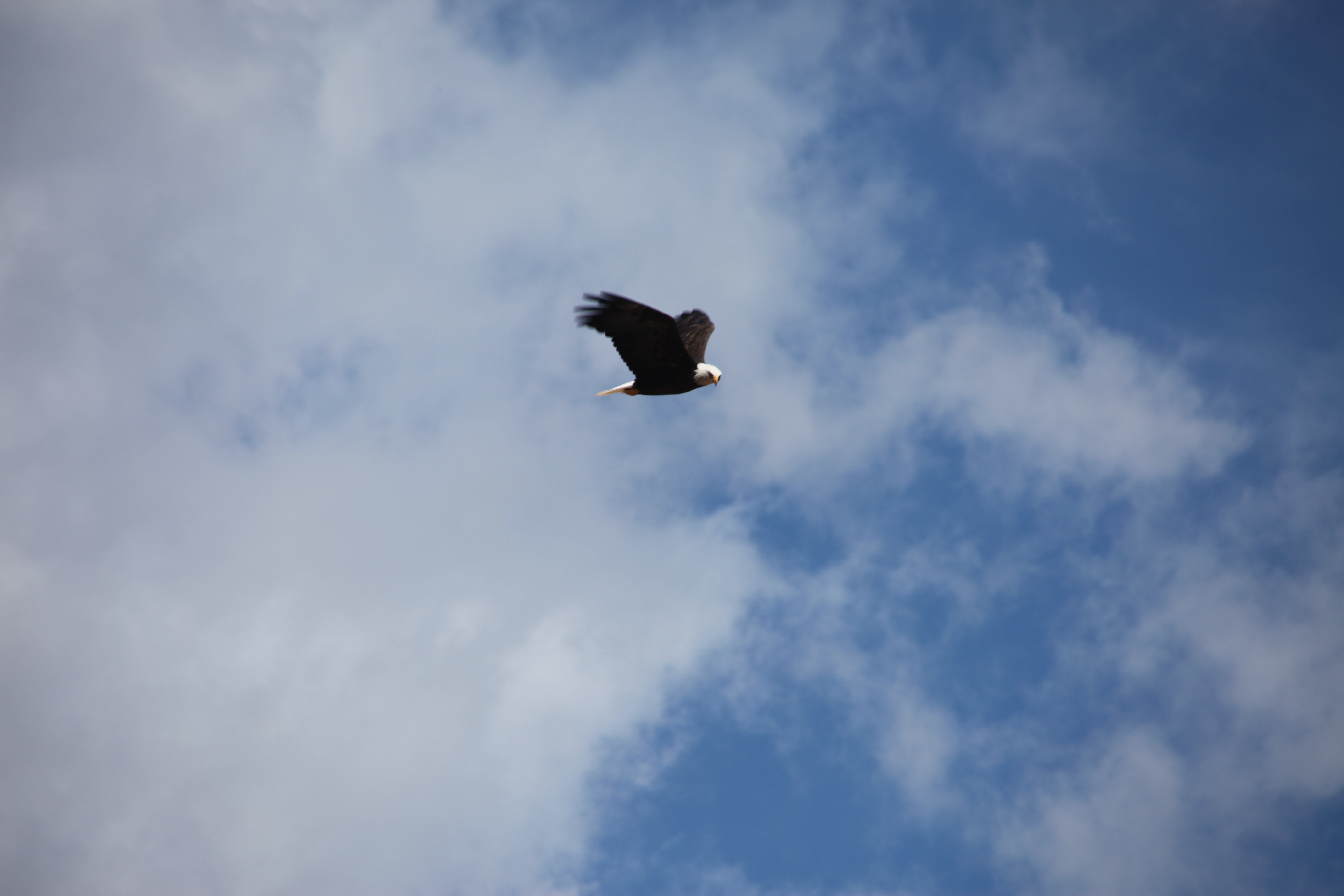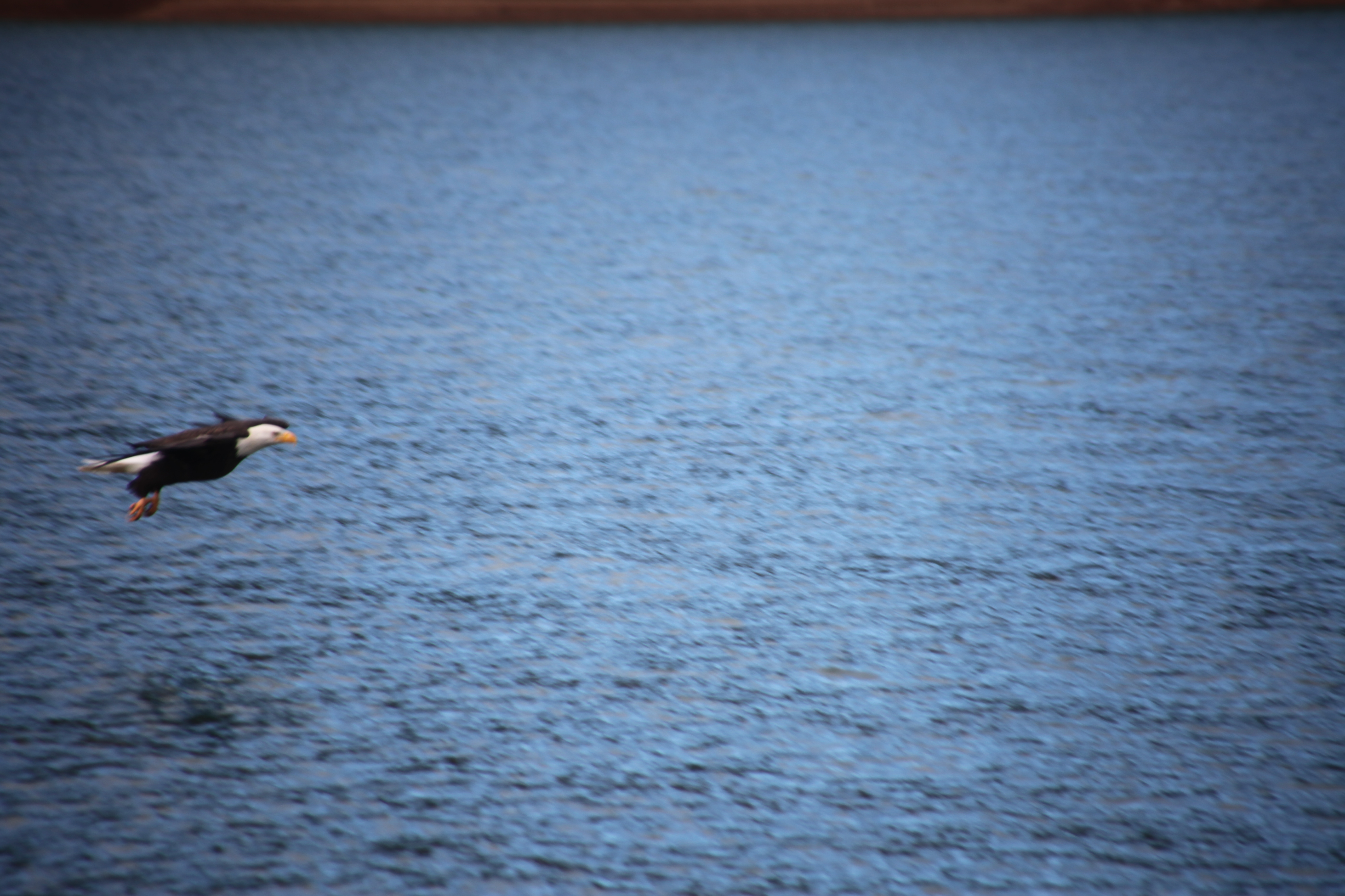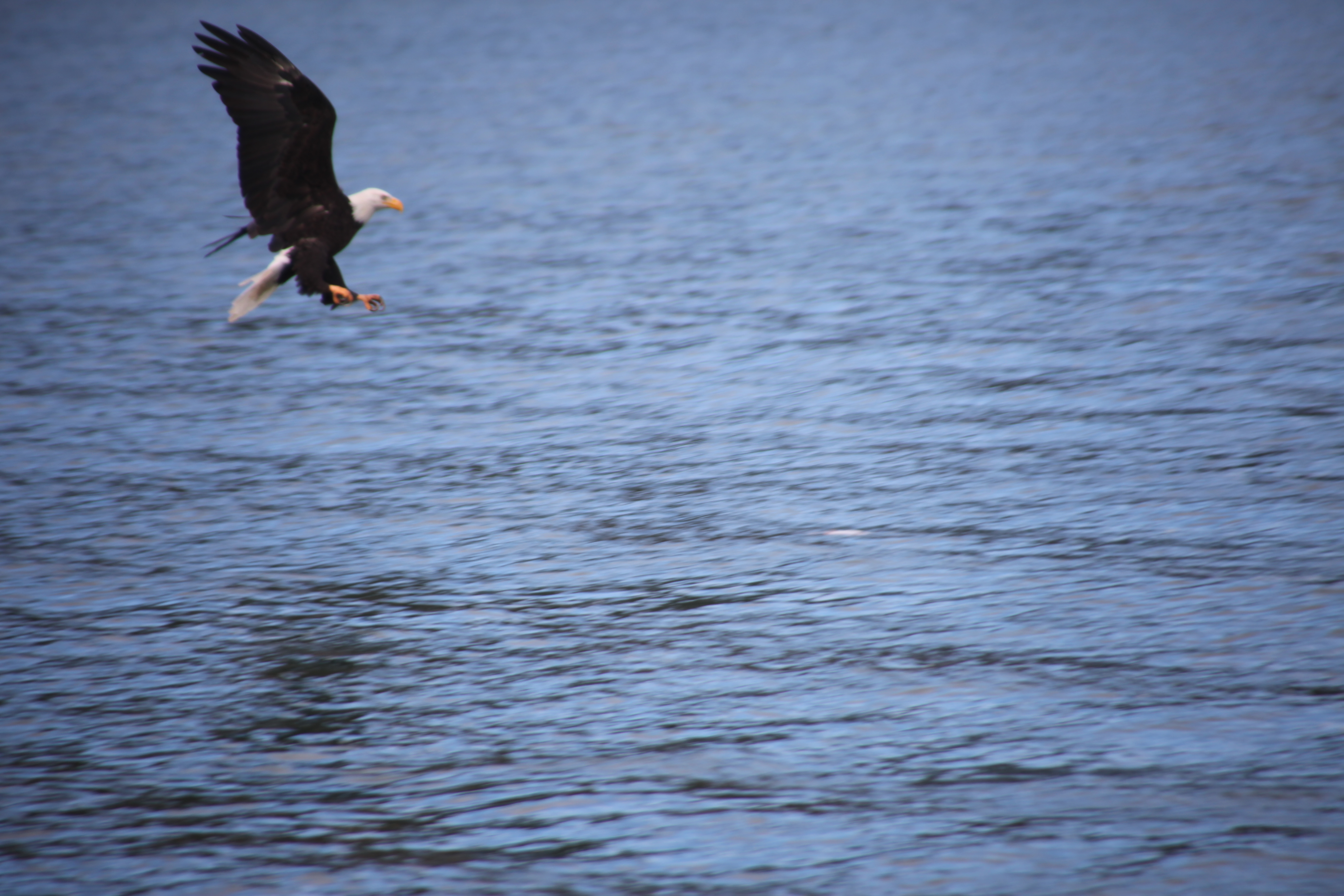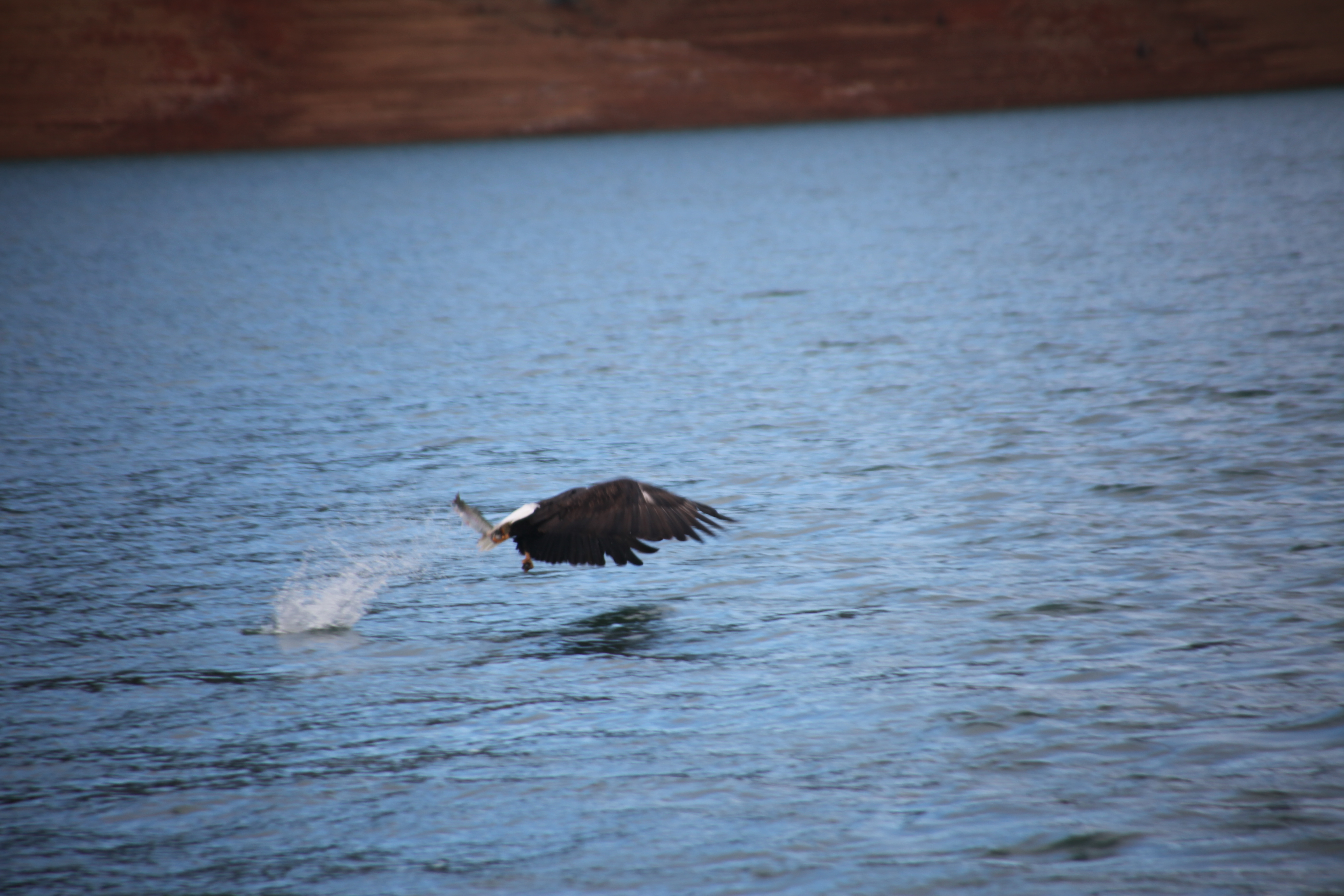One baldy hit the water hard and failed to grip and go. We figured he was a young one who was practicing.