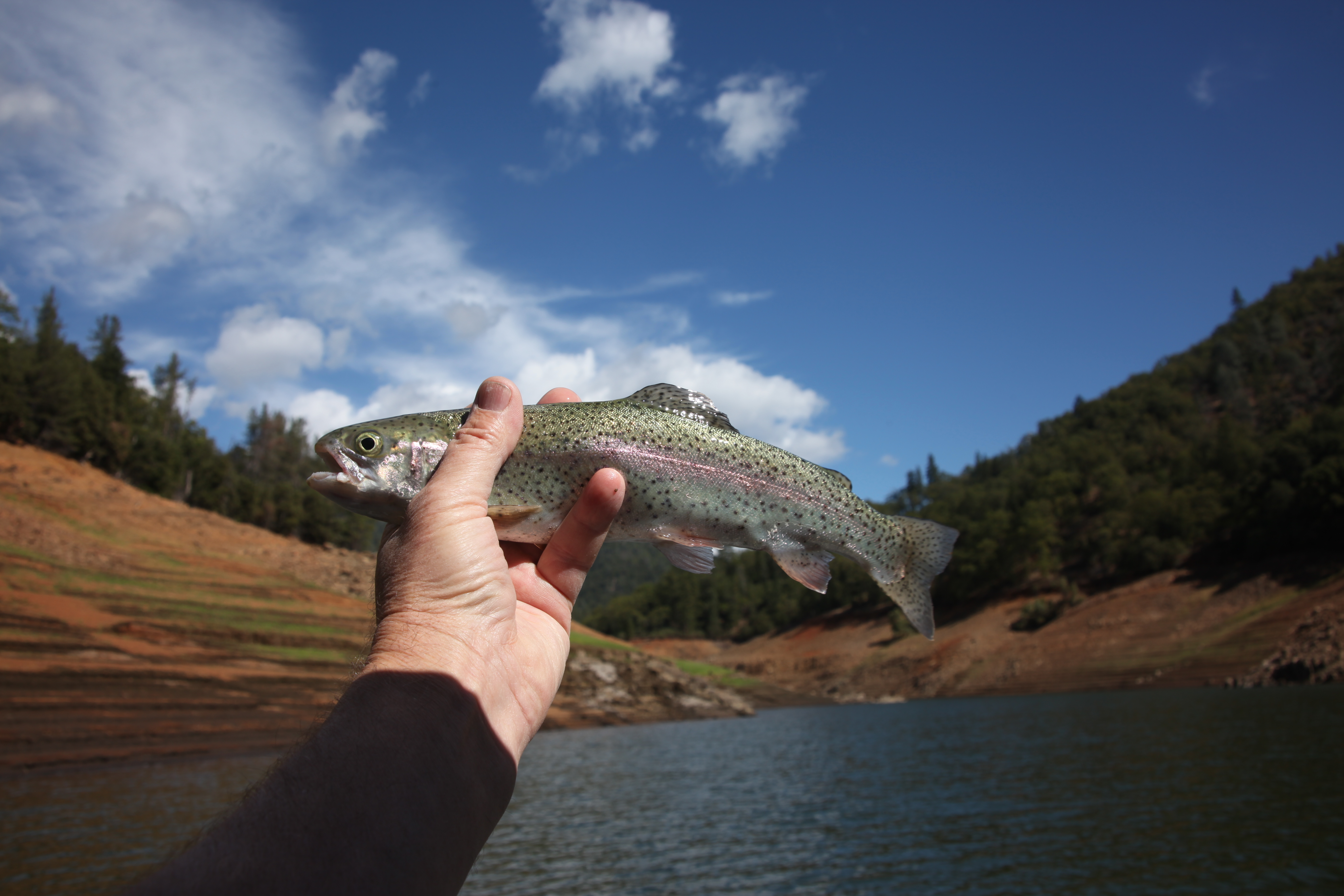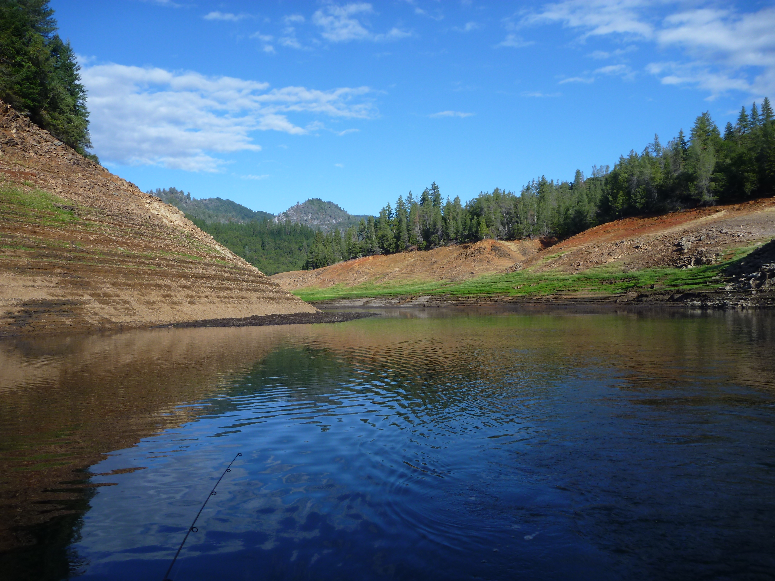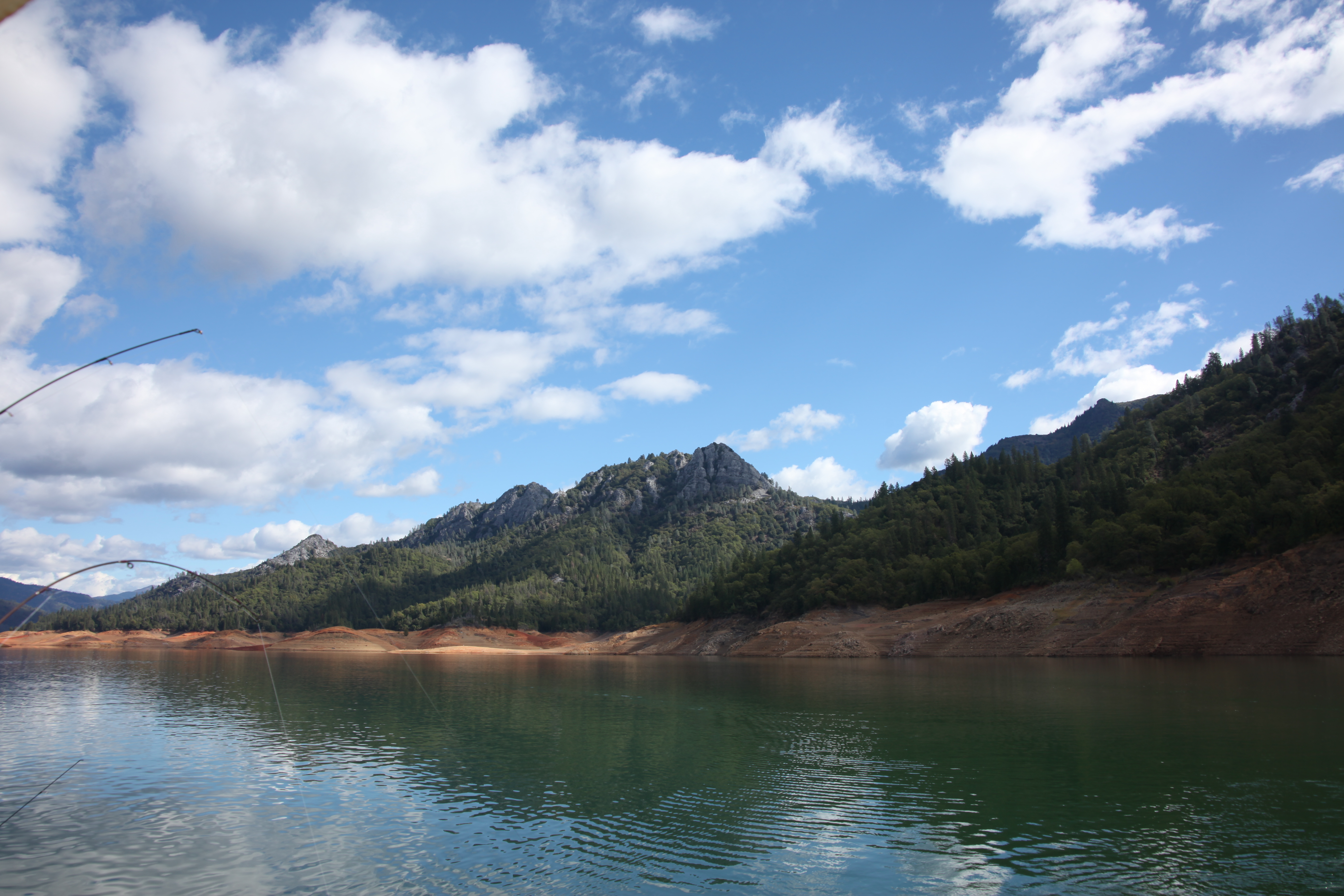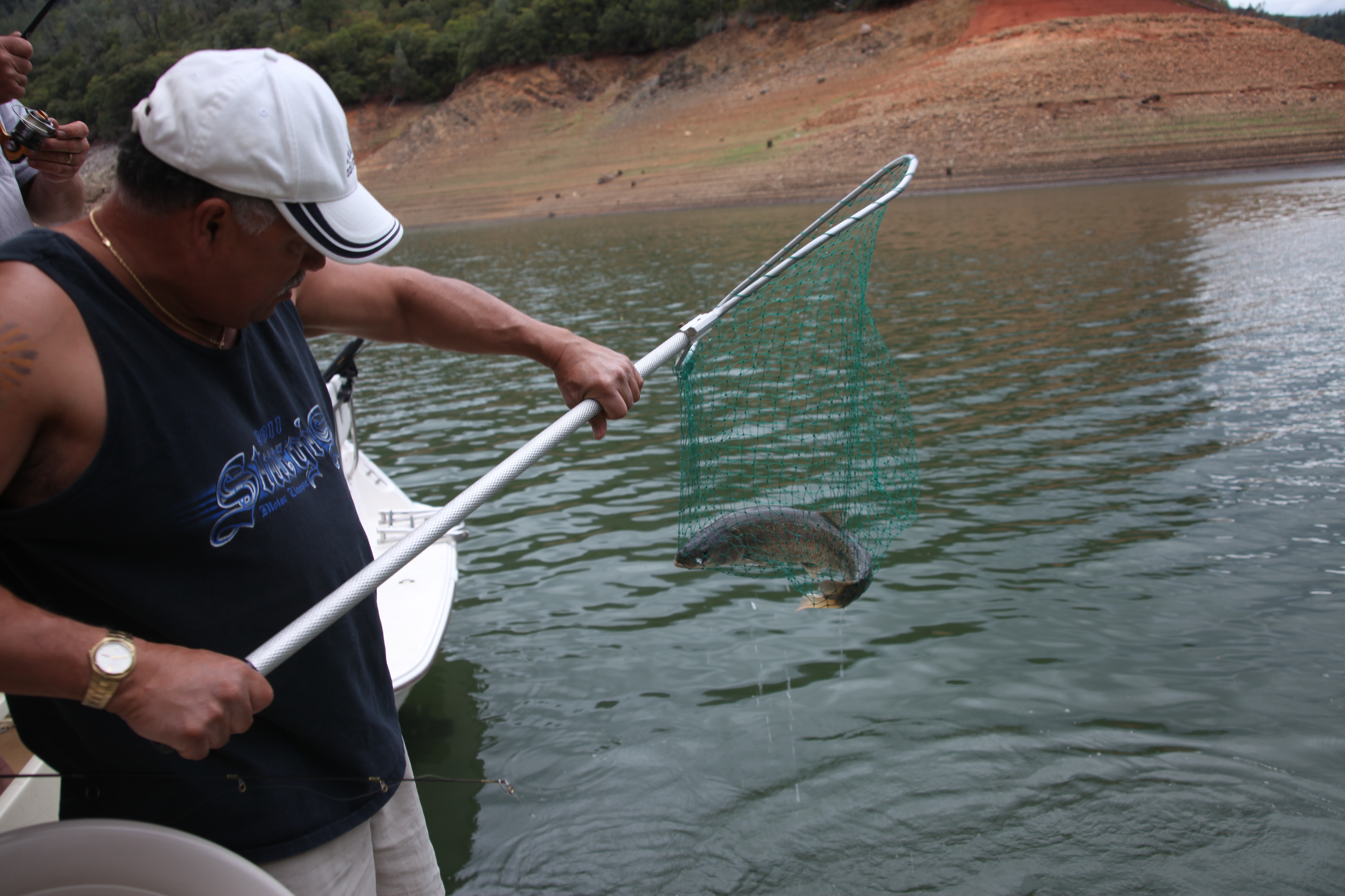 Mel and I with help from all ran lines all day and night. We ran stacked downriggers and various surface runners on the troll, minnows under bobbers, minnows and crawlers on the bottom tied up. At night we ran 2 floating crappie lights and chummed all of the moldy bagels. We found the mother lode where the McCLoud dumps in with bait by the acre and fish going apeshit on top. I tossed blue and silver kastmasters for hours with all the spotted bass I wanted to catch with a few bows mixed in.