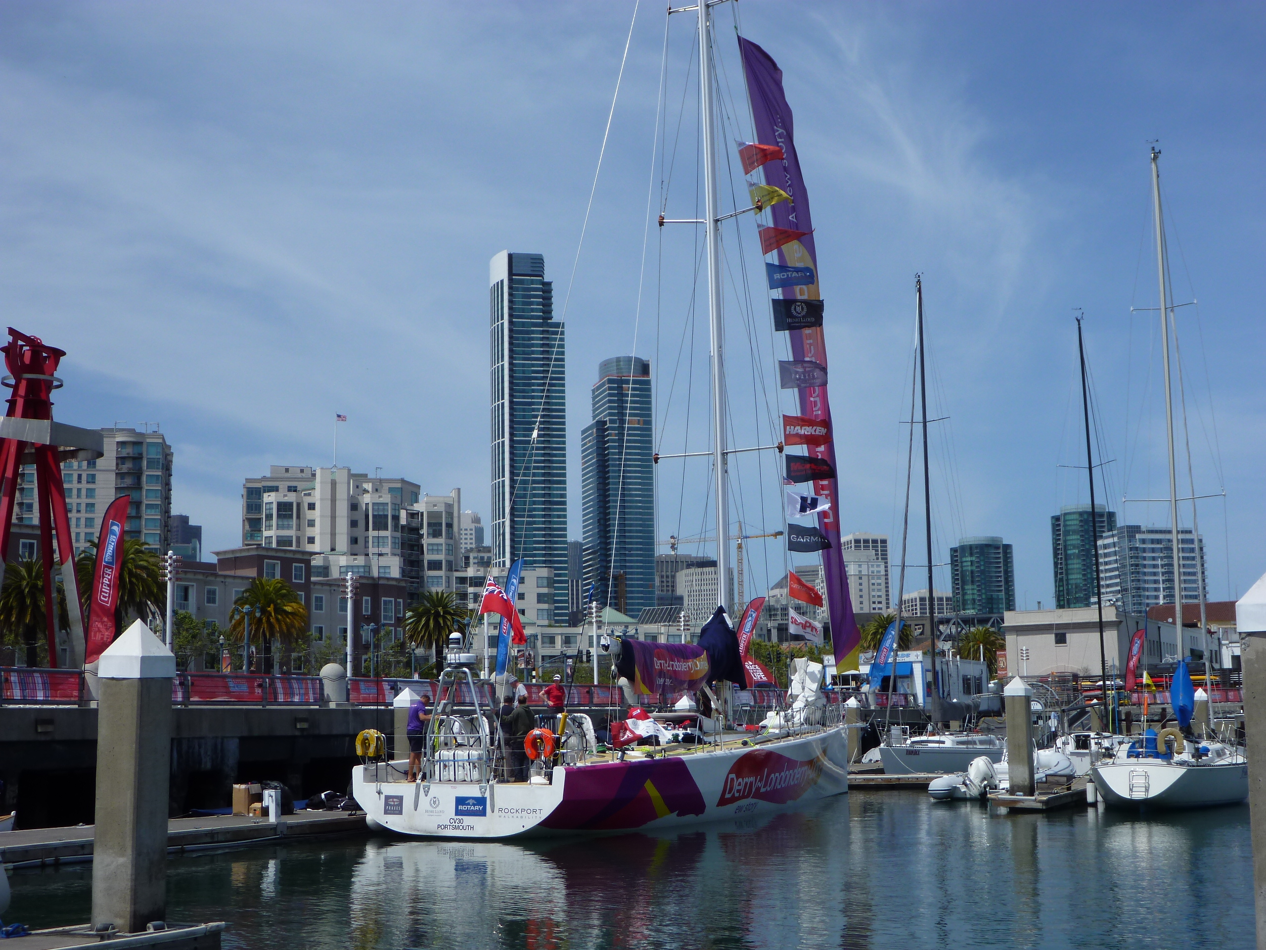 Debra and I spent the night aboard and the Stellmans joined us Sat morning at the reasonable hour of 8. First time out in the big boat in MANY months. The CLipper race was headed off on their 8 month adventure.