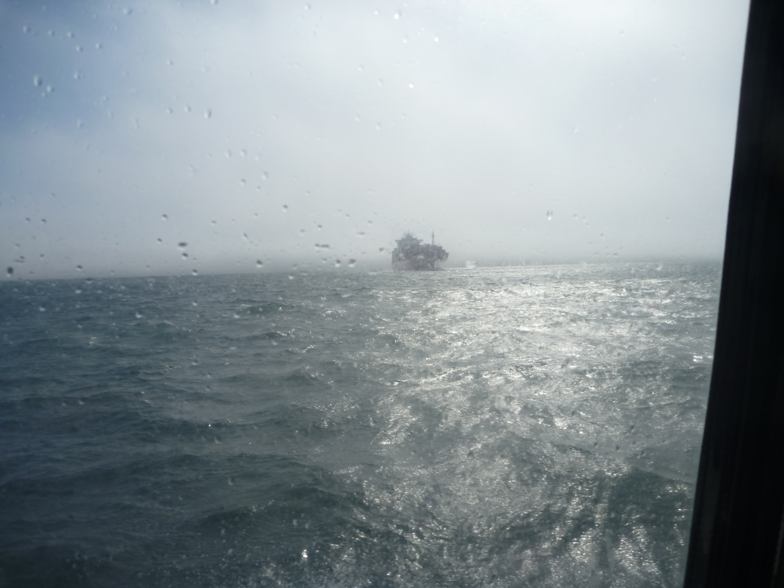 The 120 ft pots unfortunately were out of site in the current since it turned out we dropped in the potato patch LOL. So we did the rodeo thing for better than an hr trying to scan the whitewater for buoys. Crew starts grumbling and rightly so. I decided to dash over to Bonita cove where we were grateful for a respite from the wind. Played freighter tag on the way across