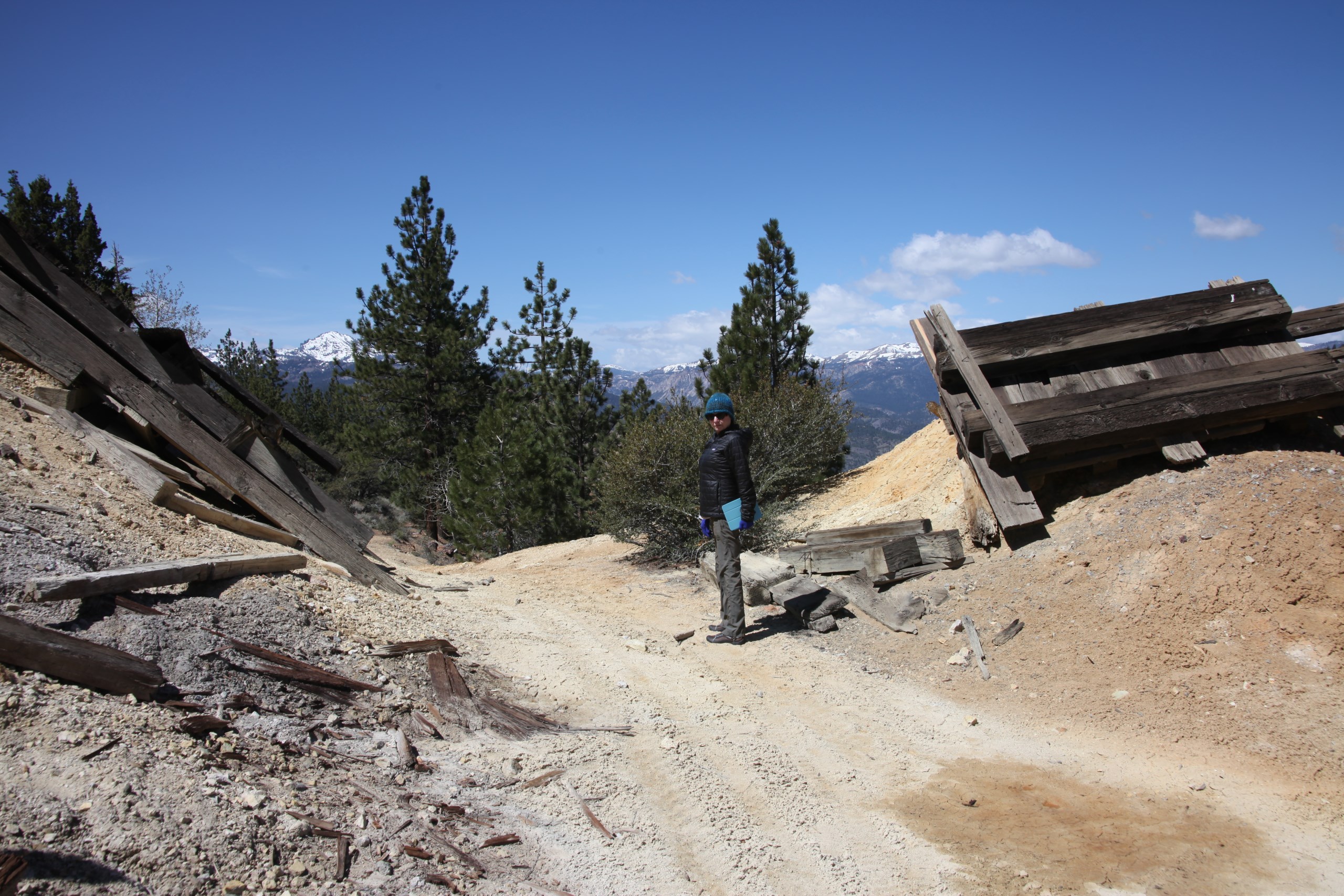 We wheeled in some 10 miles into sage and Jeffrey pine. Nothing gets Debra more excited than the words “Let’s go explore some abandoned mines!” (Cue eye rolling).