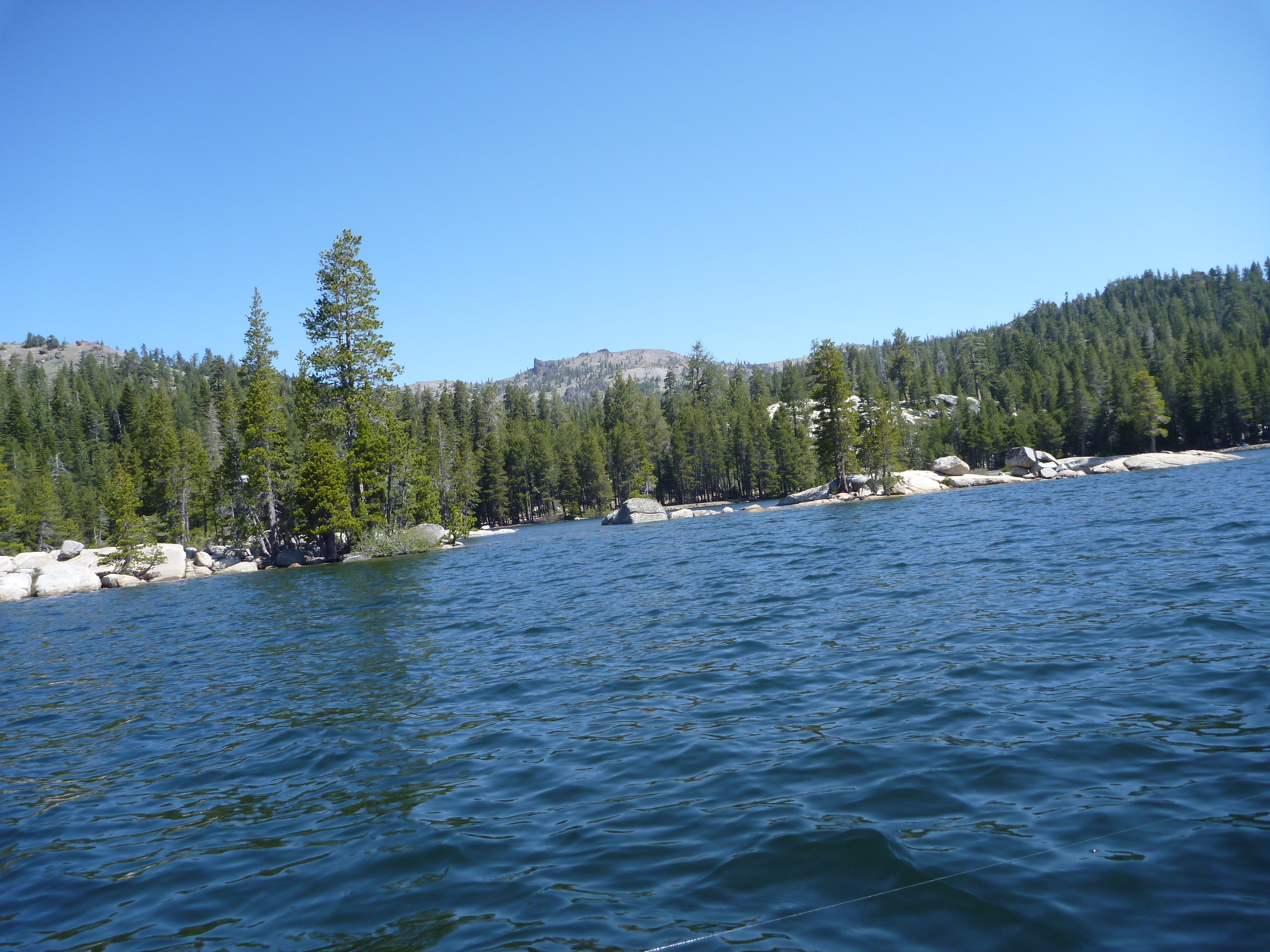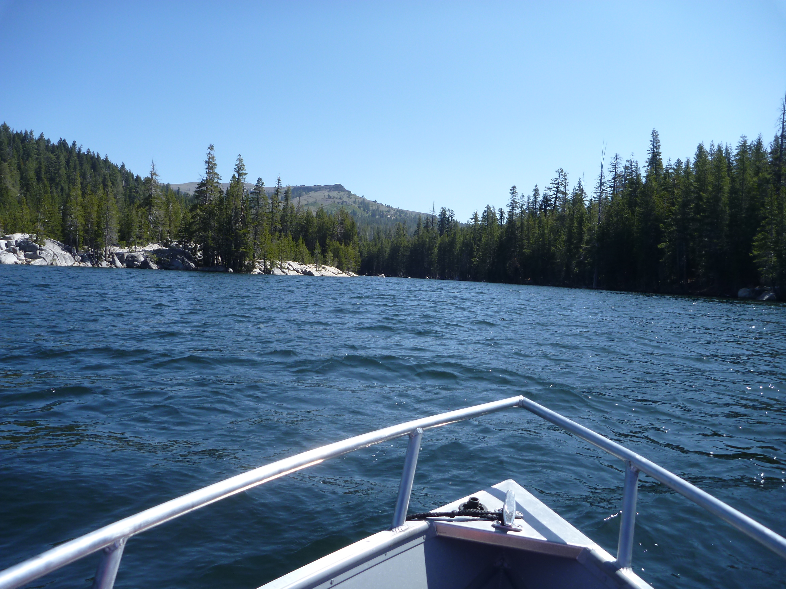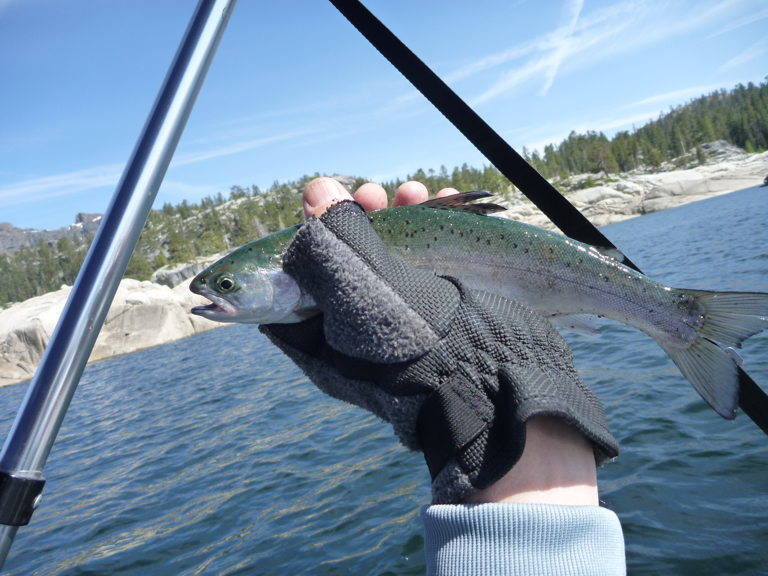 P1070973 P1070971 P1070970 P1070969 P1070968 P10709673 laps around the lake yielded a fish per lap. I decided to put the boat back on the trailer and we headed up to Highland Lakes. We hiked up the to Tryon Meadows and tried to win the ridge behind but snow blocked the path. Debra does not like fording streams.