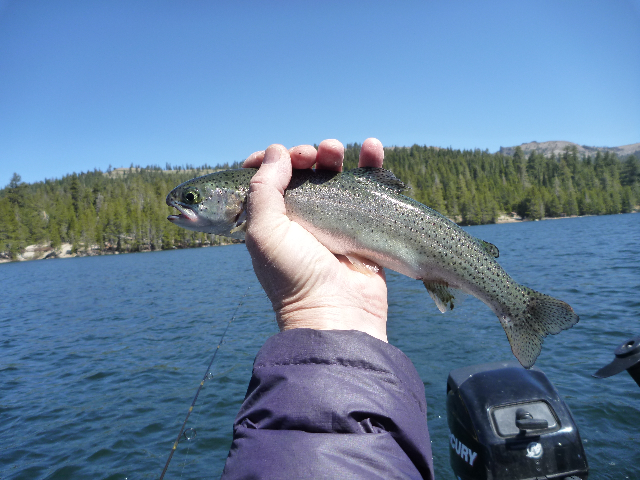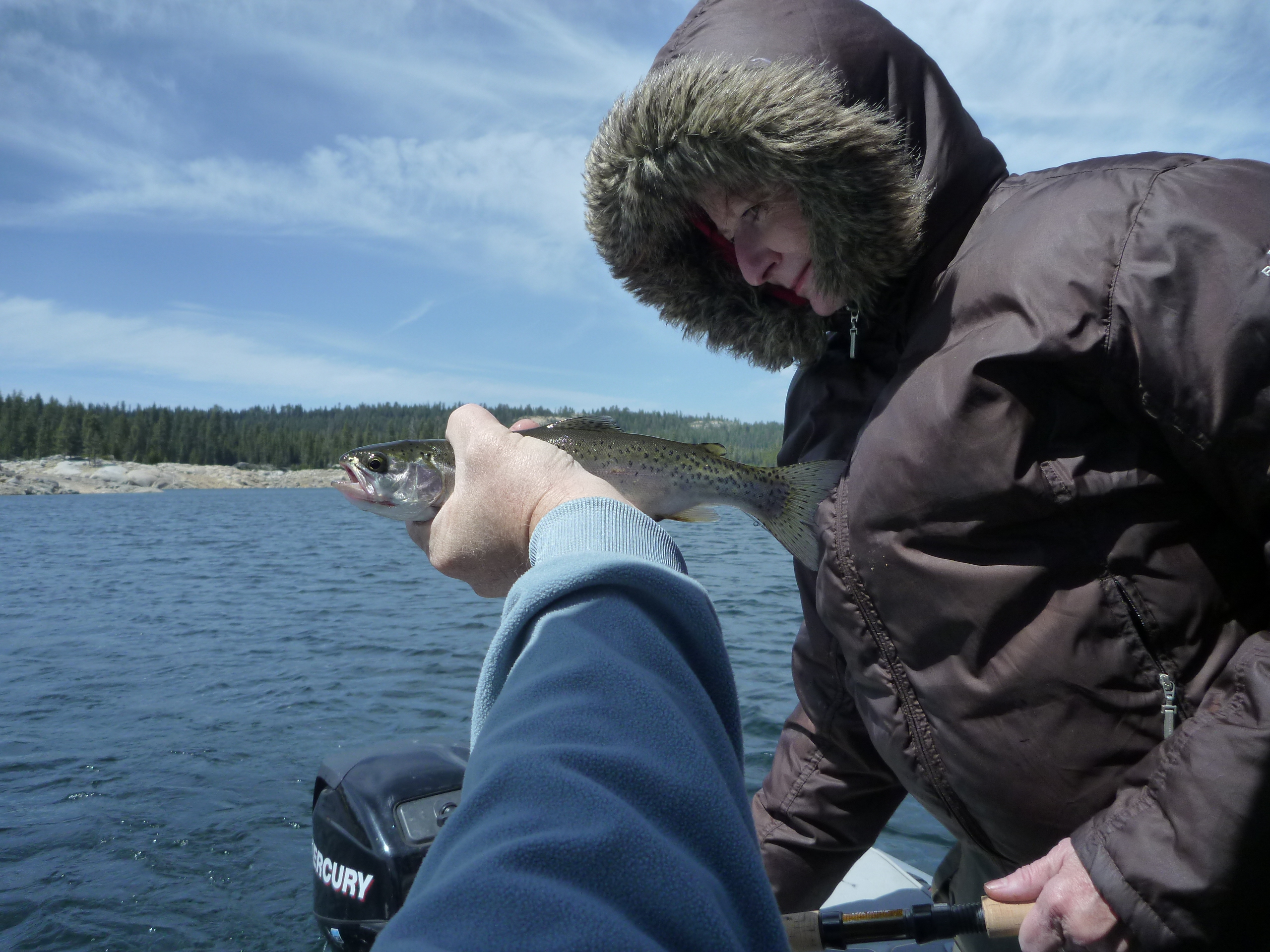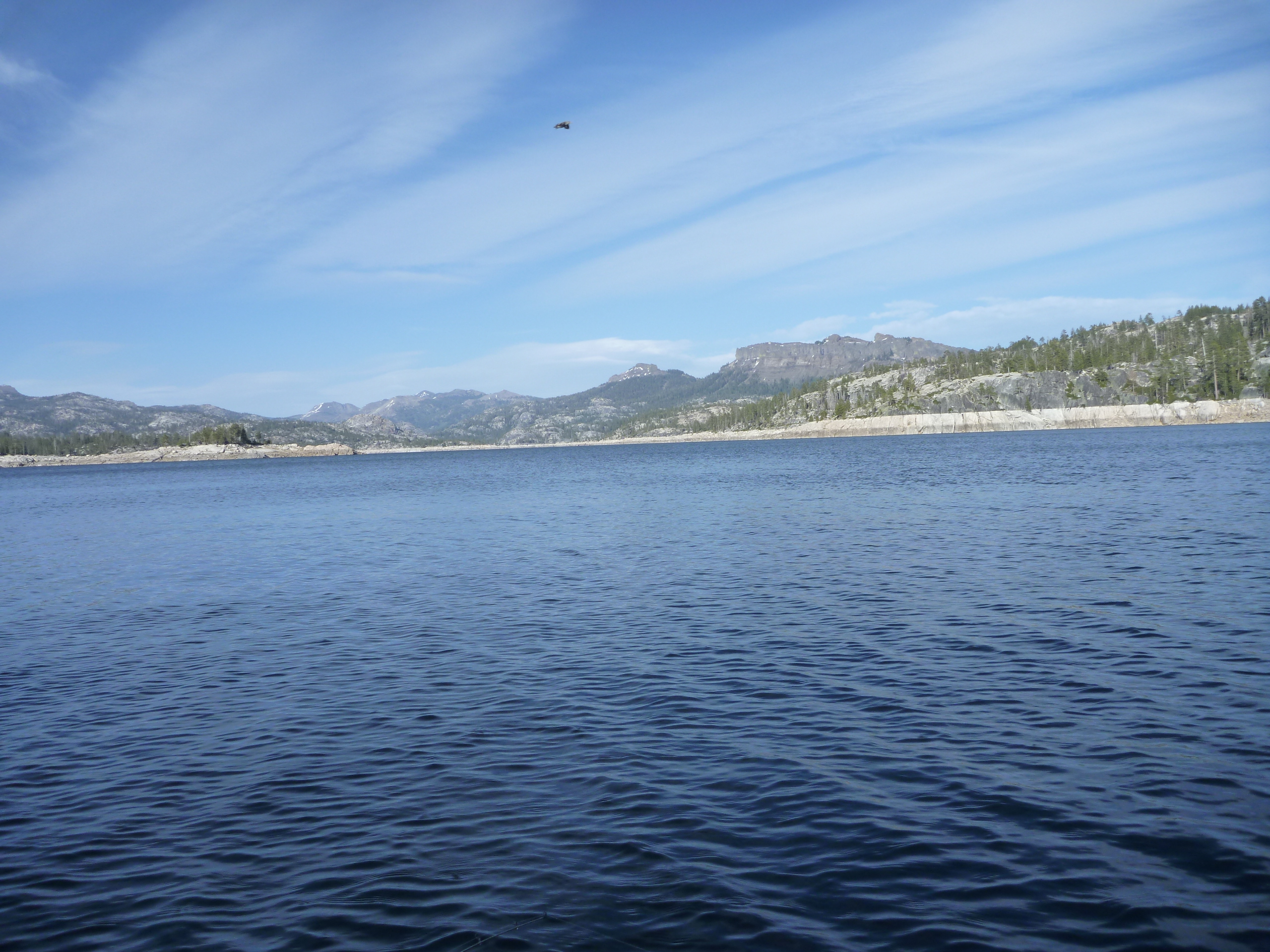 P1070973 P1070971 P1070970 P1070969 P1070968 P10709673 laps around the lake yielded a fish per lap. I decided to put the boat back on the trailer and we headed up to Highland Lakes. We hiked up the to Tryon Meadows and tried to win the ridge behind but snow blocked the path. Debra does not like fording streams.