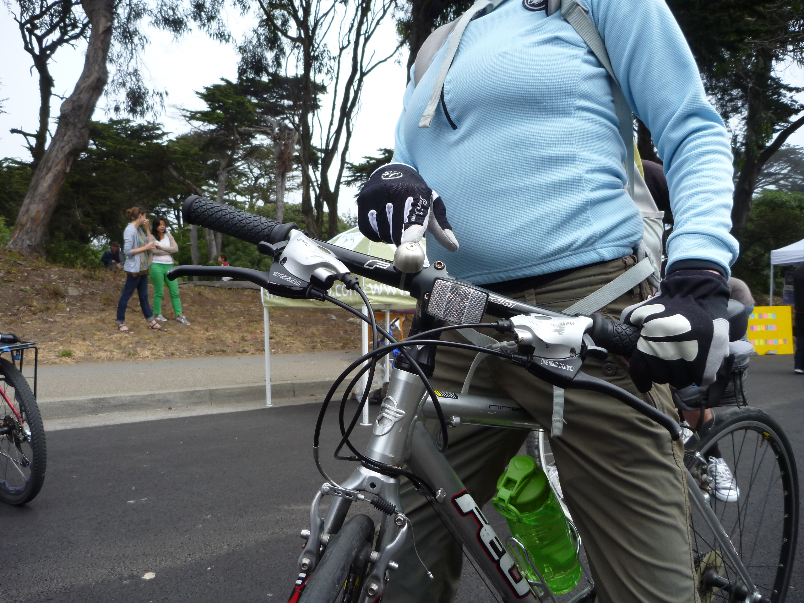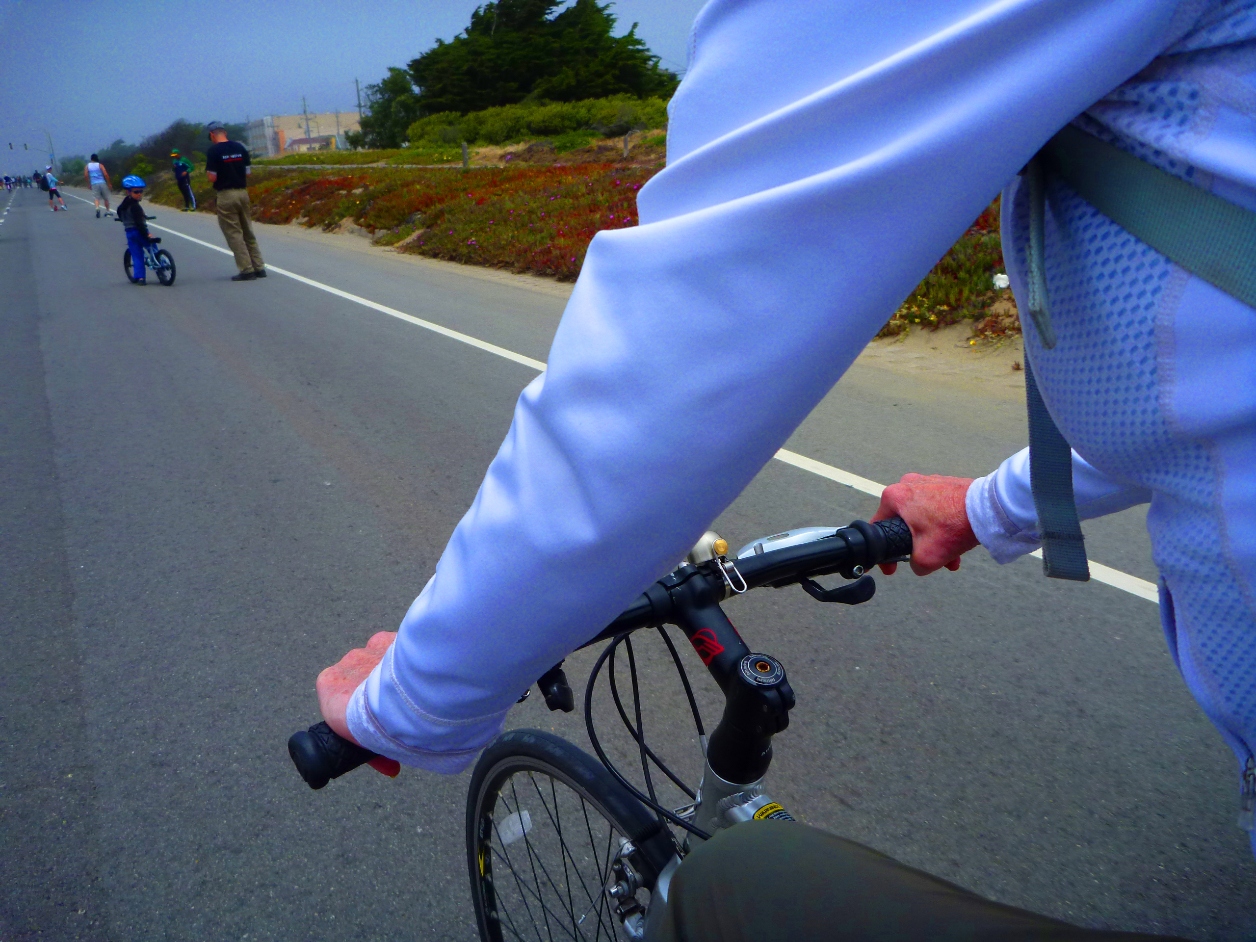 We glided (glade?glode?) through the park and out to the great highway. Debra was rocking her Spurcycle Bike Bell which we make in our shop.