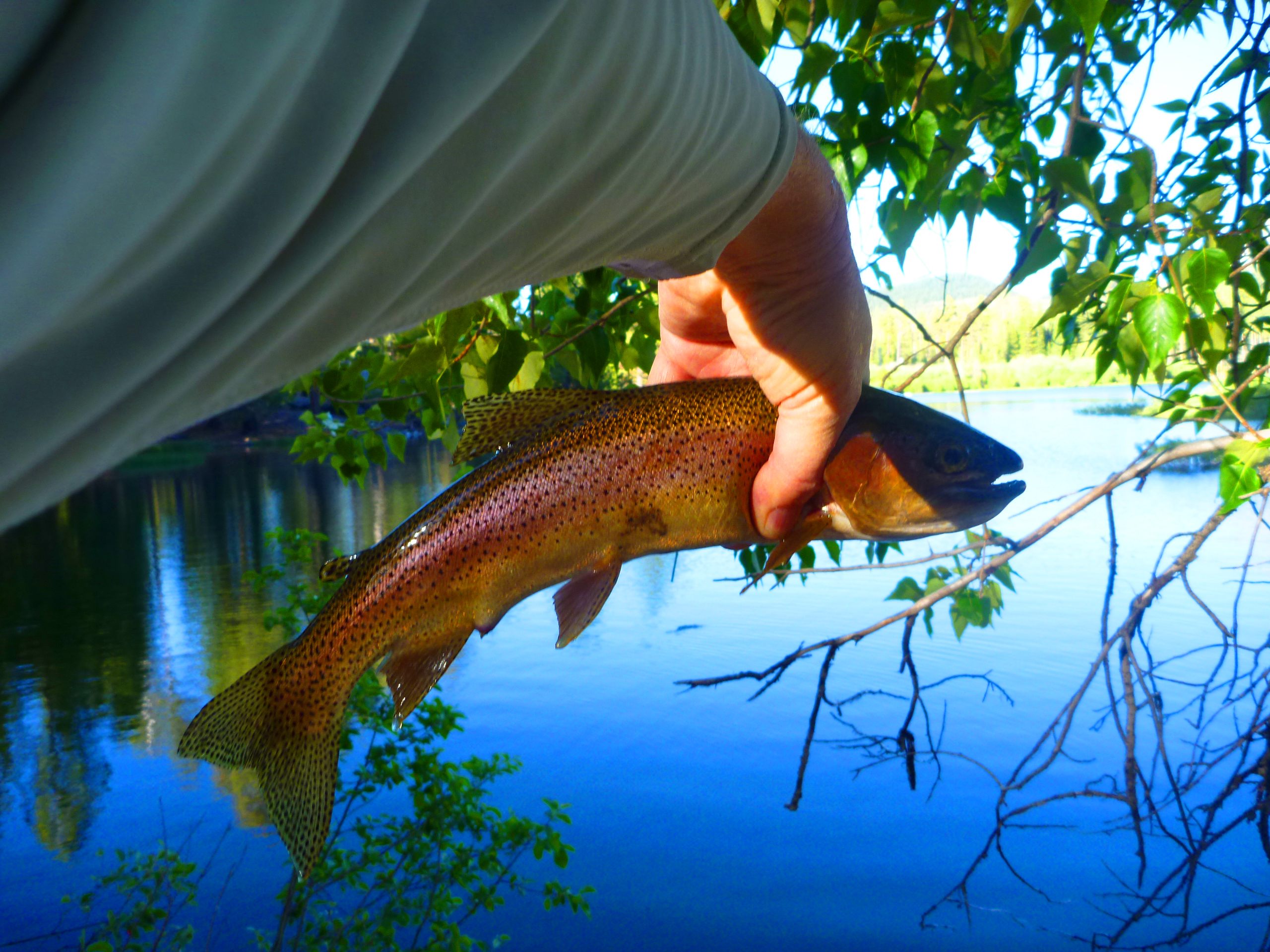 Located just inside the northeast entrance to the park the cabins at Manzanita are small, cheap, and clean but basic: a place to lay down. Fishing was frustrating as each evening was non stop hatches of whatever accompanied by hundreds of feeding trout completely oblivious to our offerings despite significant bucks spent at Redding Fly Shop. Here is a pic of one of the stupider but pretty trout there
