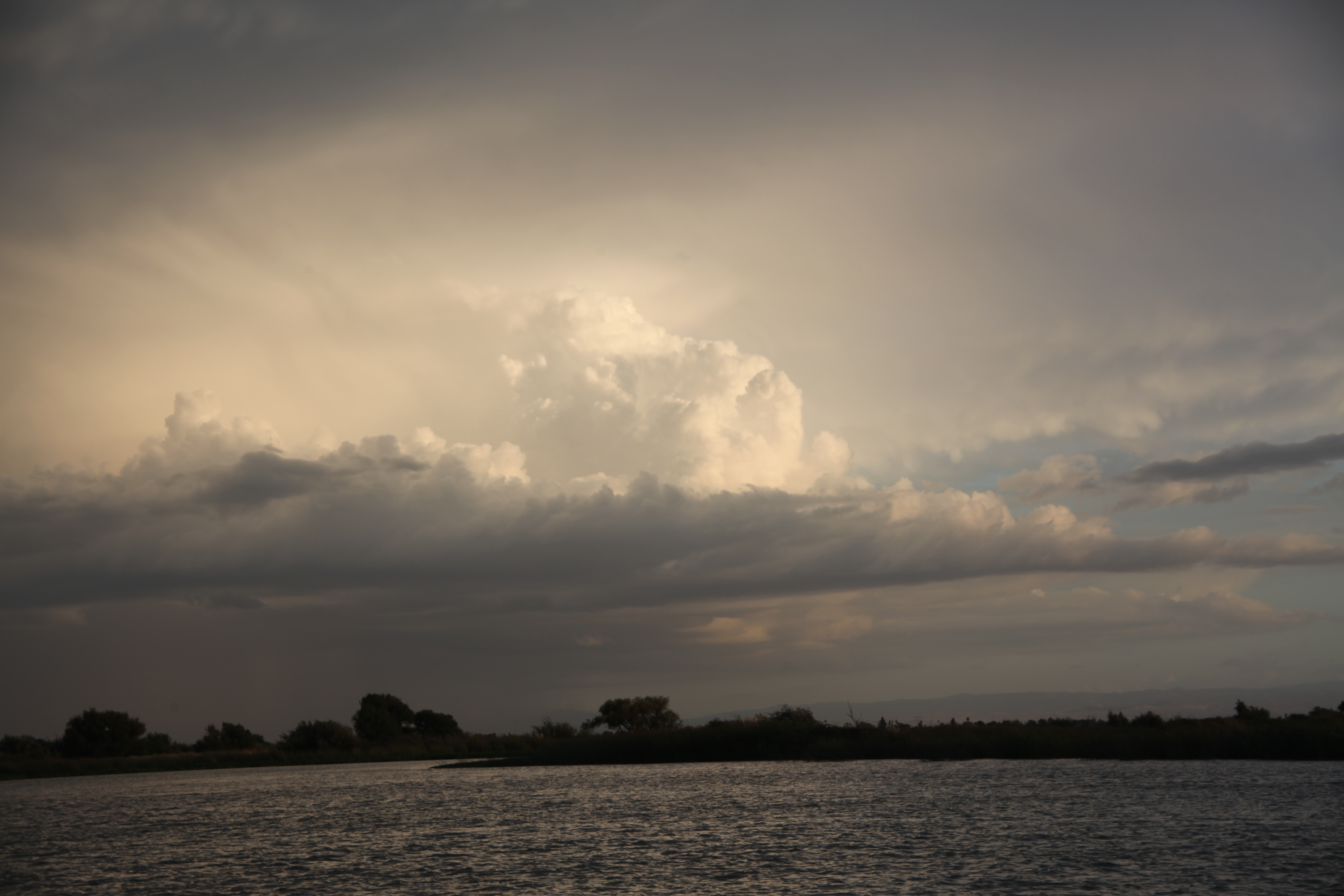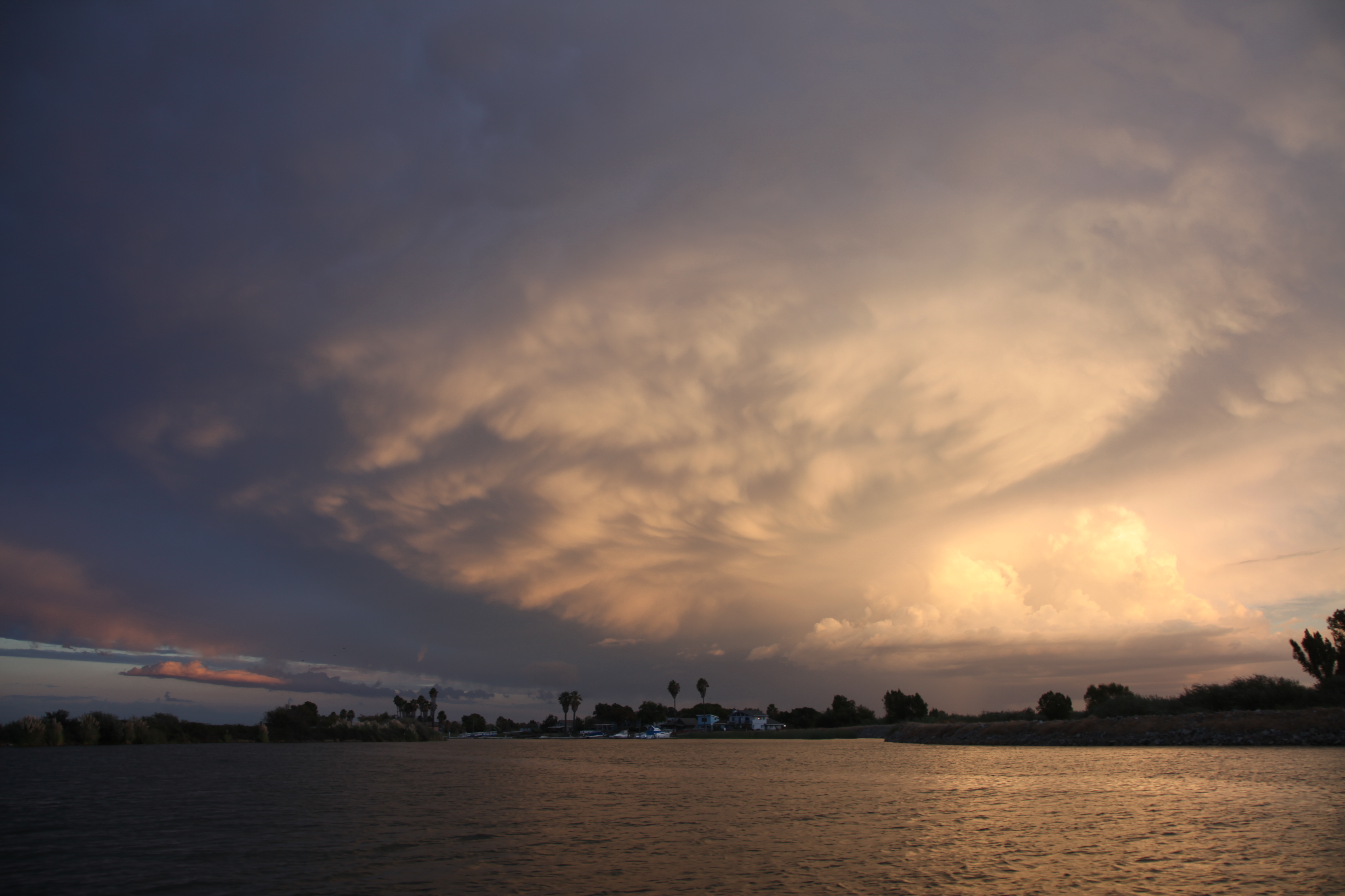 Debra and I took half a day of Friday and headed for Sugar Barge. We found birds and bait at light 57 on the river. They were hot for swimbaits. Debra landed 7 and I landed 10 before the school disappeared. Small fish, big fun. COld front made for a mighty cloud show.
