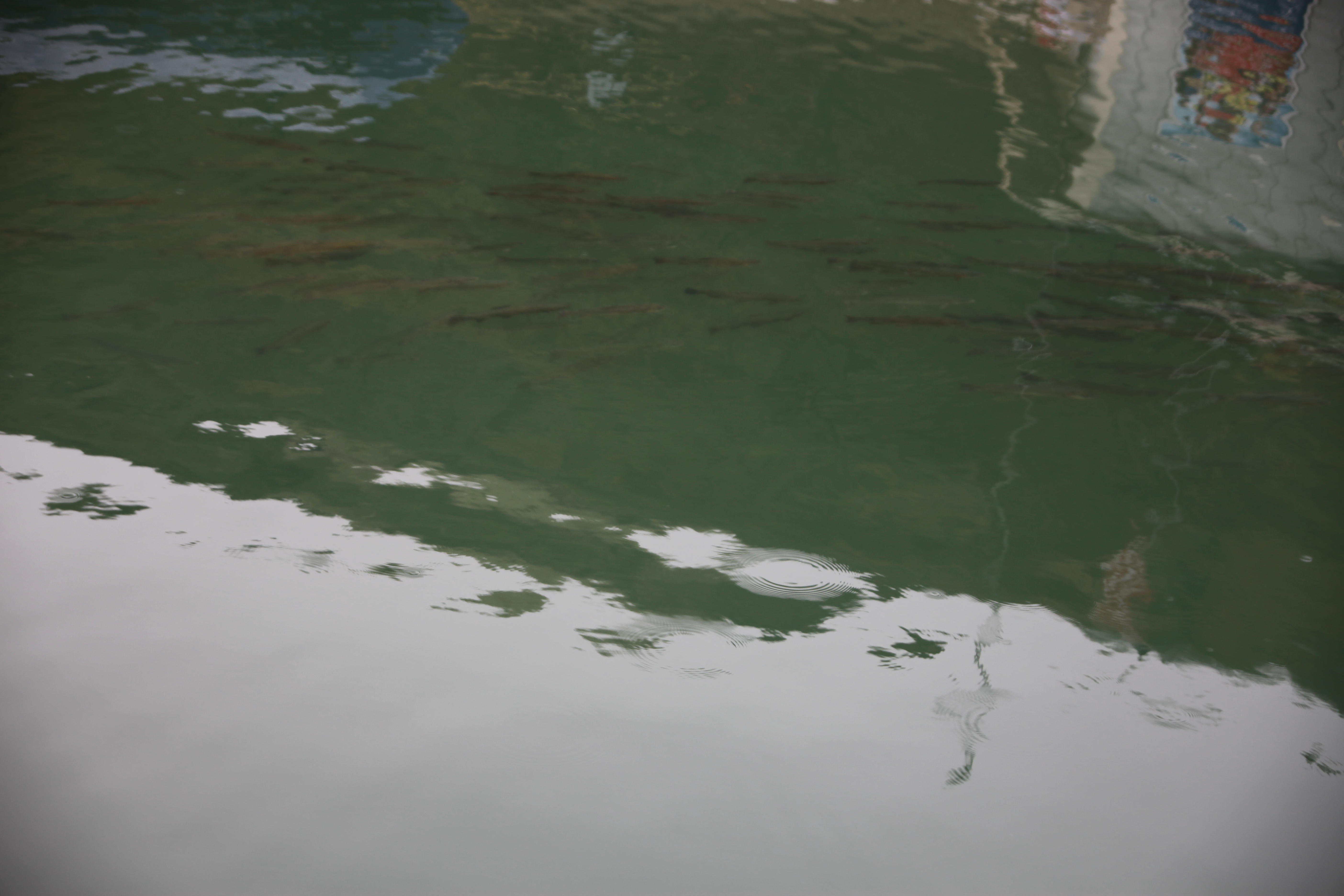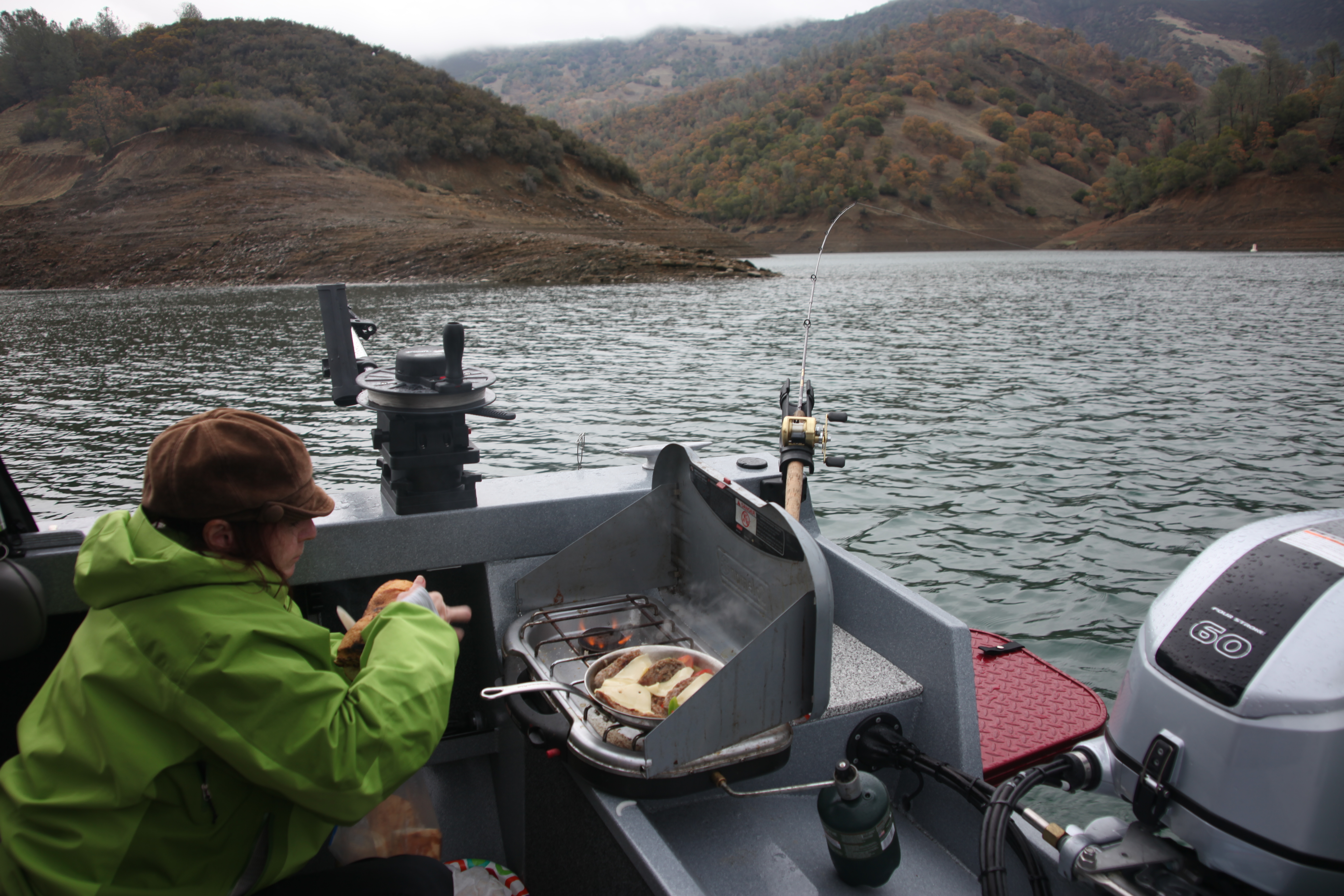 We set the riggers at 50 feet based on meter talk and also ran two topliners.We trolled towards the dam
