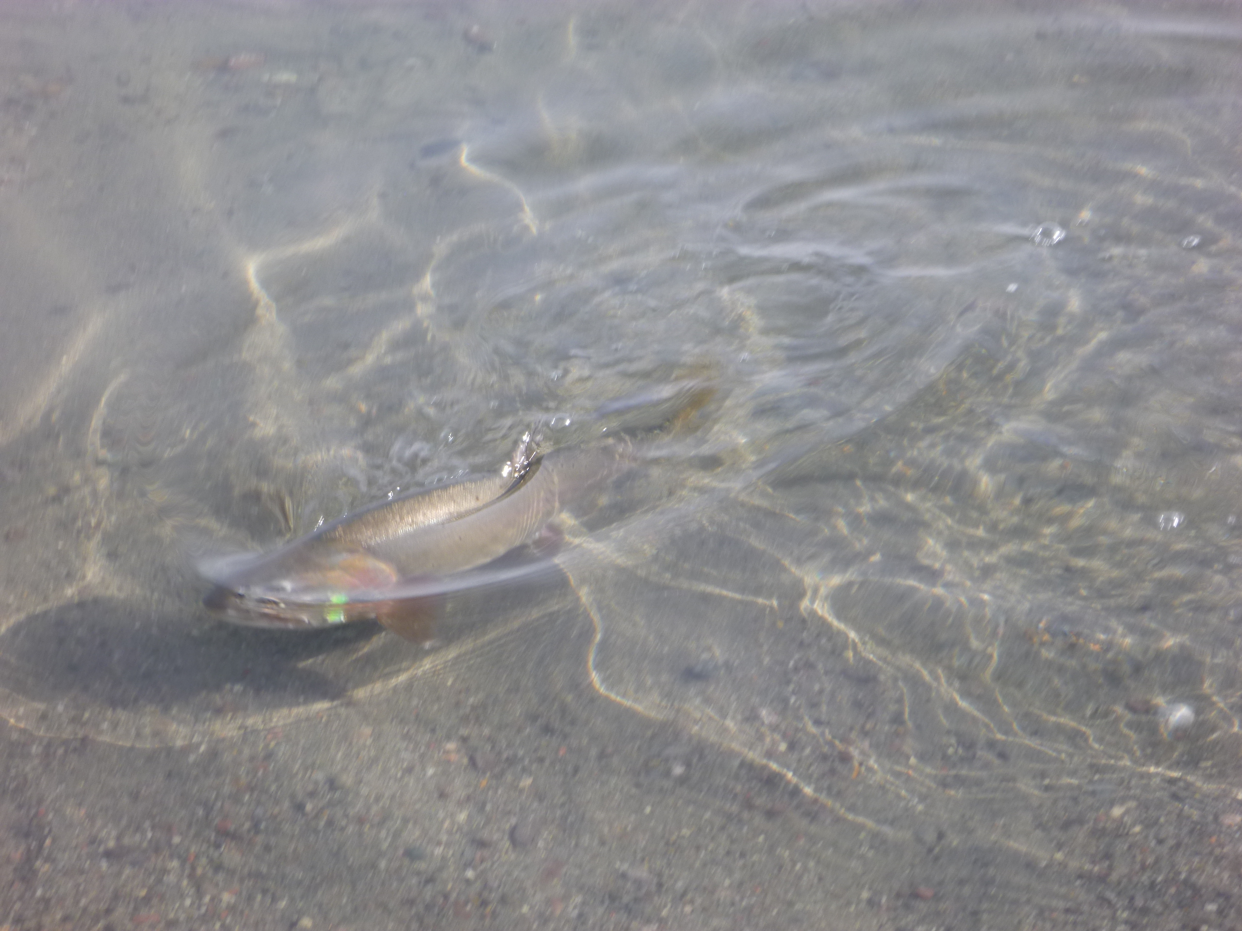 I was fishing a Black wooly bugger on spinning gear 8 ft under a pink christmas ornament bubble. I got hit on the lift by a follower.