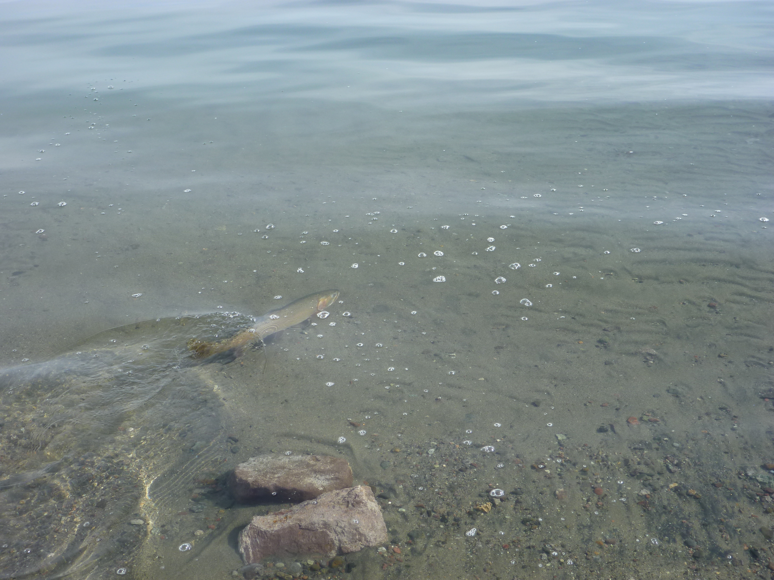 We threw beetles, spoons, flatfish, rocks etc at the fish but Blockhouse was dead. We packed up at noon and headed north to see if Crash was doing any better.