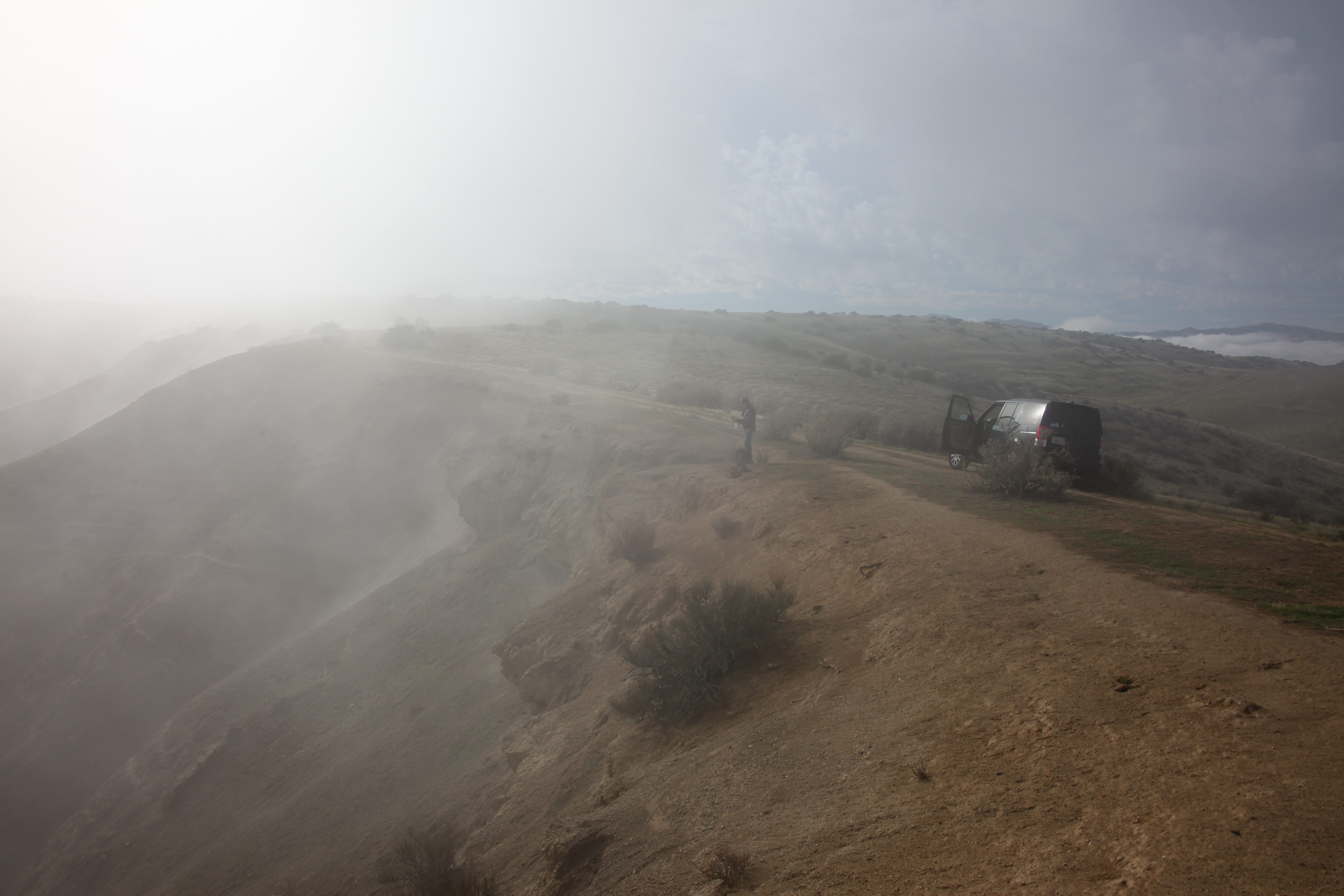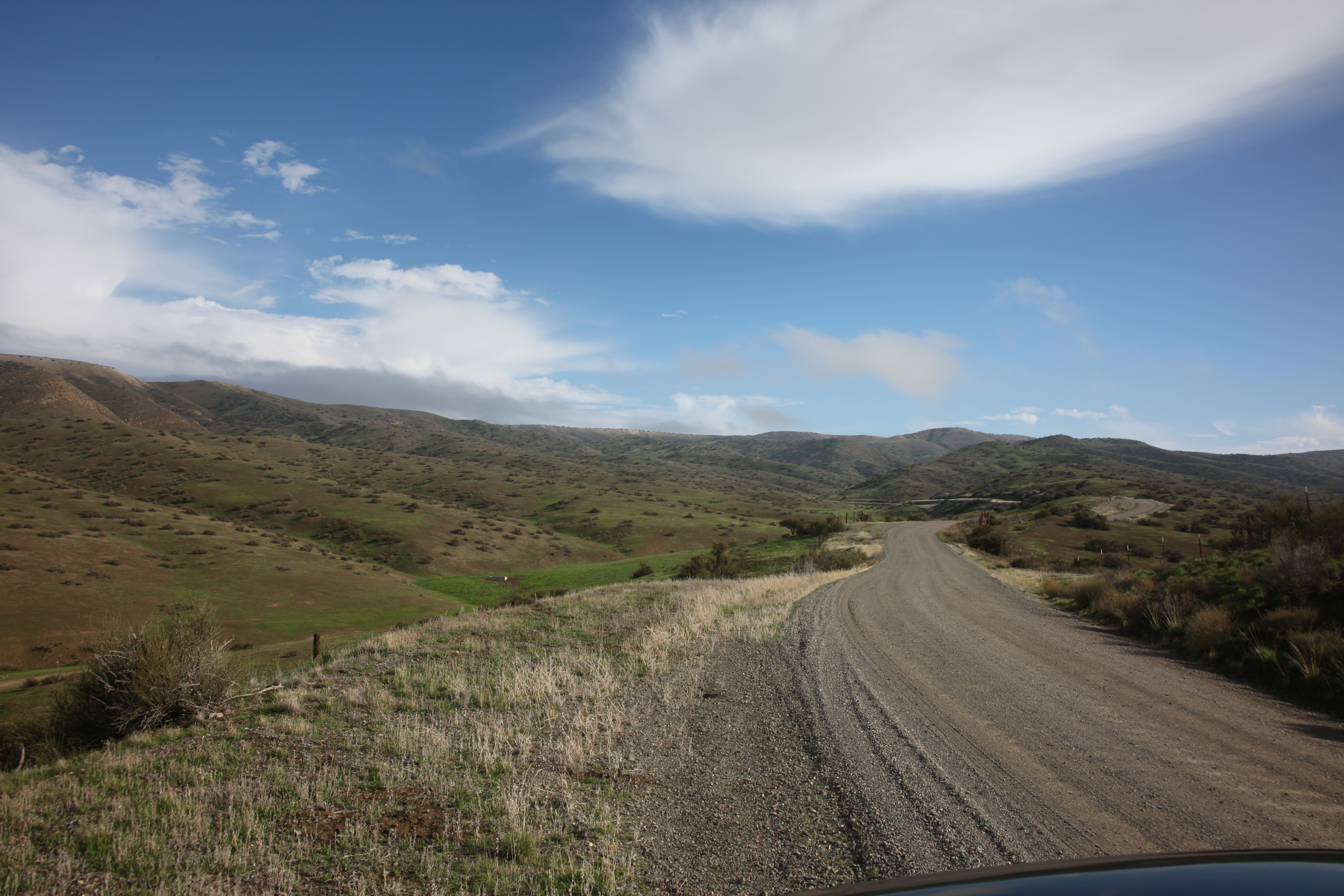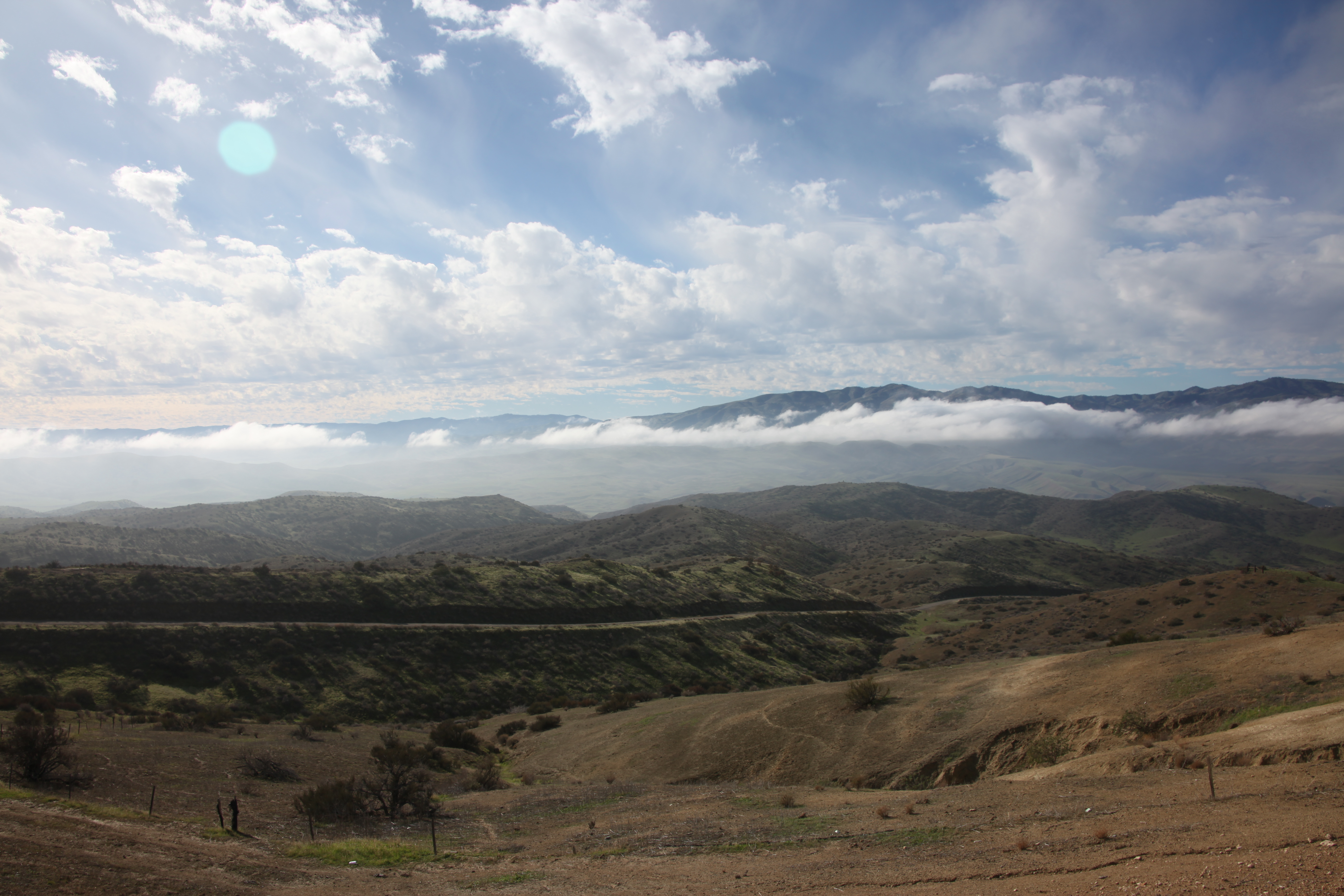 Great 4 wheel drive country where collecting fossils without spines is legal. Lots of shooting enthusiasts about. Cloudshow was on with fog coming up from Coalinga.