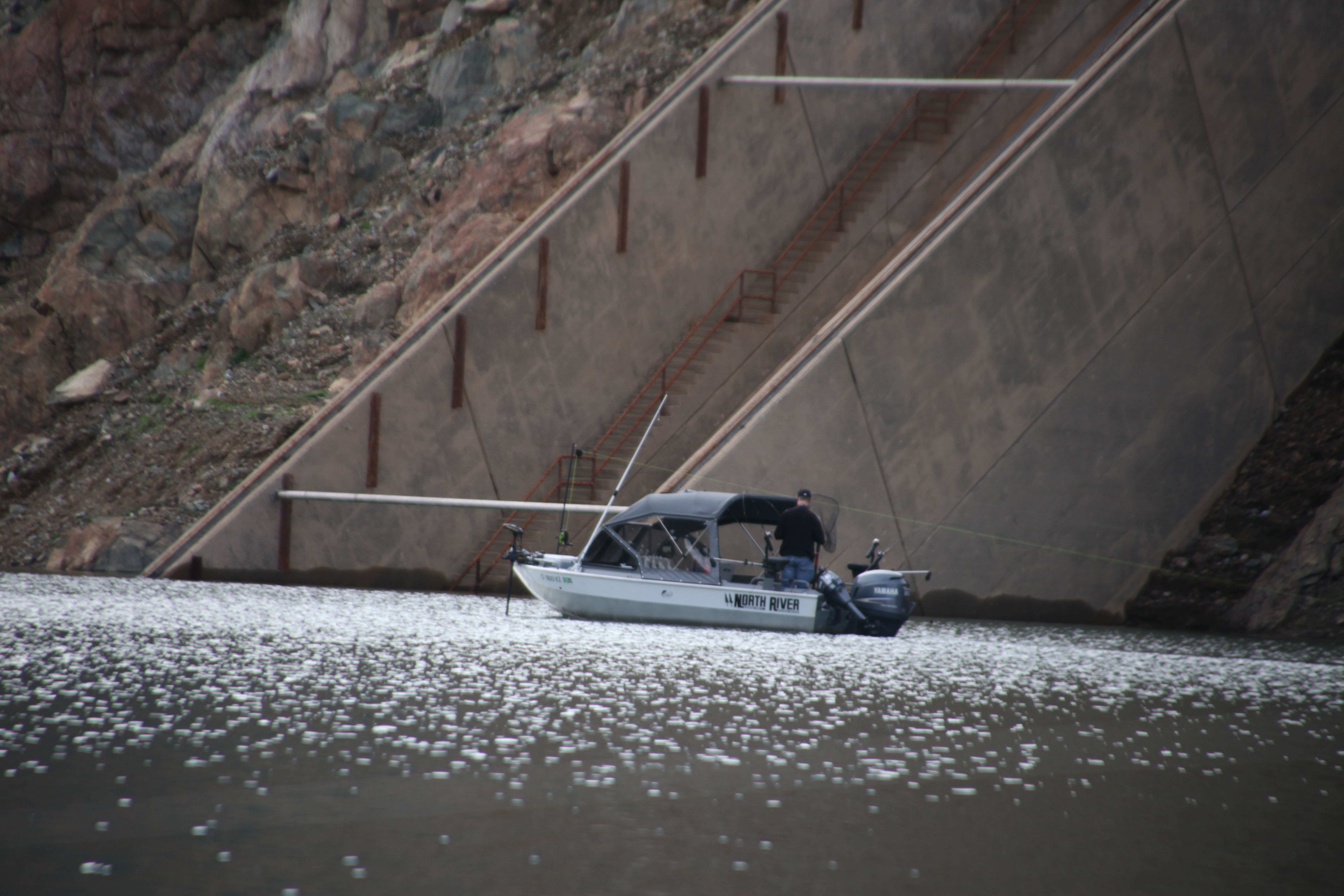I ran to Carson Creek but was unable to get to the inlet due to trees. I motored over to the dam to troll with Schatgun for a while. Nice rig!