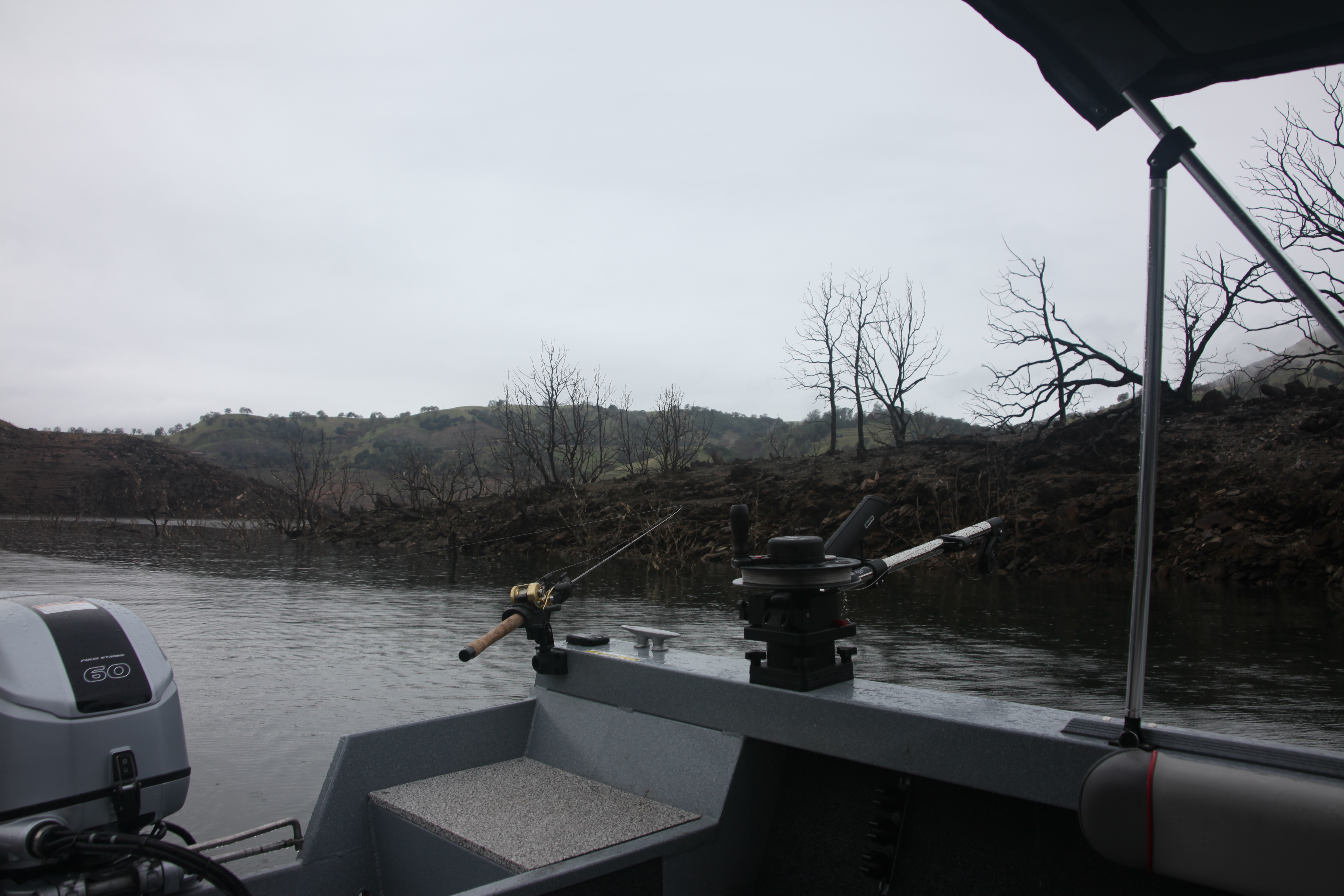 IMG_0082 IMG_0083 IMG_0084I trolled out of Coyote towards the 49er bridge with Firetiger jointed Rapalas on both rods toplined and could not go a 100 yards without getting hit. IMG_0085 IMG_0086This was too easy I thought so I picked up the TM and slipped off to the Stanislaus arm. A bit quieter there but I still got bit.
