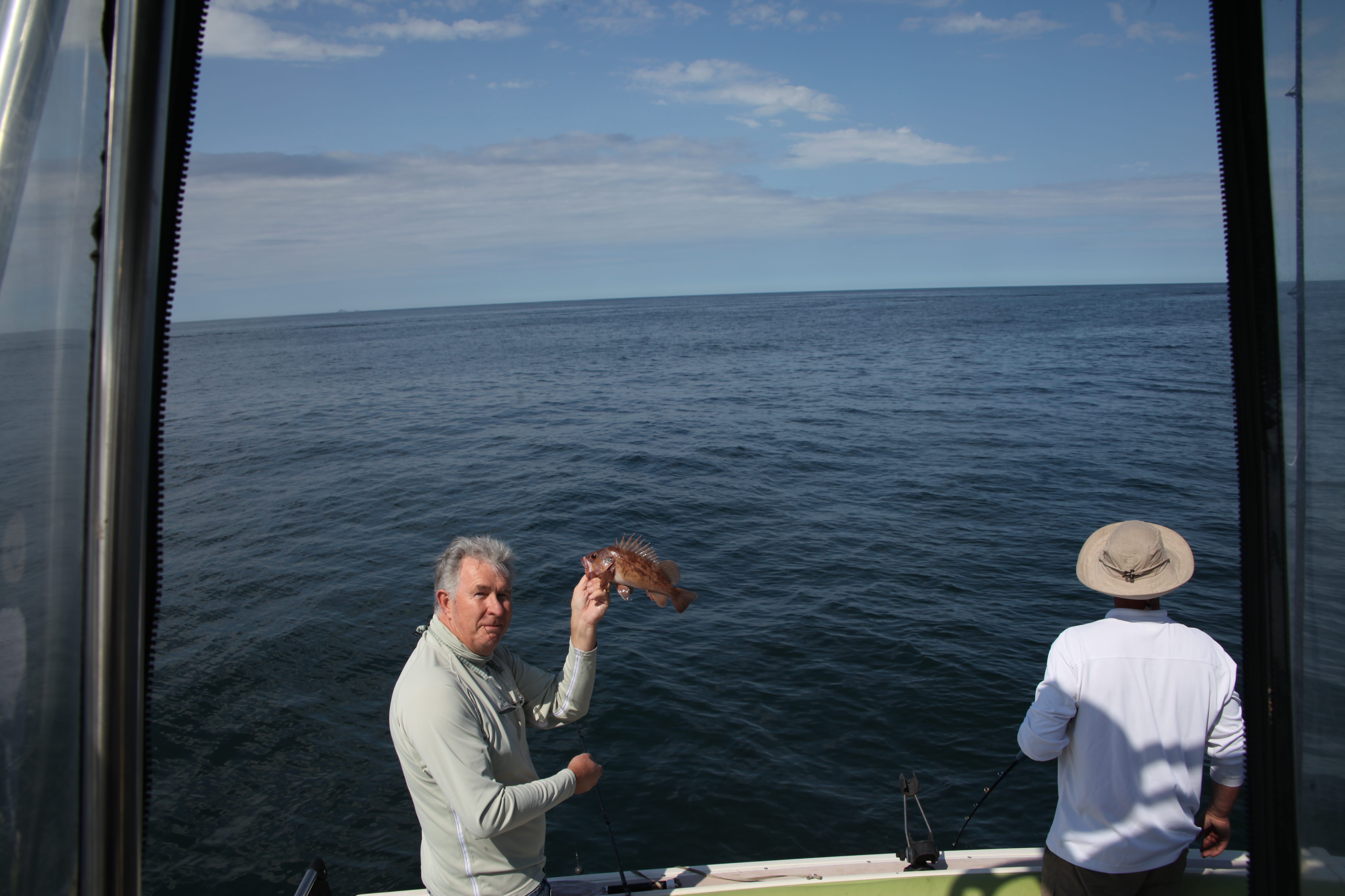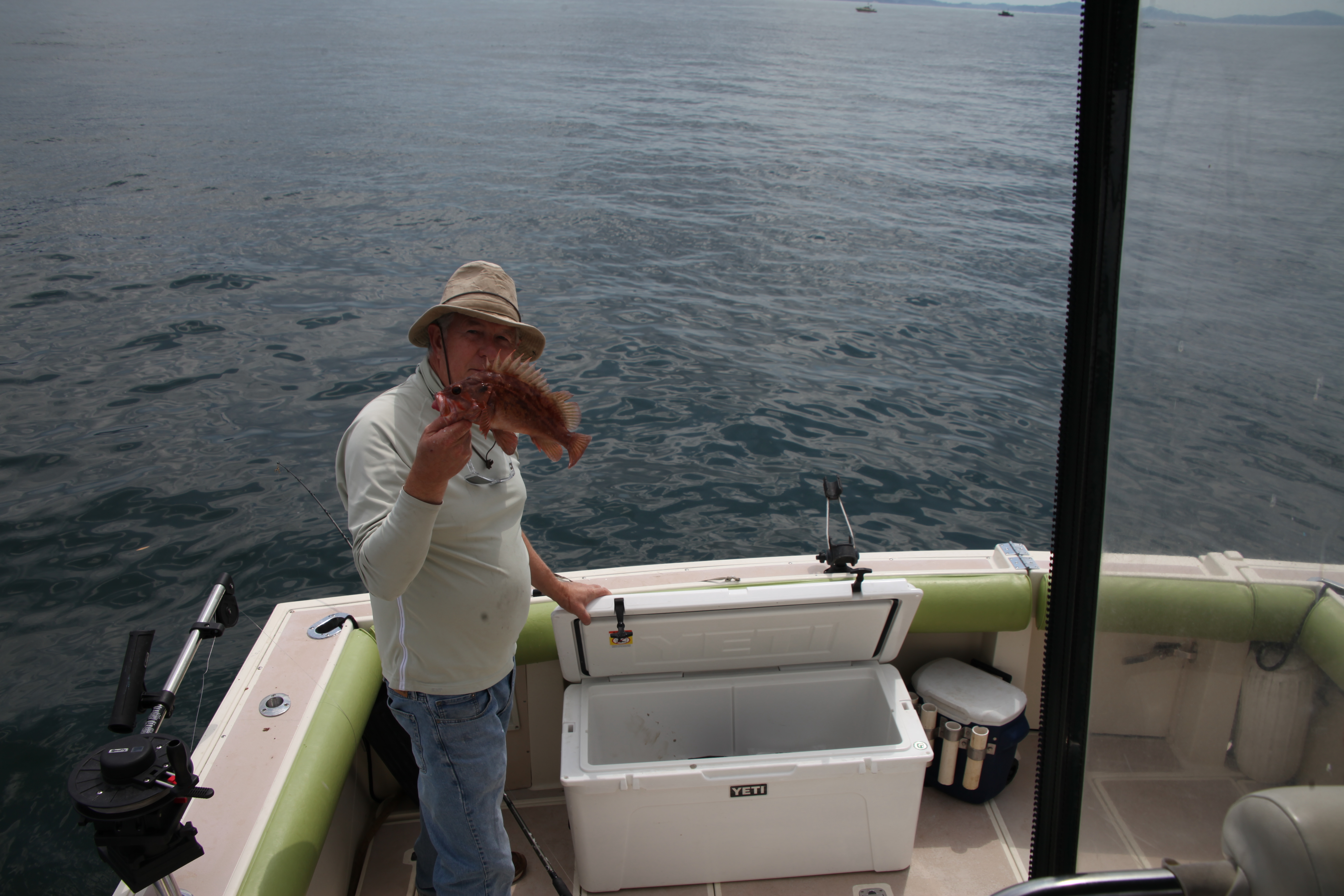 Water was flat and weather was sub tropical. We trolled for salmon for an hour but it was clear no one was fishing for pink so we ran up to the towers for rockfish. Real steady bite but had to wade through the little guys. Got my first hitch hiker ling thanks to a Dangerous net job.