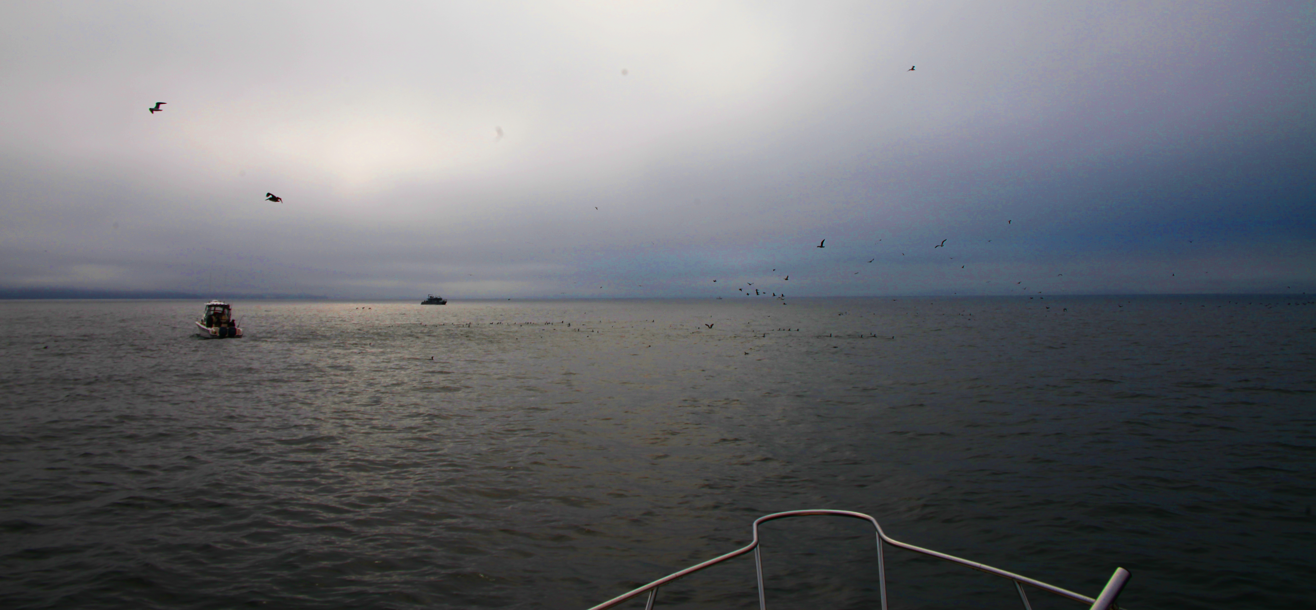 There was an over abundance of life. Whales, birds, dolphins, seadogs and bait for miles. Full haystacks blanking out the meter and beautiful scattered balls. They were brailling the surface everywhere we went. We worked from Dux to Muir, inside to outside for one fish.