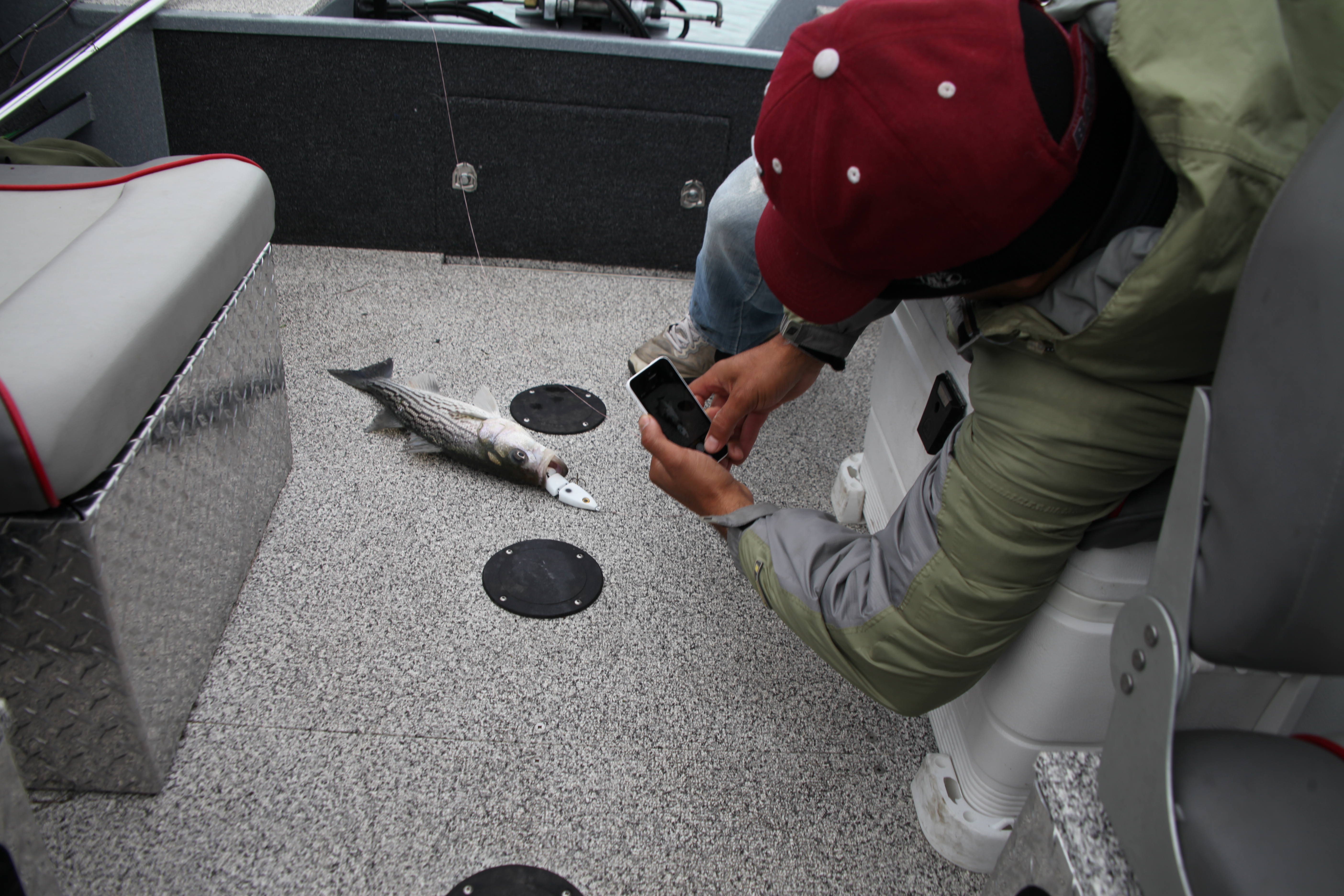 South east corner of Sherman lake, 5 feet of water, Jerk baits, spoons and swimbaits. Anything worked as long as it was white and wet. We brought an easy 50 fish to hand until the tide bottomed out and killed the bite. We looped around the lake several times. I checked my spooning hole in North Sherman and we pulled another 15 fish out of there. Ran into Schatman. Great weather and my sticks are tired.