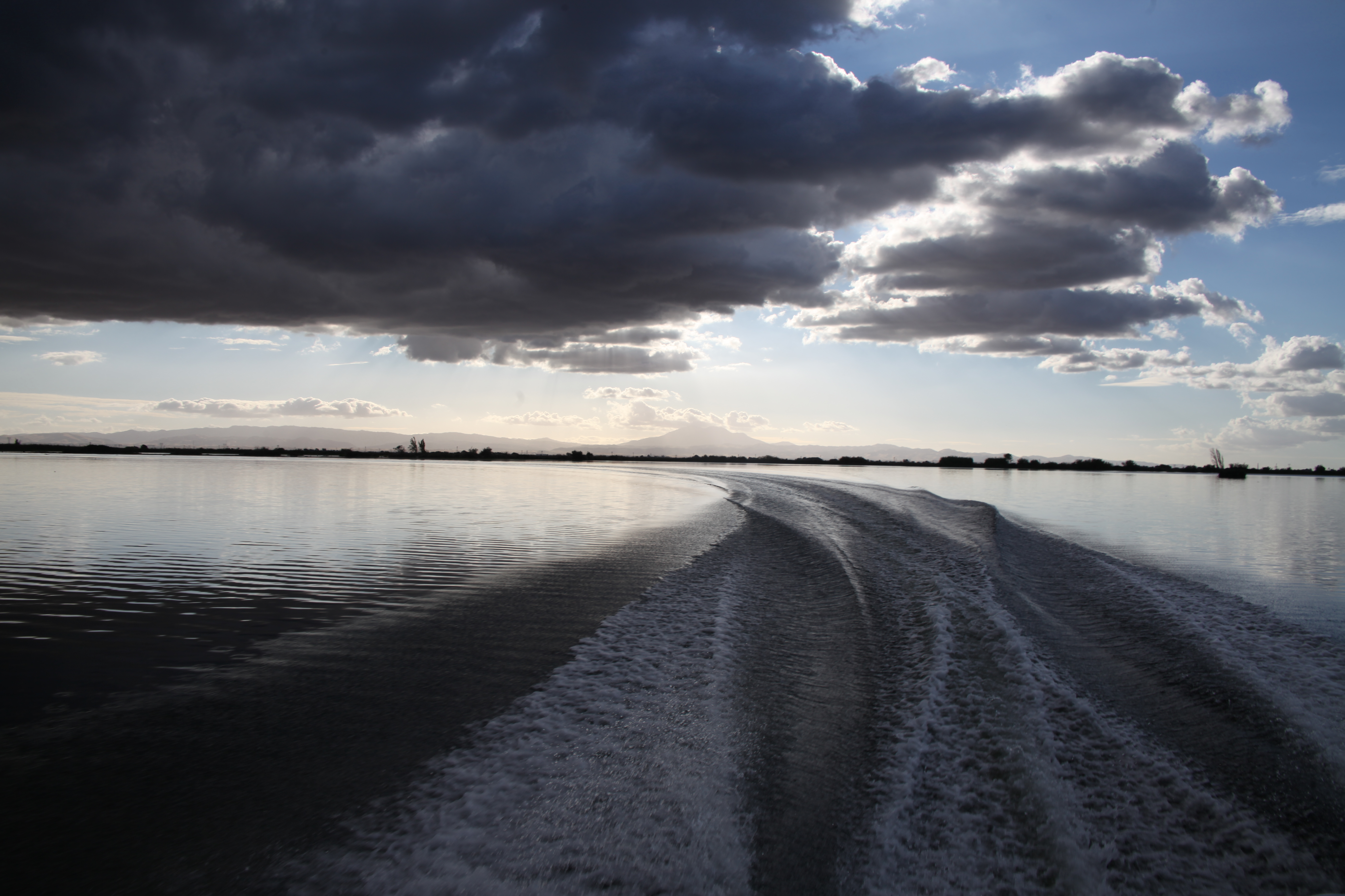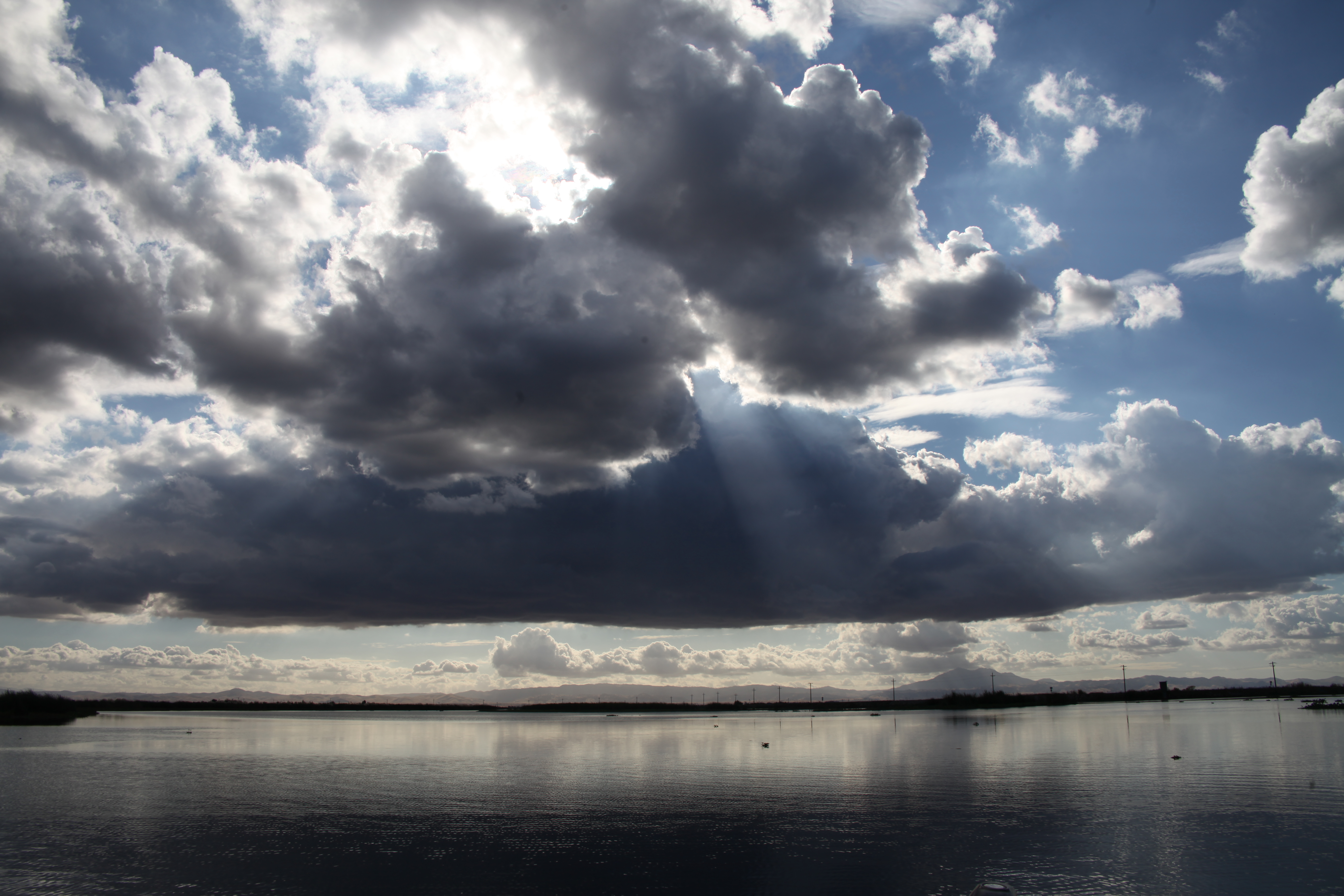 On the drive home the cloudshow continued. Is it a crime to shoot a full size camera with telephoto lens while driving and towing a boat?