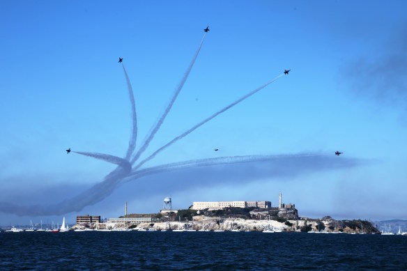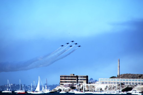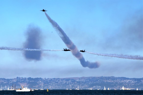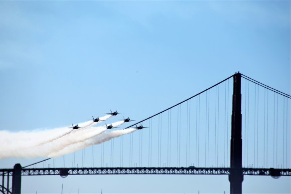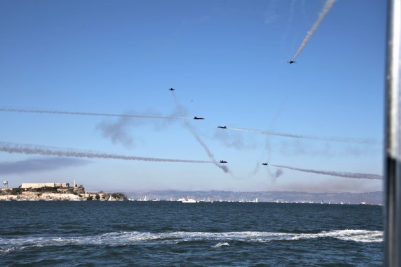 Being on the water for Fleet week/Blue Angels performance is great fun for the crew. However it is another thing entirely for the Captain. Between the wind, tides, closure zone, anchored boats, idiot boat drivers and trying to track the air show it can be nerve wracking. I got a few shots.