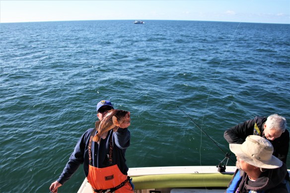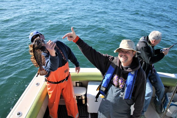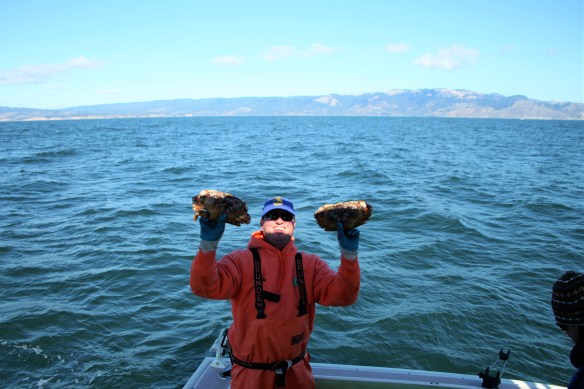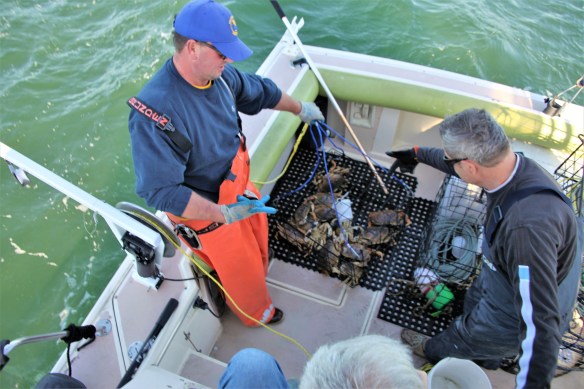 We lunched in the lee near Stinson Beach on pastrami sandwiches, pickles, potato salad and slaw. Crew wanted to fish more but I made the call to pull the pots after a 4 hr soak. 30 crab total from 6 pots with a few shorts and females set free. Decent grade and quality.