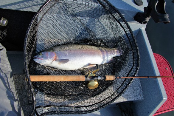 Let’s just say the size of the Rainbows there is up quite a bit. There was an area about 100 yards long FULL of fish like this feeding on the surface.