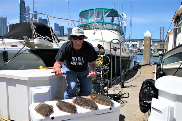 We joined the fleet on the Berkeley flats for an hour or so but nothing there. At lunch we crossed under the Bay Bridge and spent the rest of the day collecting 2 more keepers and missing a couple between the bridge and the shipping terminal.