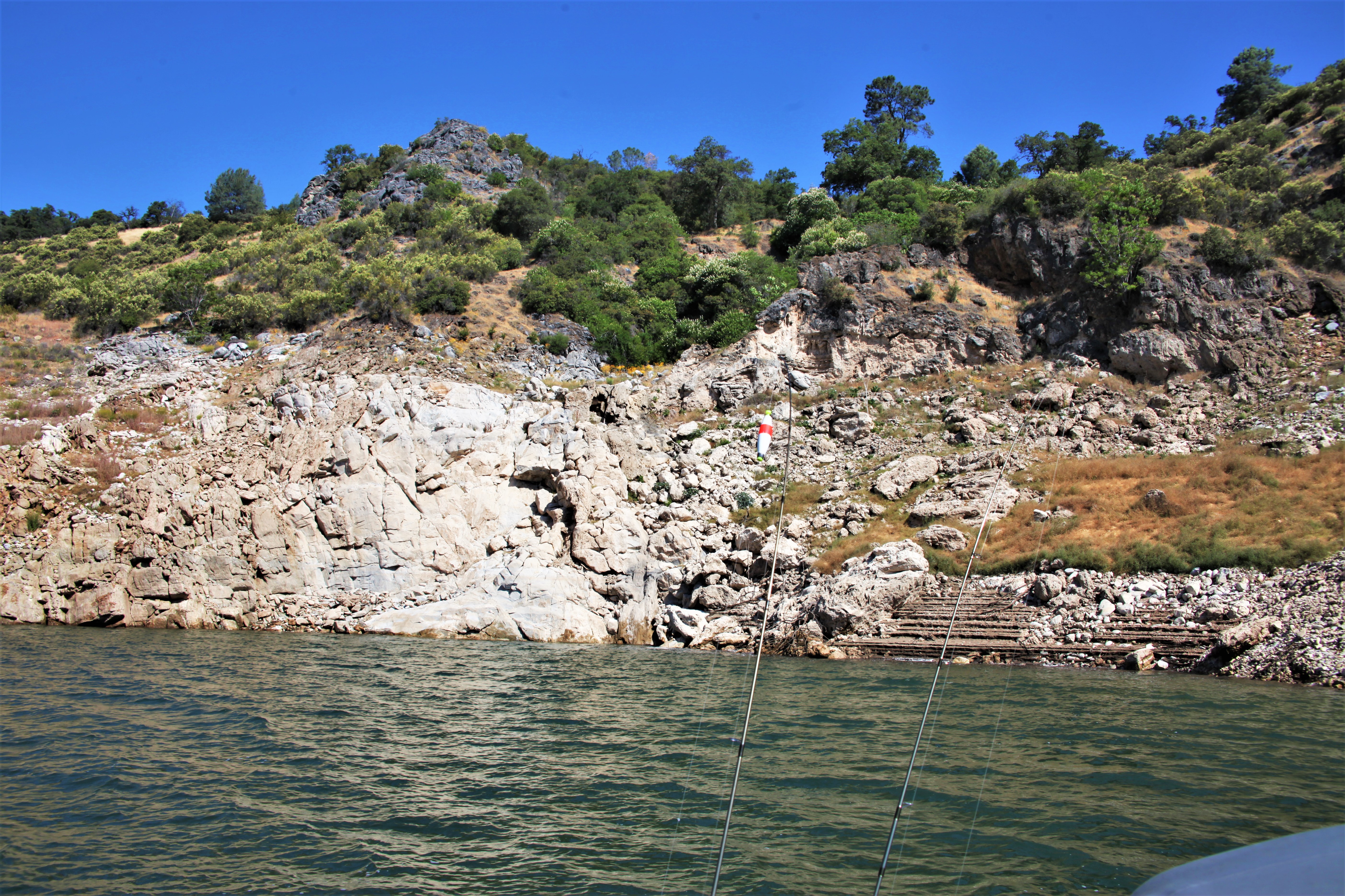 Risking divorce, I got up at 5:45 Saturday AM, made coffee and went for a short walk. Lo and behold the missus was up when I returned and we launched the tin can at 6:30. Glorious day on New Melones.