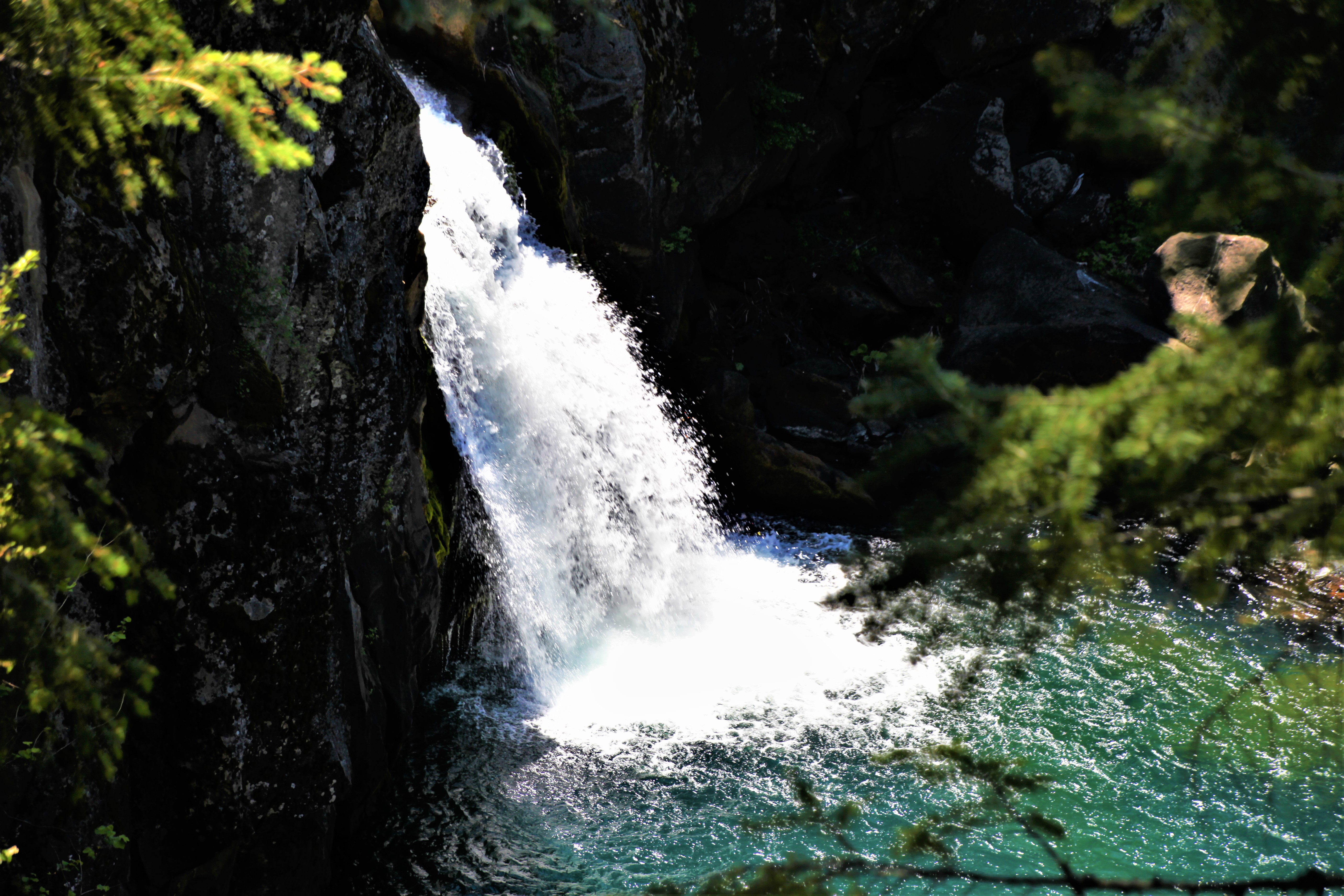 The falls are on a creek off of the Pitt river about 9 miles in on an easy gravel road. The sign for the trail is about a mile past the Pitt bridge.