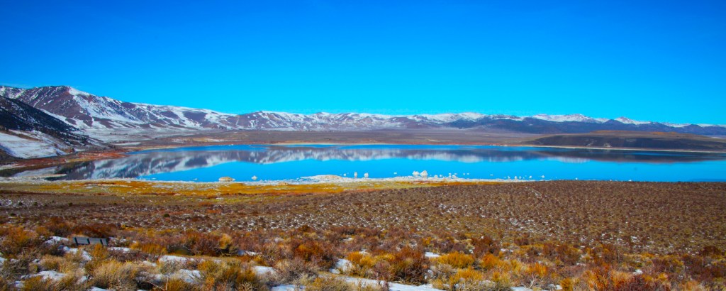 Debra was not impressed with my proposal to circumnavigate Salton Sea Salvation Mountain!) so we next headed towards Bishop. We hit some incredible winds from Victorville north which made piloting an RV somewhat white knuckle. Spectacular dust storms in the de-watered Owens Valley. Try Whiskey Creek for dinner and Eric Schat’s bakery for coffee and pastries in the AM in Bishop.