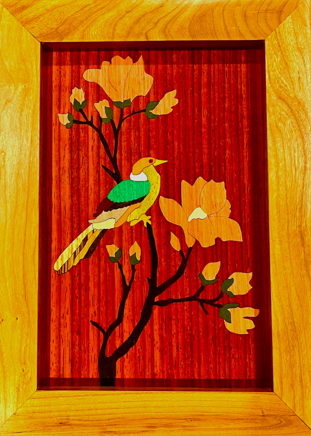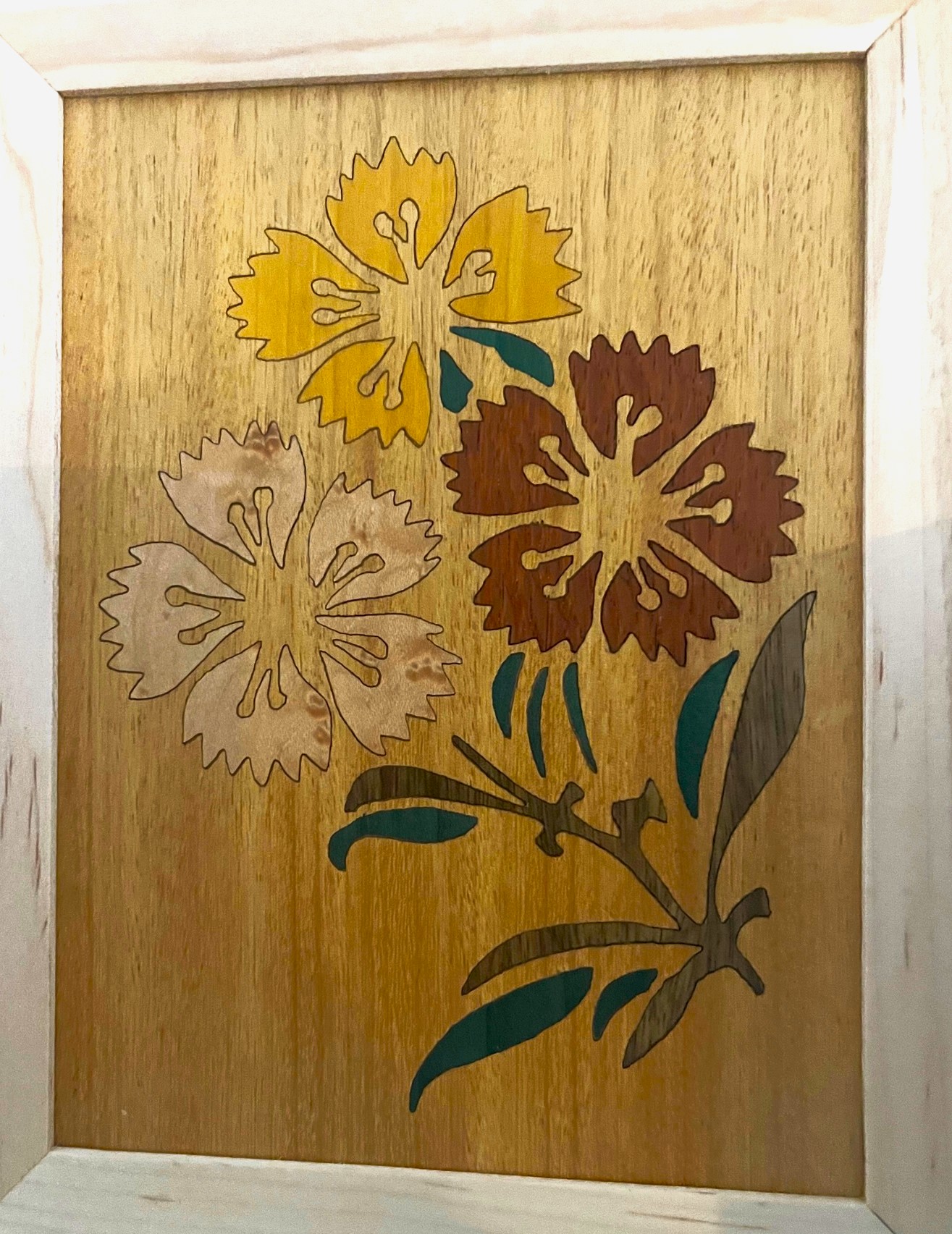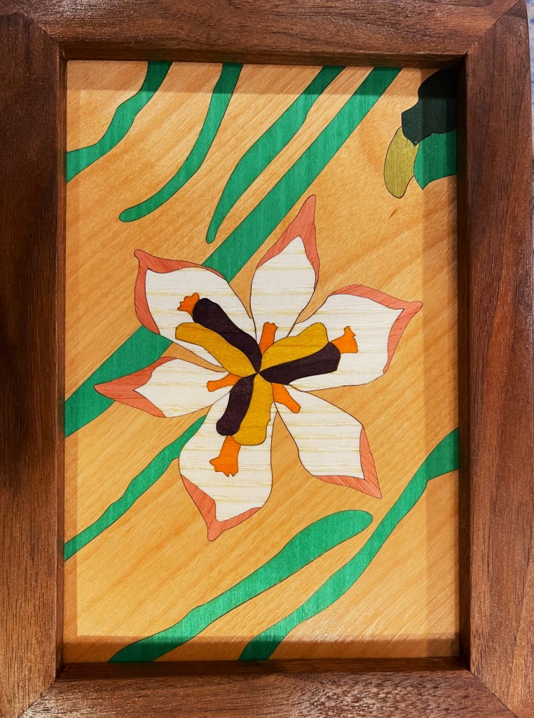 I have been exploring the use of a laser cutter in marquetry projects. Very satisfying. I am also making my own frames from walnut, cherry and maple. Basic miter sawing and using a router to rabbet the inset for the inlay. The process is quite complex. Here is a quick synopsis of steps: