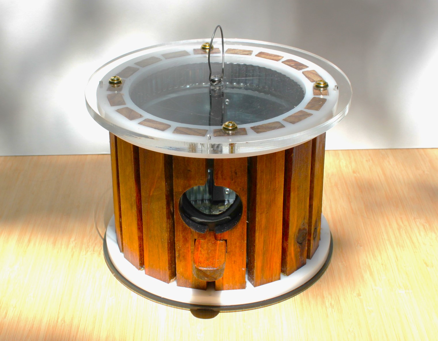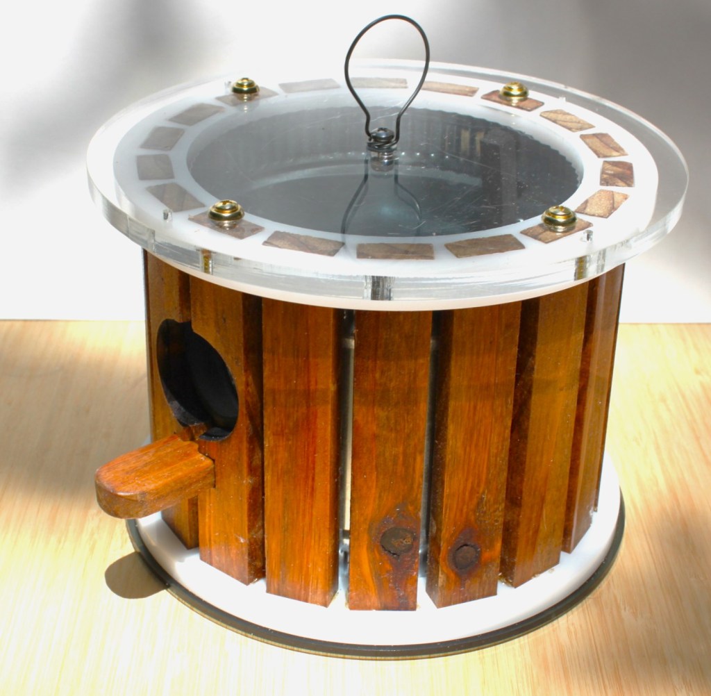 The inner sleeve is a 6 inch diameter galvanized duct connector so the house should be snug. There are drain holes in the bottom.
