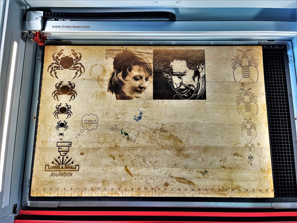 We are Joulebox. Joulebox is a company formed by Debra and Patrick Pickerell. It is a place for engineers, artists, makers and designers. We can help with product design, graphic design, laser cutting, laser engraving, and manufacturing consulting. With over 40 years of job shop experience we can offer you support for your projects using insights we have gained from working with talented craftspeople and designers.