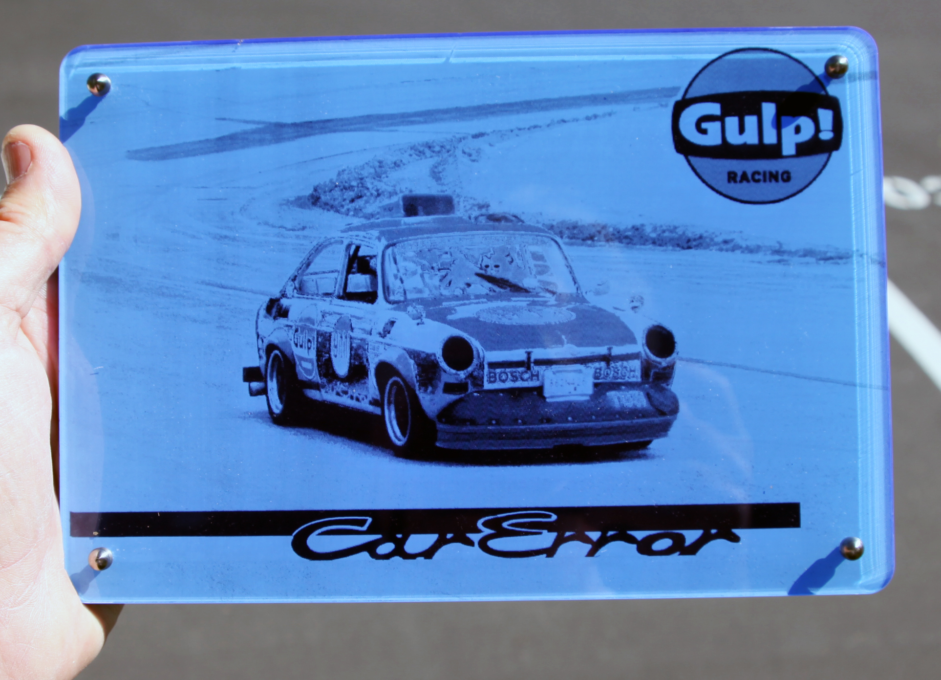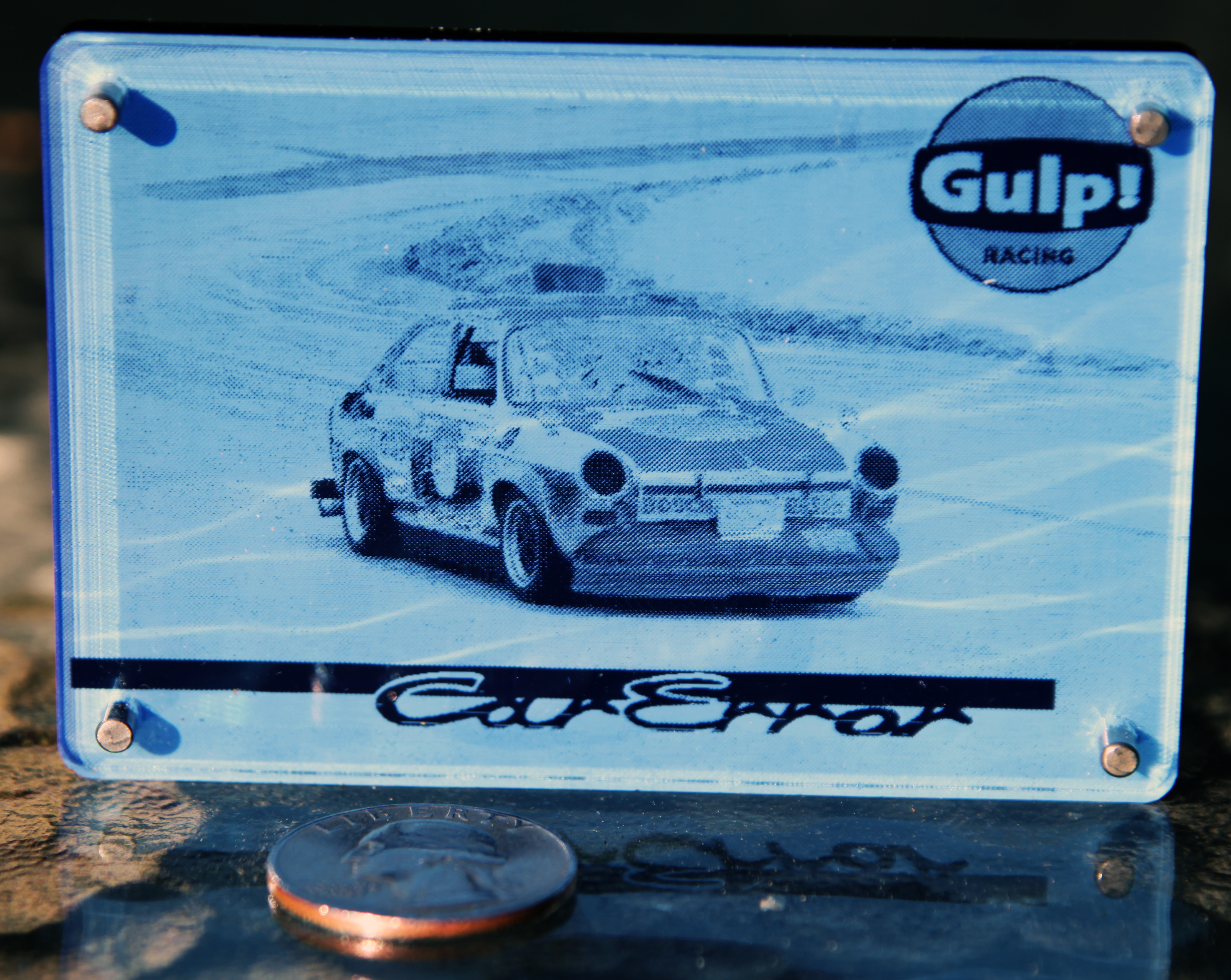 Today I designed and laser engraved plaques for the car and each of the drivers. They came out great.