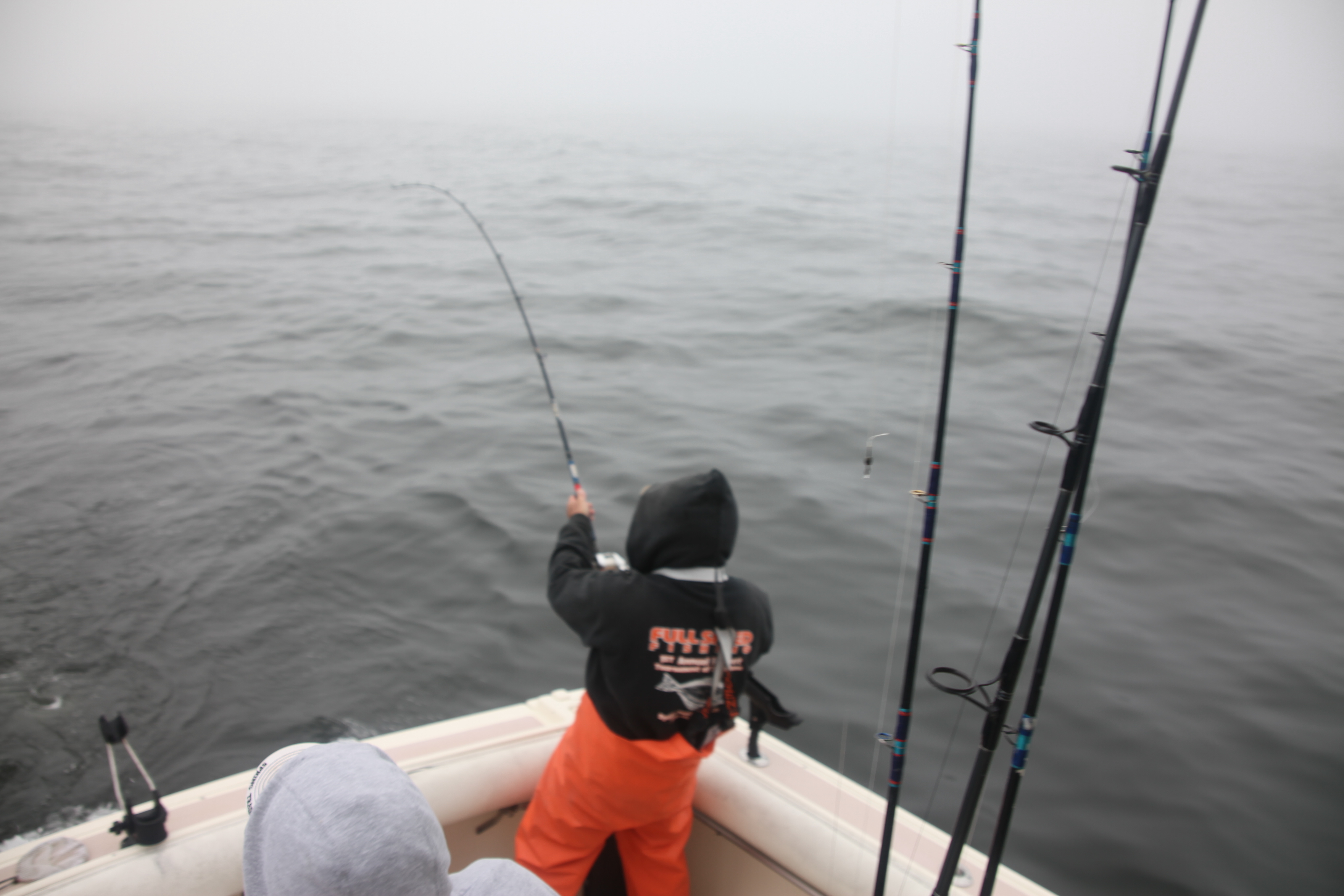 Ice and pinner bait loaded we flew out the gate in thick fog for Nancy Bouy. Swell was a bit higher and closer than forecasted but I was riding 2 tabs of Dramanine and determined to man up. Nothing at the bouy but radar showed us the fleet was 2-3 miles due west. Steady pick all day on WMA. Had a few singles.
