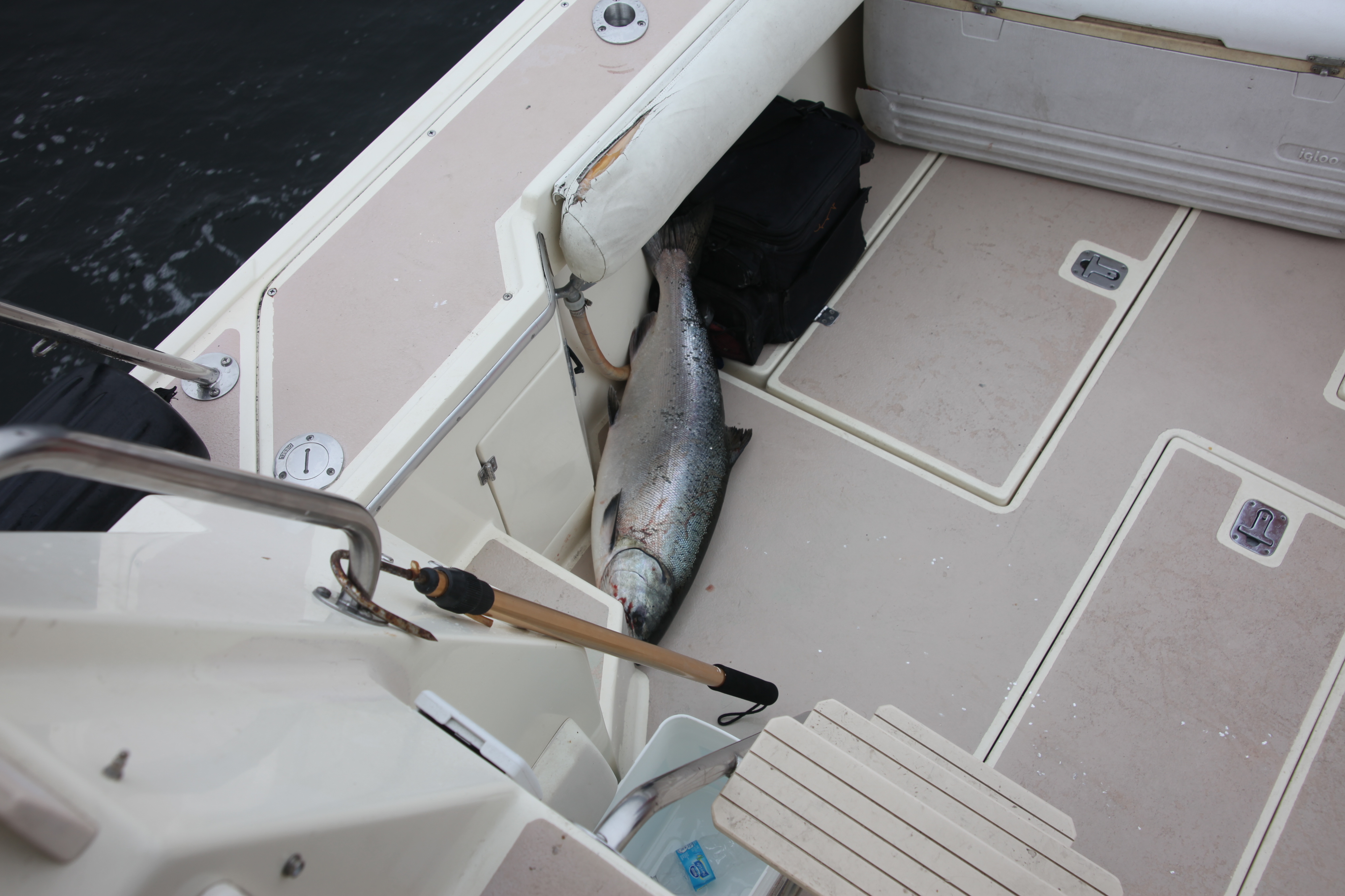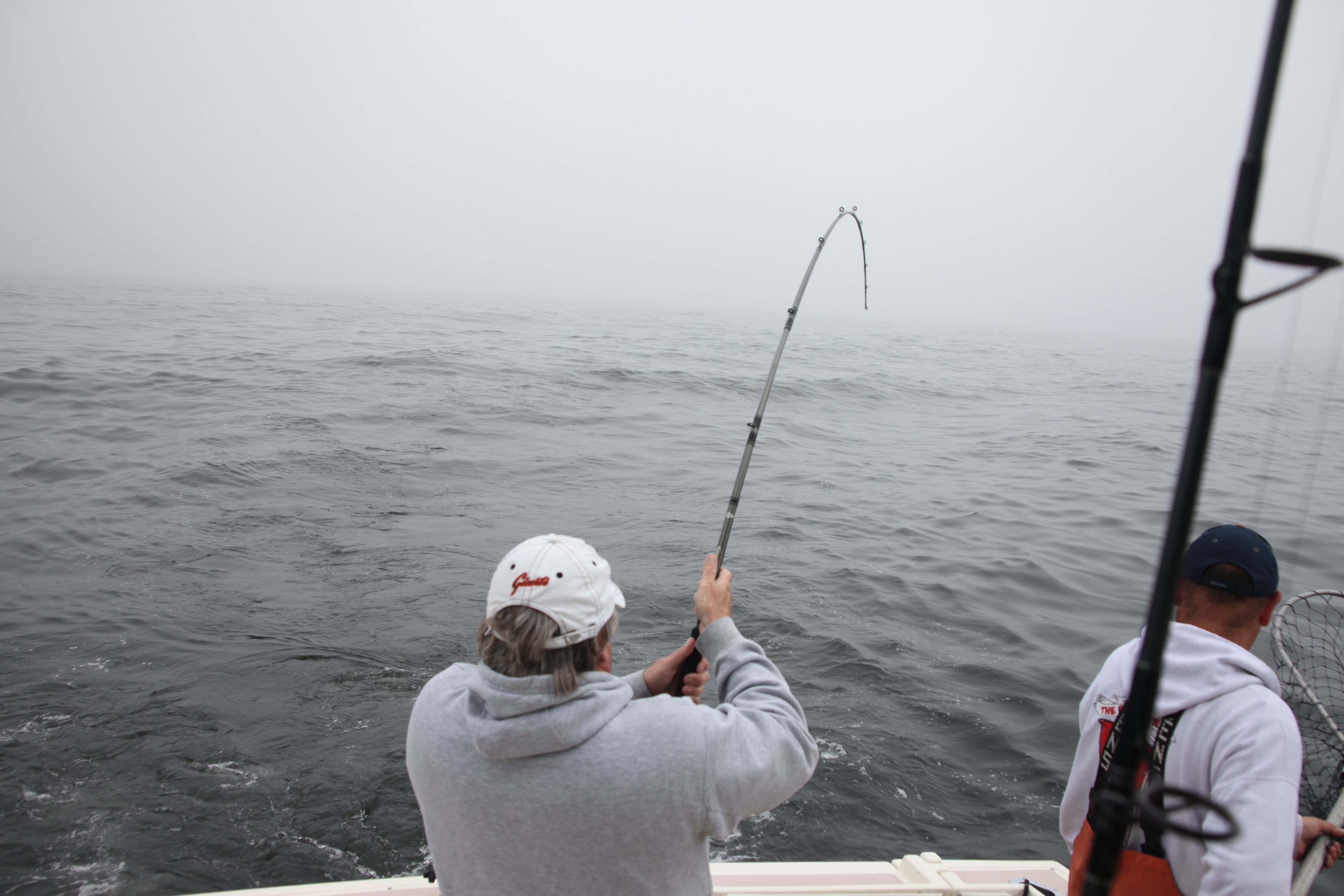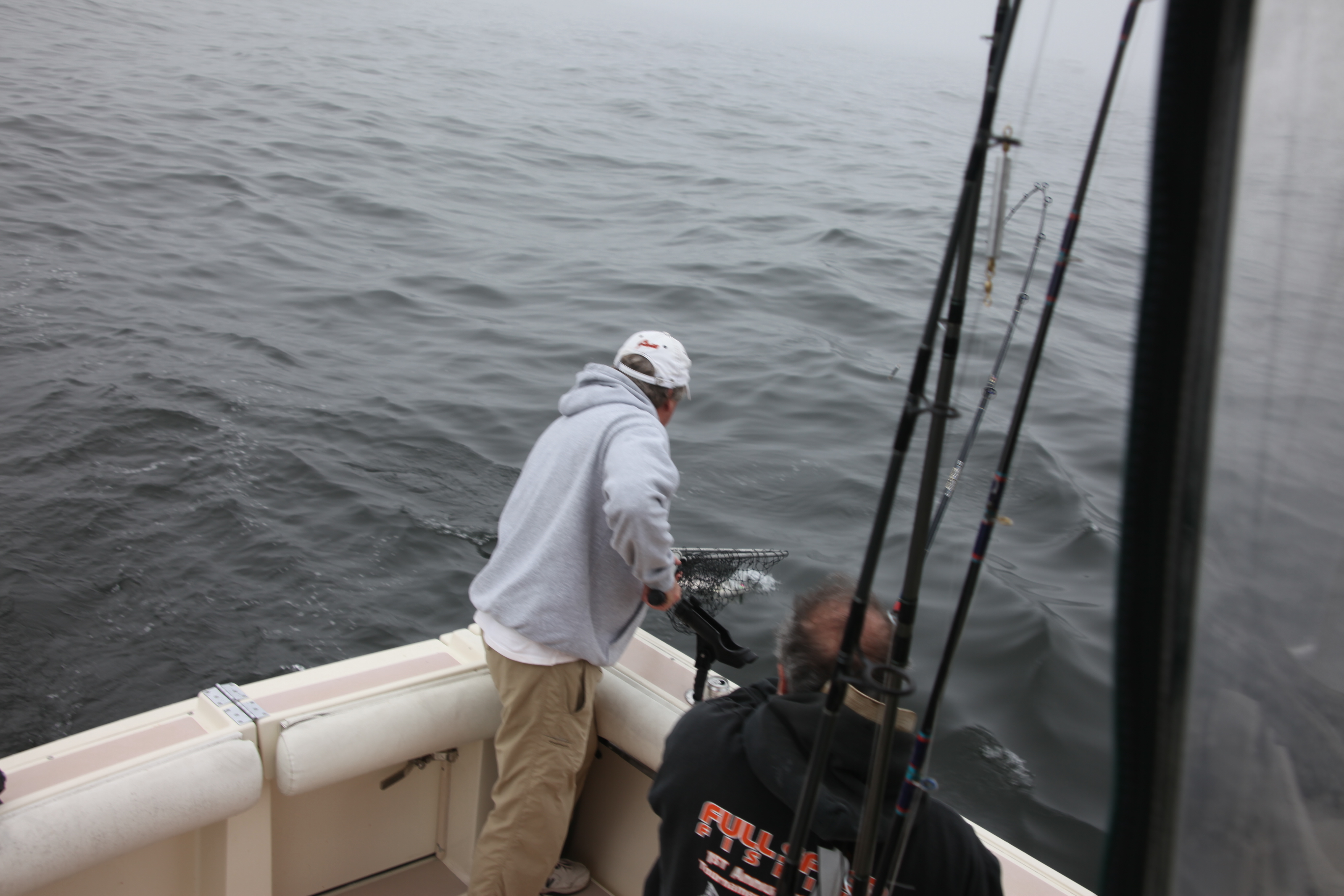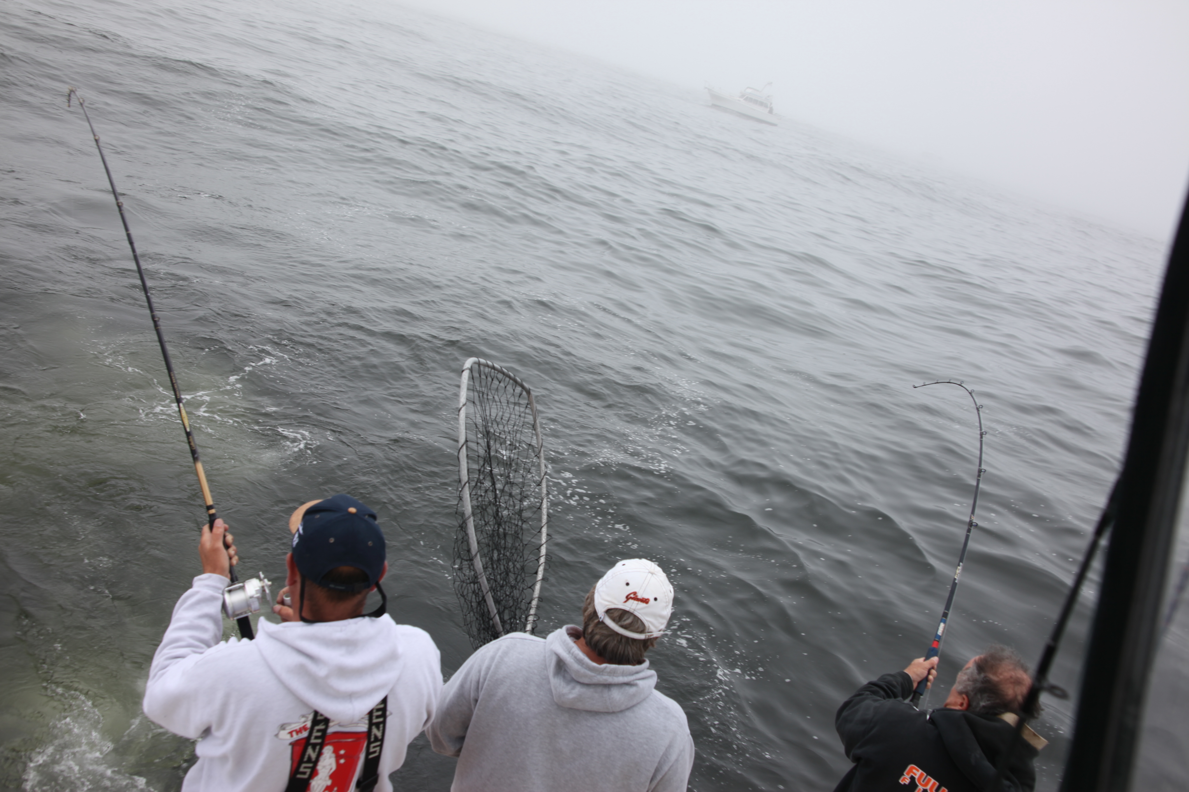 Picked up a 22 incher and noted that the PB’s had slipped away. We picked up and ran towards the channel bouys but stopped halfway from Muir as a couple of the boats had stopped. Picked up #3 fish which appeared to be in the high teens. Swam right into the net with no theatrics glad to join the upcoming dinner party.