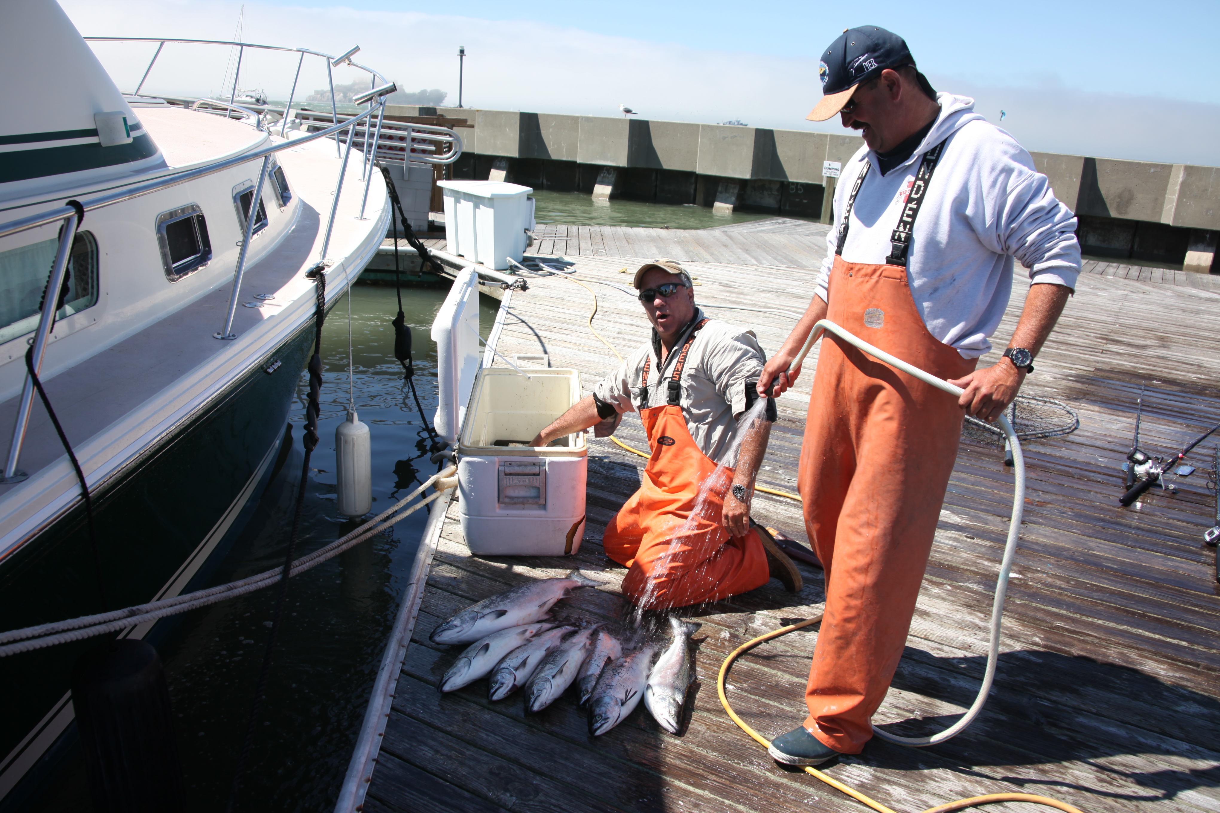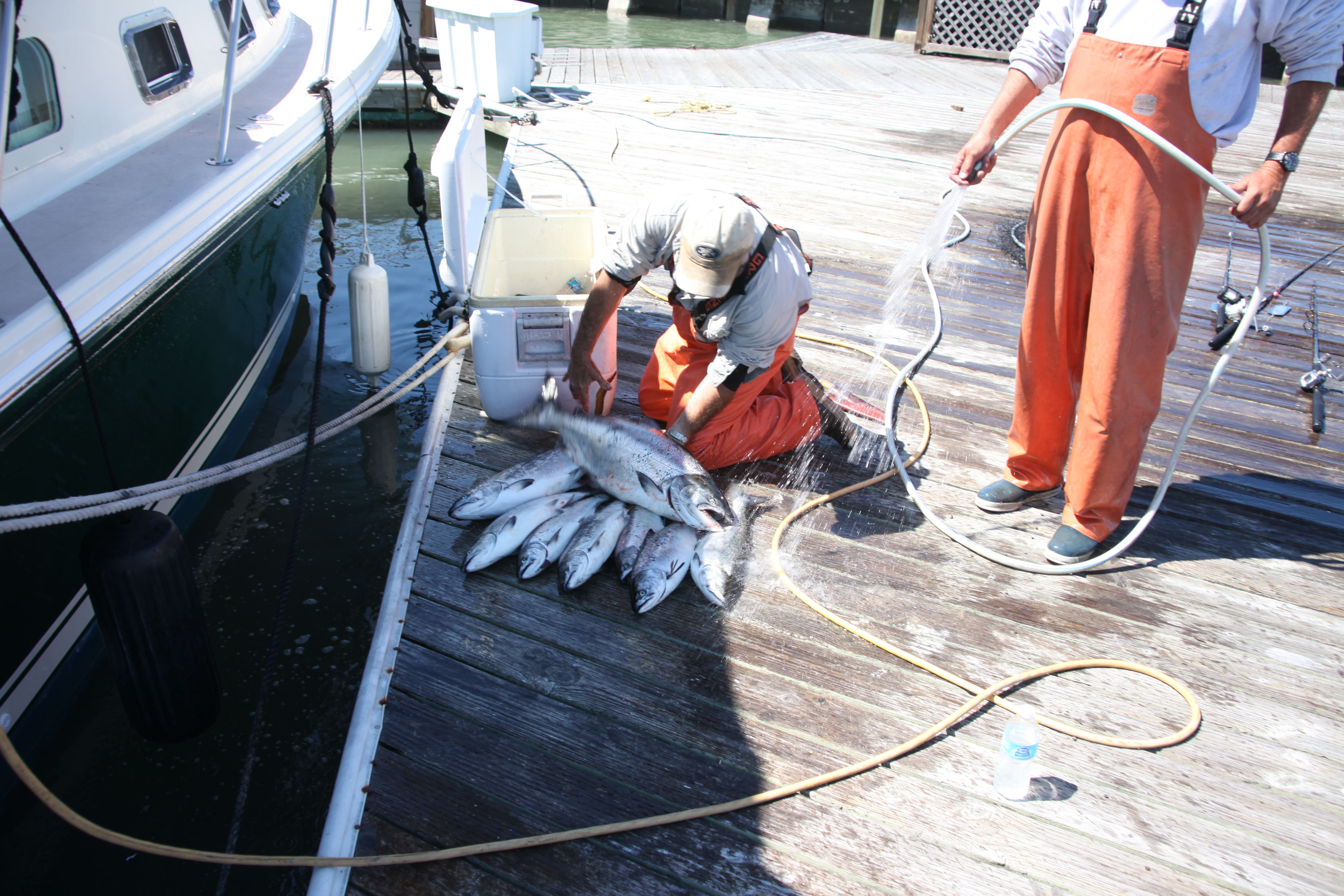 Cleaning fish at the dock.